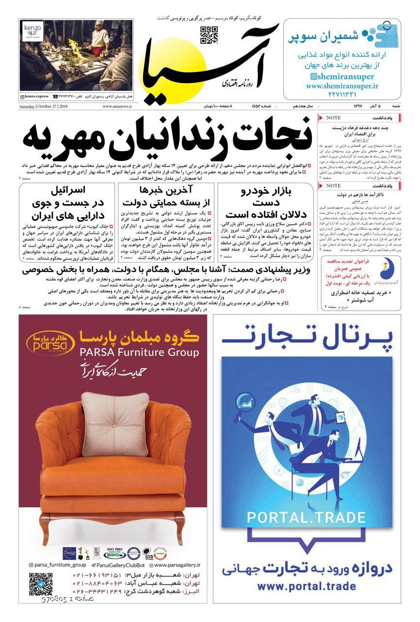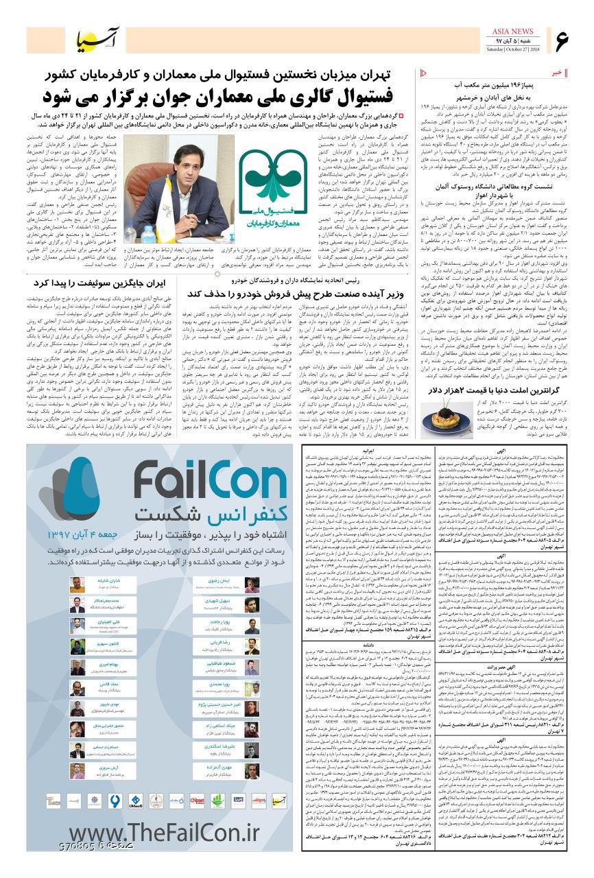 روزنامه اقتصادی آسیا - 05 آبان 1397 ۵ آبان ۱۳۹۷ https://www.asianewsiran.com/u/bp0 آسیانیوز ایران هیچگونه مسولیتی در قبال نظرات کاربران ندارد. میانگین امتیاز کاربران: 0.0 (0 رای) 12345 امتیاز 12345 برای امتیاز باید عدد وارد کنید ایمیل را وارد کنید ایمیل صحیح نیست ایمیل نمایش داده شود. تعداد کاراکتر باقیمانده: 1000 نظر خود را وارد کنید بازخوانی بازخوانی پس از انتشار این نظر، به من اطلاع داده شود. ارسال توجه : نظرات بیان شده در یادداشتهایی که منتشر میکنیم، بیانگر عقیده نگارنده آن است و لزوماً دیدگاه مدیران وبسایت آسیانیوز و آسیانیوز ایران نمیباشد. سردبیر