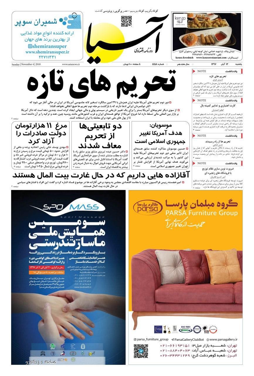 روزنامه اقتصادی آسیا - 13 آبان 1397 ۱۳ آبان ۱۳۹۷ https://www.asianewsiran.com/u/cco آسیانیوز ایران هیچگونه مسولیتی در قبال نظرات کاربران ندارد. میانگین امتیاز کاربران: 0.0 (0 رای) 12345 امتیاز 12345 برای امتیاز باید عدد وارد کنید ایمیل را وارد کنید ایمیل صحیح نیست ایمیل نمایش داده شود. تعداد کاراکتر باقیمانده: 1000 نظر خود را وارد کنید بازخوانی بازخوانی پس از انتشار این نظر، به من اطلاع داده شود. ارسال توجه : نظرات بیان شده در یادداشتهایی که منتشر میکنیم، بیانگر عقیده نگارنده آن است و لزوماً دیدگاه مدیران وبسایت آسیانیوز و آسیانیوز ایران نمیباشد. سردبیر