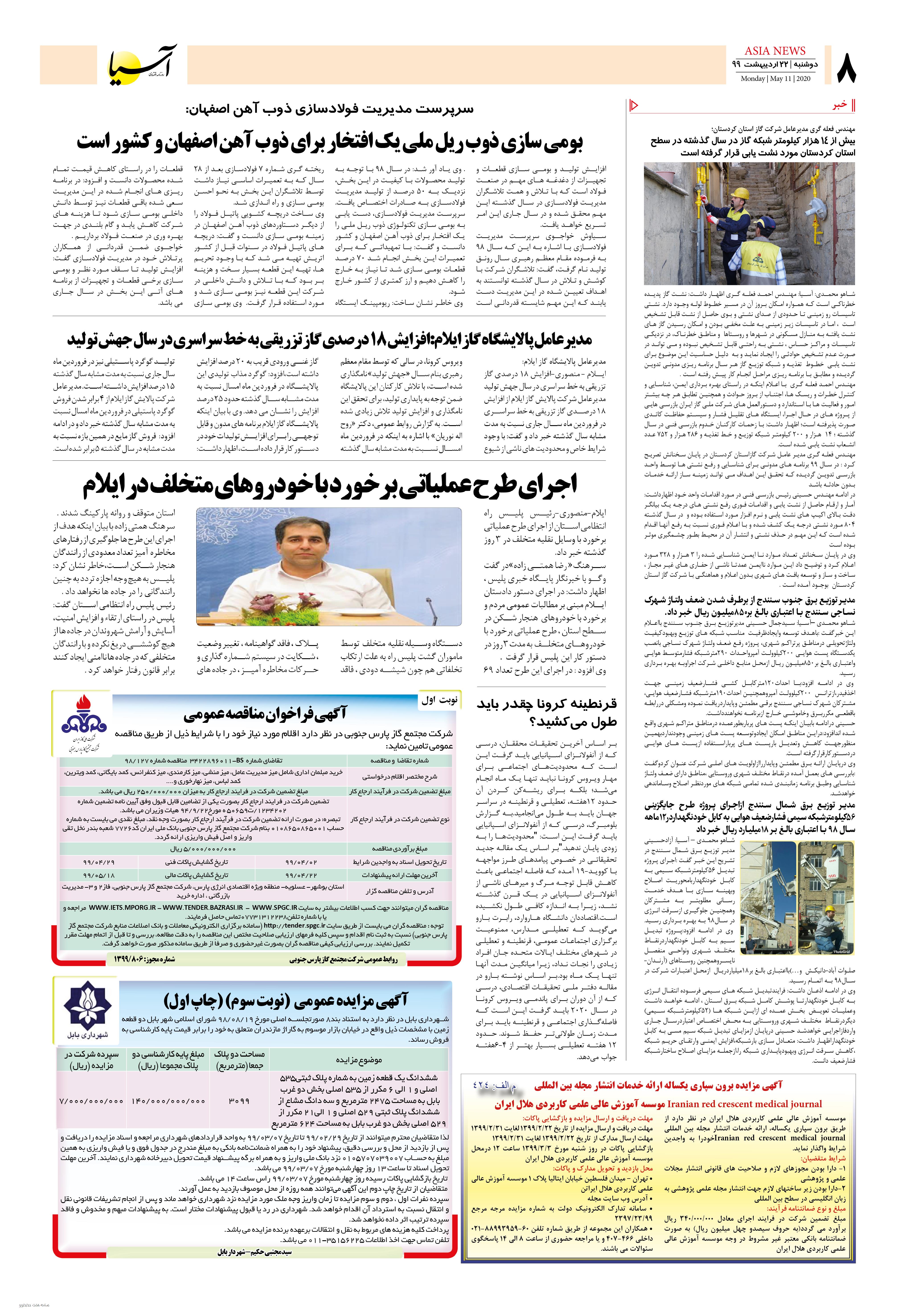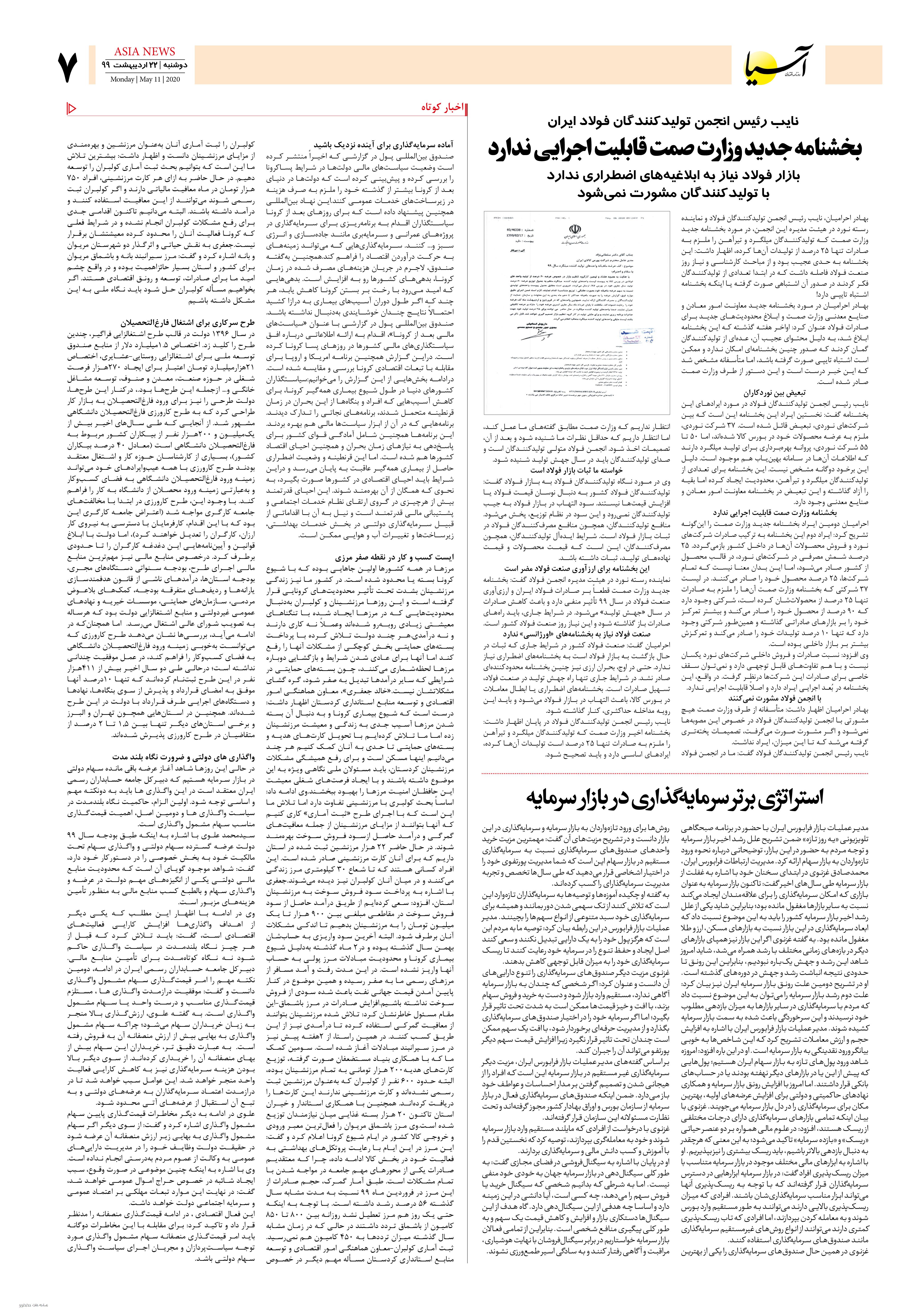 روزنامه اقتصادی آسیا- 22 اردیبهشت 1399