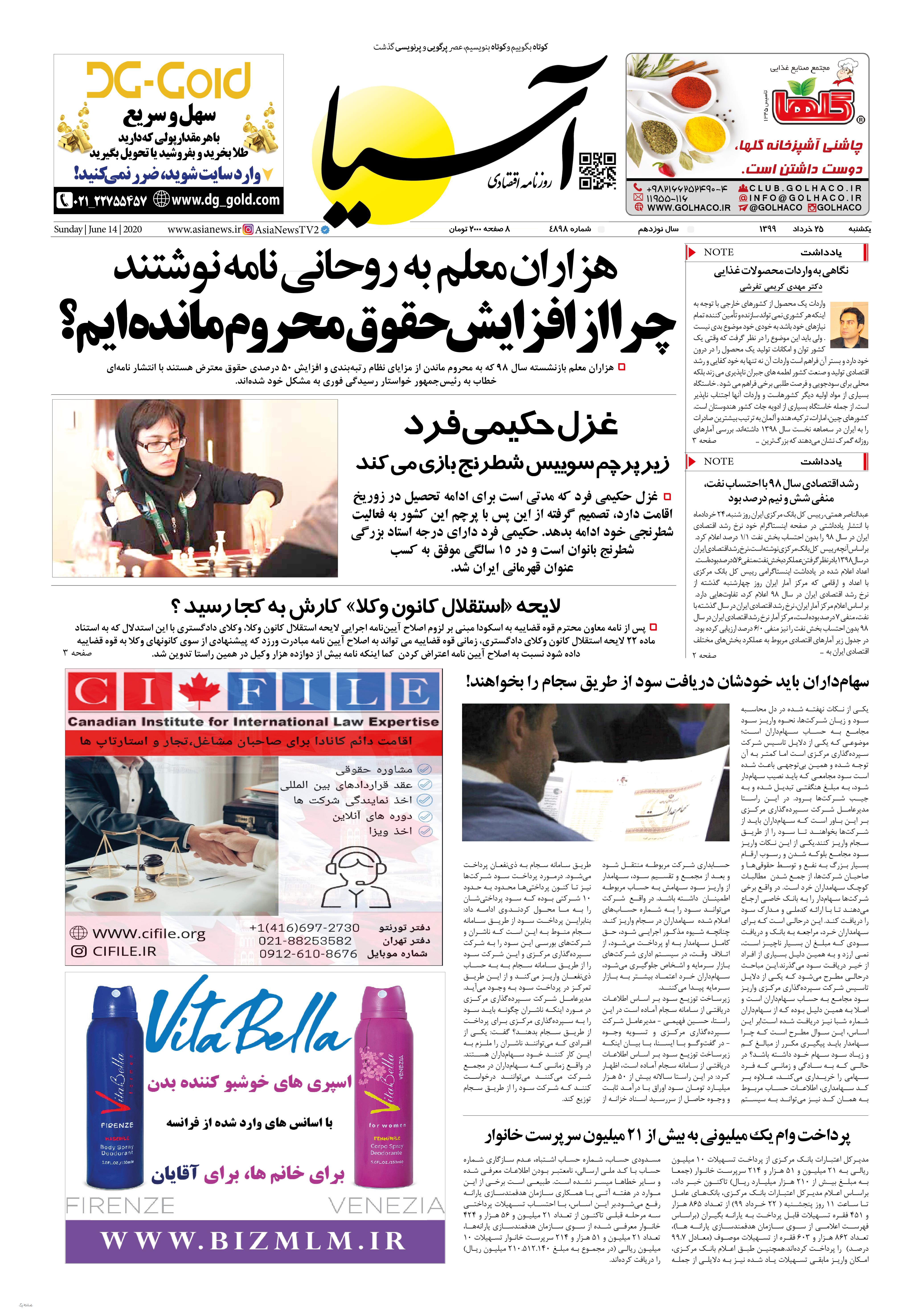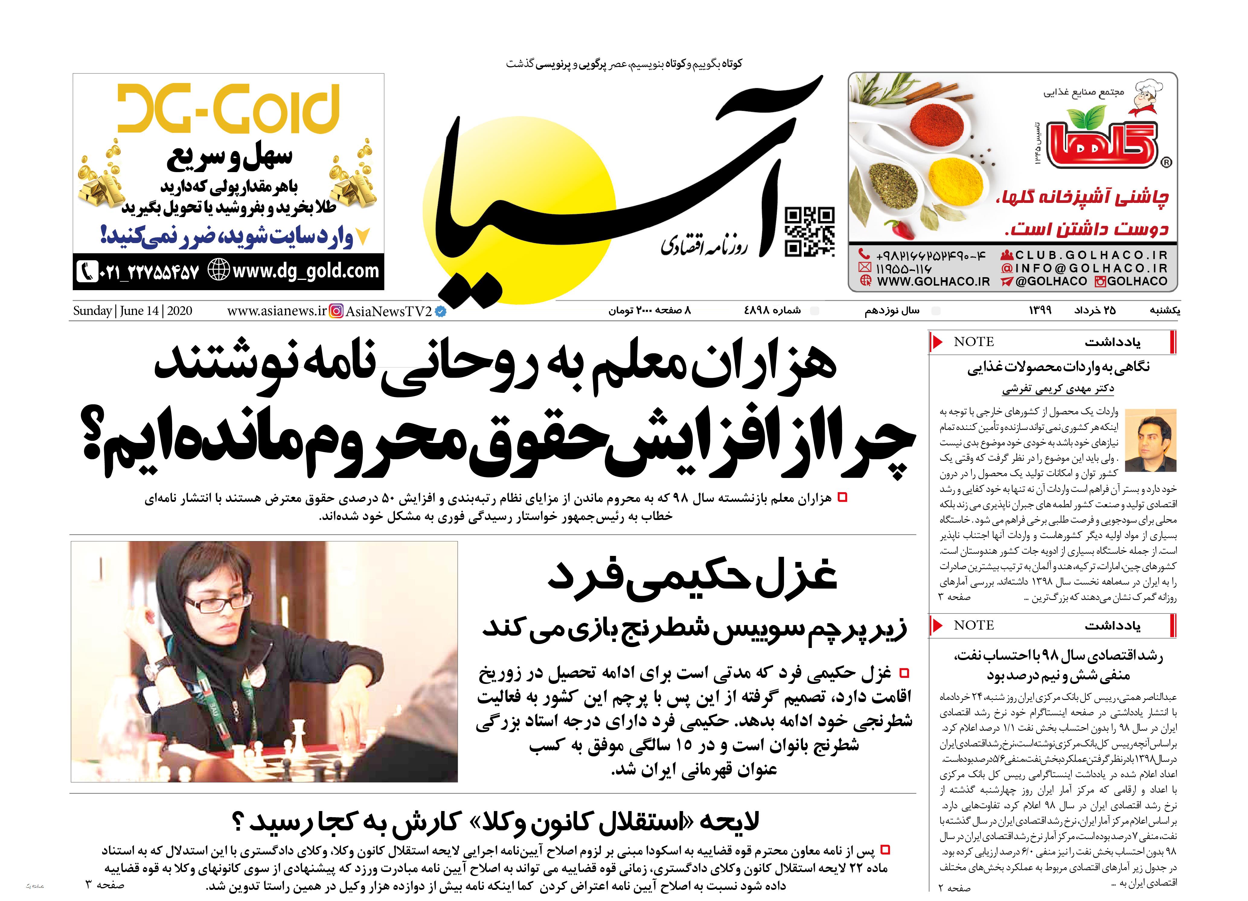 روزنامه اقتصادی آسیا- 25 خرداد 1399 ۲۴ خرداد ۱۳۹۹ https://www.asianewsiran.com/u/cdm آسیانیوز ایران هیچگونه مسولیتی در قبال نظرات کاربران ندارد. میانگین امتیاز کاربران: 0.0 (0 رای) 12345 امتیاز 12345 برای امتیاز باید عدد وارد کنید ایمیل را وارد کنید ایمیل صحیح نیست ایمیل نمایش داده شود. تعداد کاراکتر باقیمانده: 1000 نظر خود را وارد کنید بازخوانی بازخوانی پس از انتشار این نظر، به من اطلاع داده شود. ارسال توجه : نظرات بیان شده در یادداشتهایی که منتشر میکنیم، بیانگر عقیده نگارنده آن است و لزوماً دیدگاه مدیران وبسایت آسیانیوز و آسیانیوز ایران نمیباشد. سردبیر