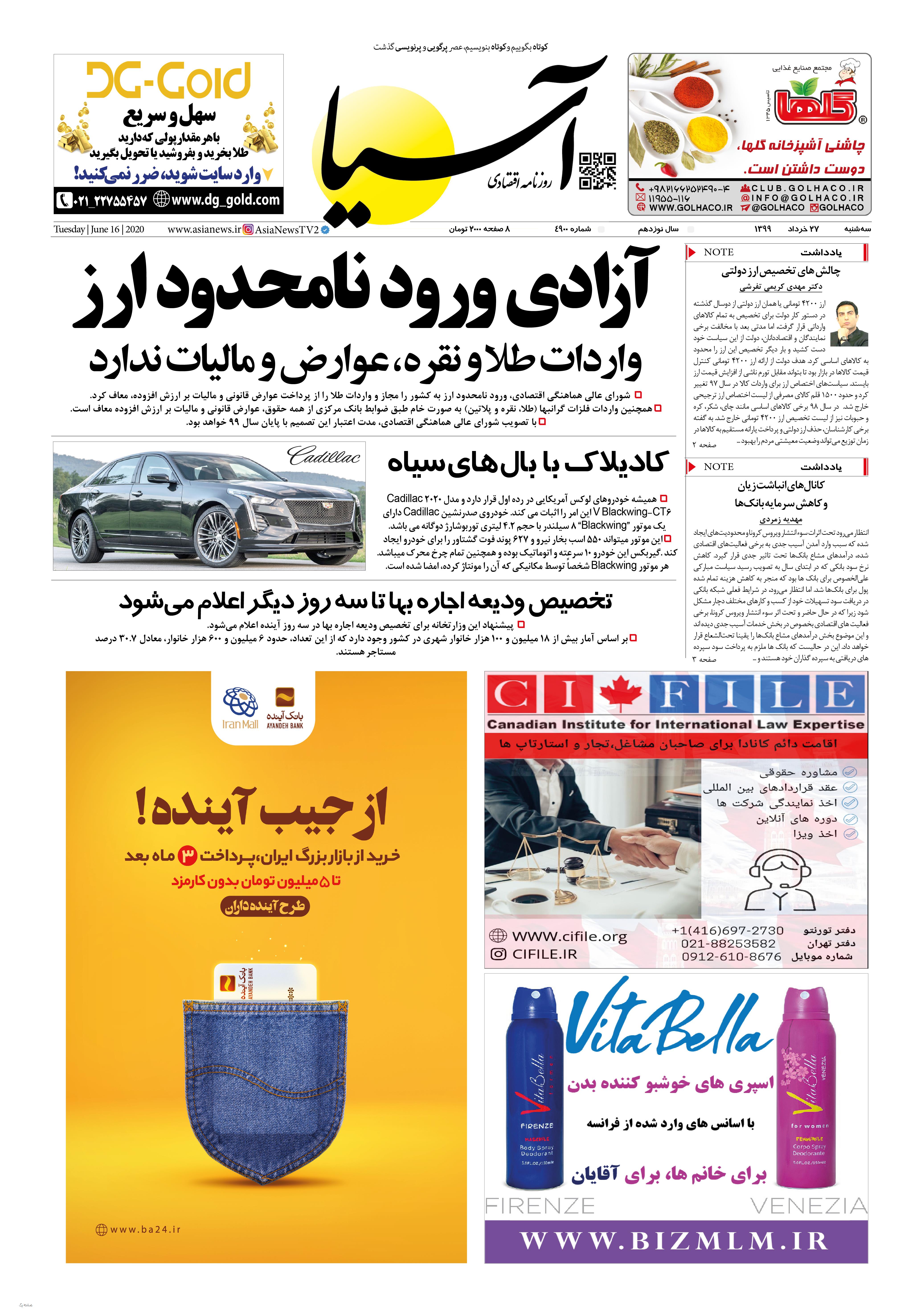 روزنامه اقتصادی آسیا- 27 خرداد 1399 ۲۶ خرداد ۱۳۹۹ https://www.asianewsiran.com/u/btz آسیانیوز ایران هیچگونه مسولیتی در قبال نظرات کاربران ندارد. میانگین امتیاز کاربران: 0.0 (0 رای) 12345 امتیاز 12345 برای امتیاز باید عدد وارد کنید ایمیل را وارد کنید ایمیل صحیح نیست ایمیل نمایش داده شود. تعداد کاراکتر باقیمانده: 1000 نظر خود را وارد کنید بازخوانی بازخوانی پس از انتشار این نظر، به من اطلاع داده شود. ارسال توجه : نظرات بیان شده در یادداشتهایی که منتشر میکنیم، بیانگر عقیده نگارنده آن است و لزوماً دیدگاه مدیران وبسایت آسیانیوز و آسیانیوز ایران نمیباشد. سردبیر