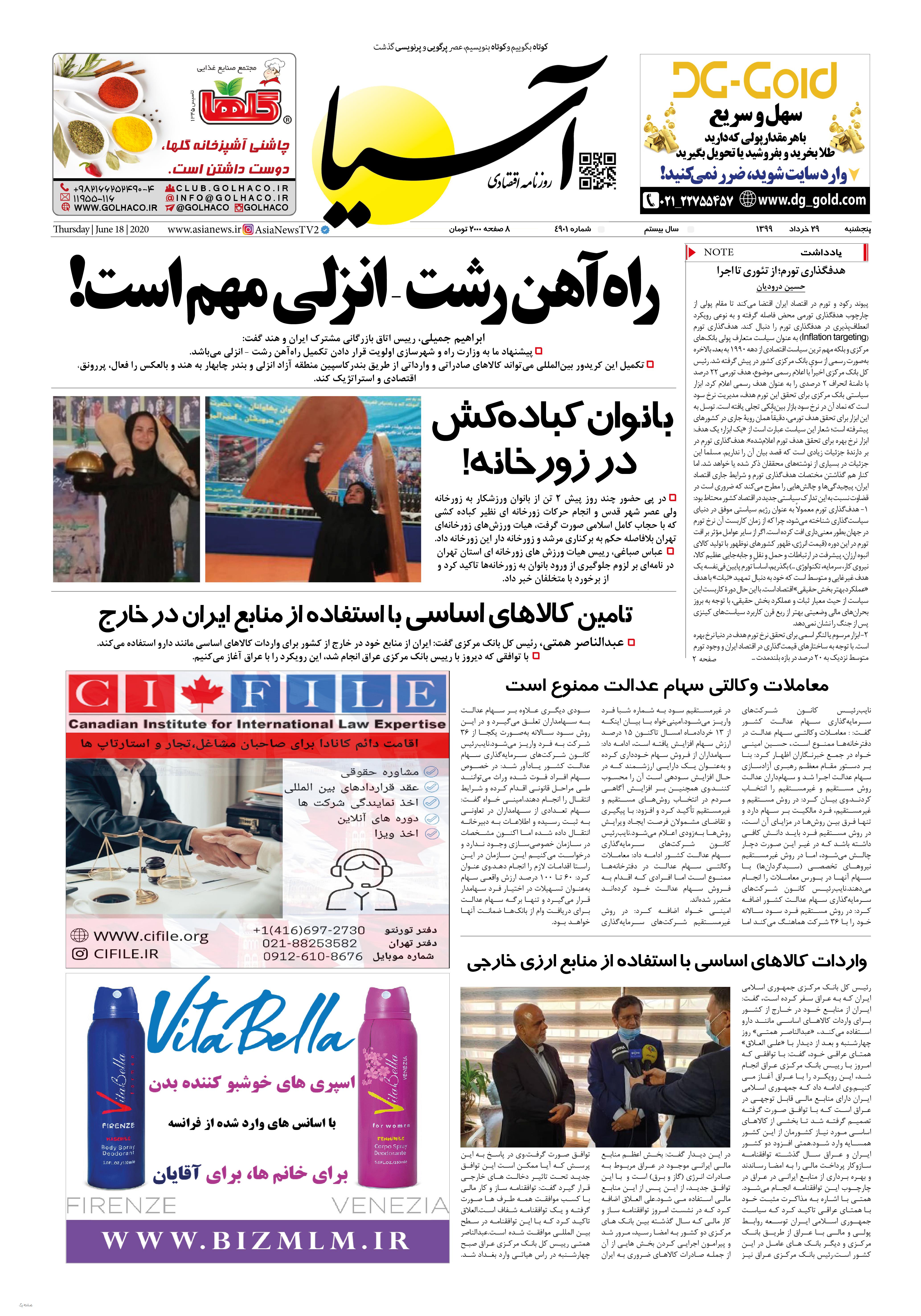 روزنامه اقتصادی آسیا- 29 خرداد 1399