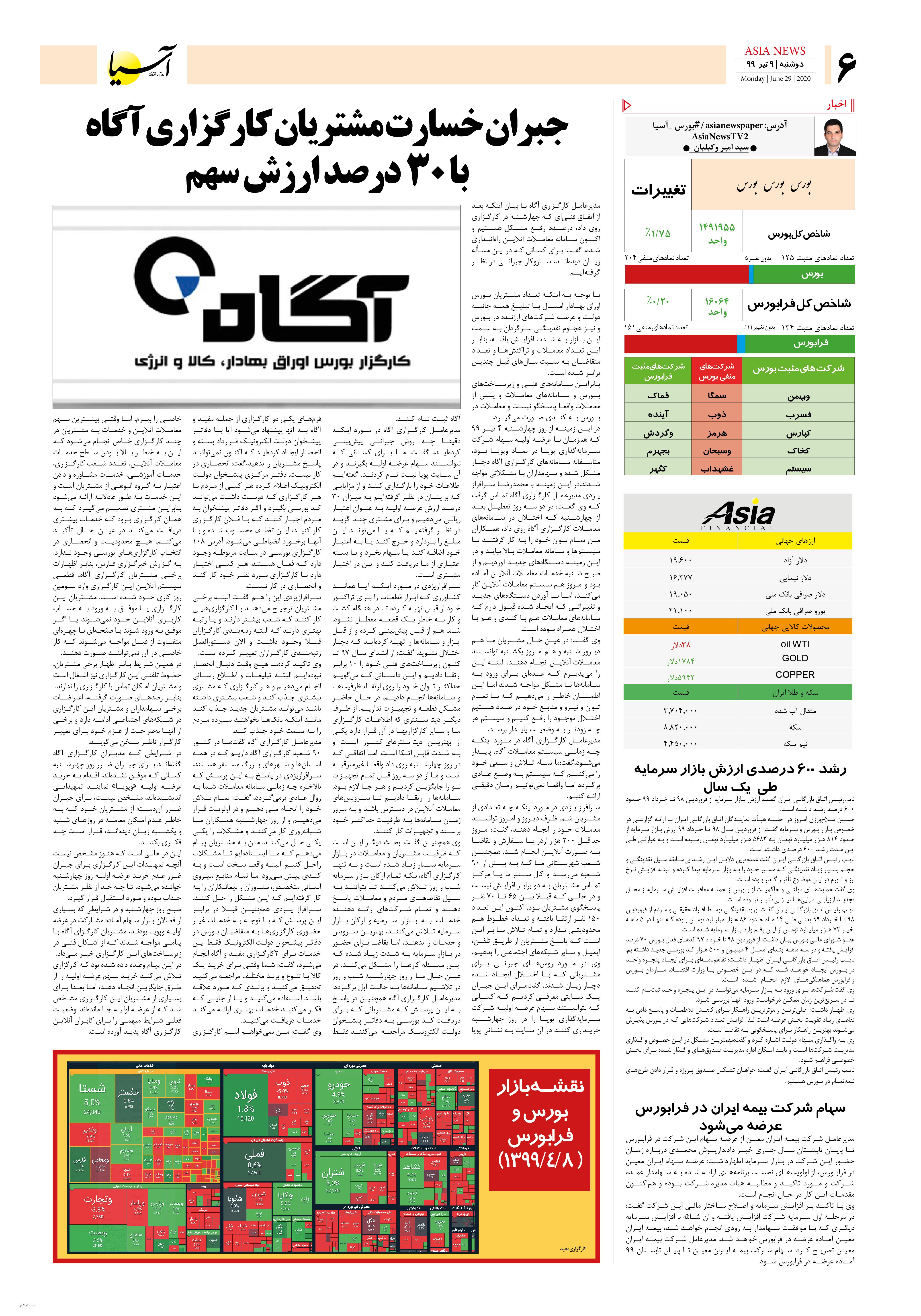 روزنامه اقتصادی آسیا- 9 تیر 1399 ۸ تیر ۱۳۹۹ https://www.asianewsiran.com/u/c3q آسیانیوز ایران هیچگونه مسولیتی در قبال نظرات کاربران ندارد. میانگین امتیاز کاربران: 0.0 (0 رای) 12345 امتیاز 12345 برای امتیاز باید عدد وارد کنید ایمیل را وارد کنید ایمیل صحیح نیست ایمیل نمایش داده شود. تعداد کاراکتر باقیمانده: 1000 نظر خود را وارد کنید بازخوانی بازخوانی پس از انتشار این نظر، به من اطلاع داده شود. ارسال توجه : نظرات بیان شده در یادداشتهایی که منتشر میکنیم، بیانگر عقیده نگارنده آن است و لزوماً دیدگاه مدیران وبسایت آسیانیوز و آسیانیوز ایران نمیباشد. سردبیر
