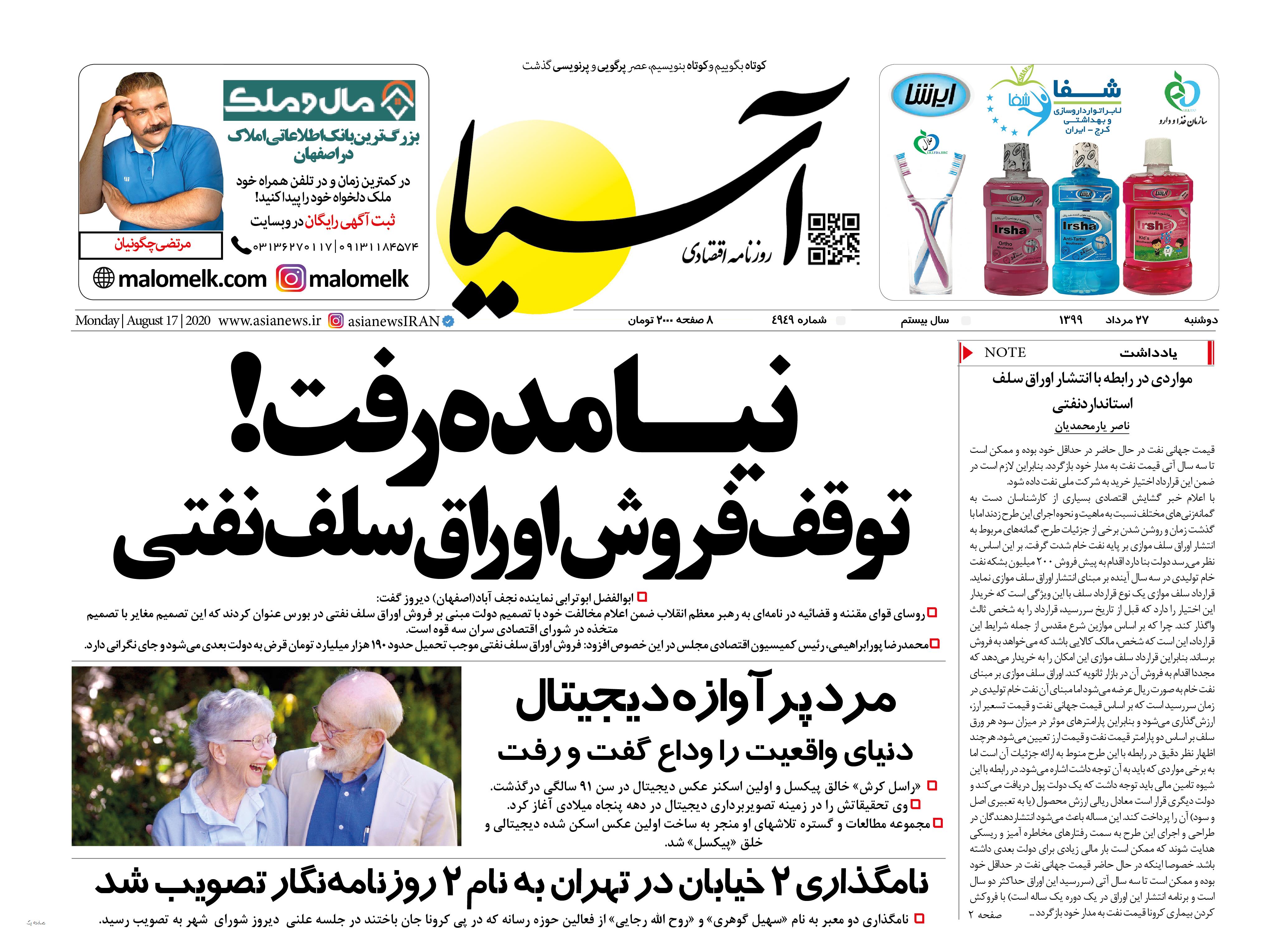 روزنامه آسیا -27 مرداد 1399 ۲۶ اَمرداد ۱۳۹۹ https://www.asianewsiran.com/u/cbd آسیانیوز ایران هیچگونه مسولیتی در قبال نظرات کاربران ندارد. میانگین امتیاز کاربران: 0.0 (0 رای) 12345 امتیاز 12345 برای امتیاز باید عدد وارد کنید ایمیل را وارد کنید ایمیل صحیح نیست ایمیل نمایش داده شود. تعداد کاراکتر باقیمانده: 1000 نظر خود را وارد کنید بازخوانی بازخوانی پس از انتشار این نظر، به من اطلاع داده شود. ارسال توجه : نظرات بیان شده در یادداشتهایی که منتشر میکنیم، بیانگر عقیده نگارنده آن است و لزوماً دیدگاه مدیران وبسایت آسیانیوز و آسیانیوز ایران نمیباشد. سردبیر
