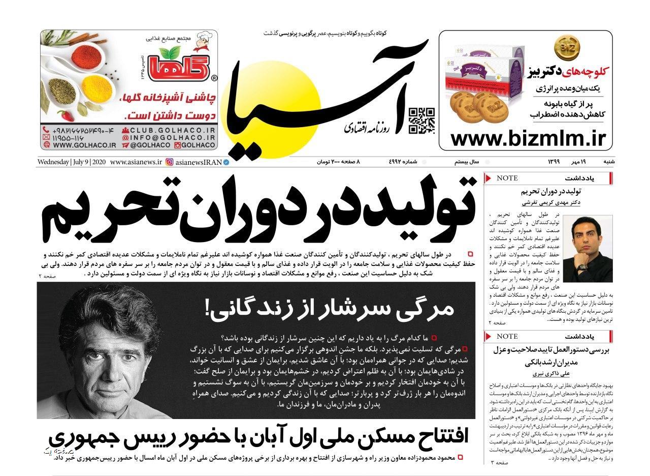 روزنامه اقتصادی آسیا-19 مهر 1399