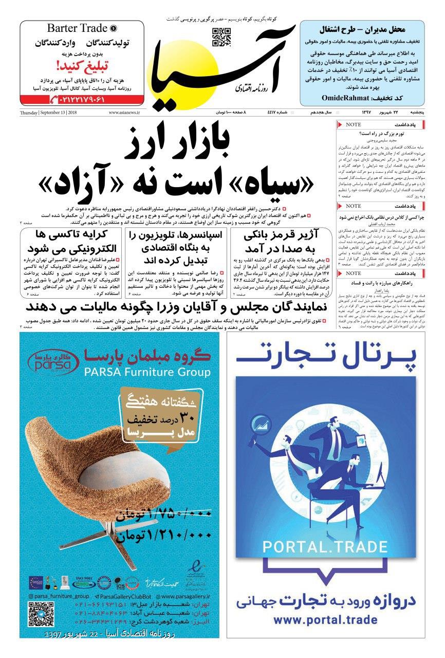 روزنامه اقتصادی آسیا - 22 شهریور1397