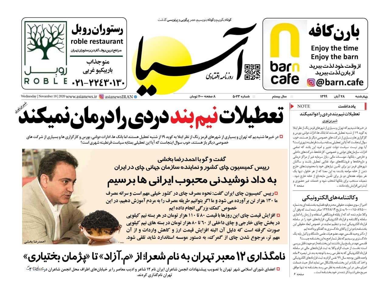 روزنامه اقتصادی آسیا- 28 آبان 1399 ۲۷ آبان ۱۳۹۹ https://www.asianewsiran.com/u/cdv آسیانیوز ایران هیچگونه مسولیتی در قبال نظرات کاربران ندارد. میانگین امتیاز کاربران: 0.0 (0 رای) 12345 امتیاز 12345 برای امتیاز باید عدد وارد کنید ایمیل را وارد کنید ایمیل صحیح نیست ایمیل نمایش داده شود. تعداد کاراکتر باقیمانده: 1000 نظر خود را وارد کنید بازخوانی بازخوانی پس از انتشار این نظر، به من اطلاع داده شود. ارسال توجه : نظرات بیان شده در یادداشتهایی که منتشر میکنیم، بیانگر عقیده نگارنده آن است و لزوماً دیدگاه مدیران وبسایت آسیانیوز و آسیانیوز ایران نمیباشد. سردبیر