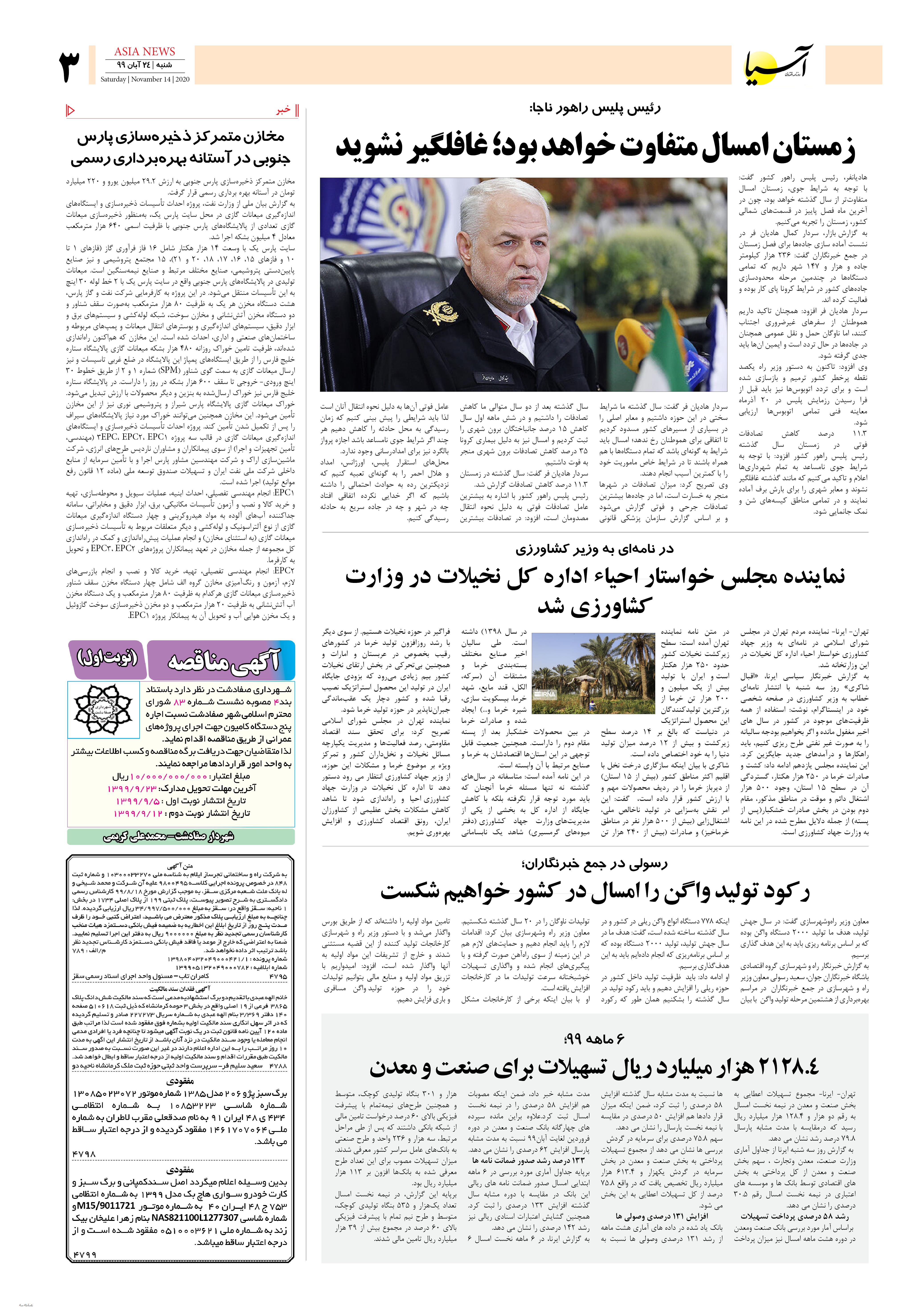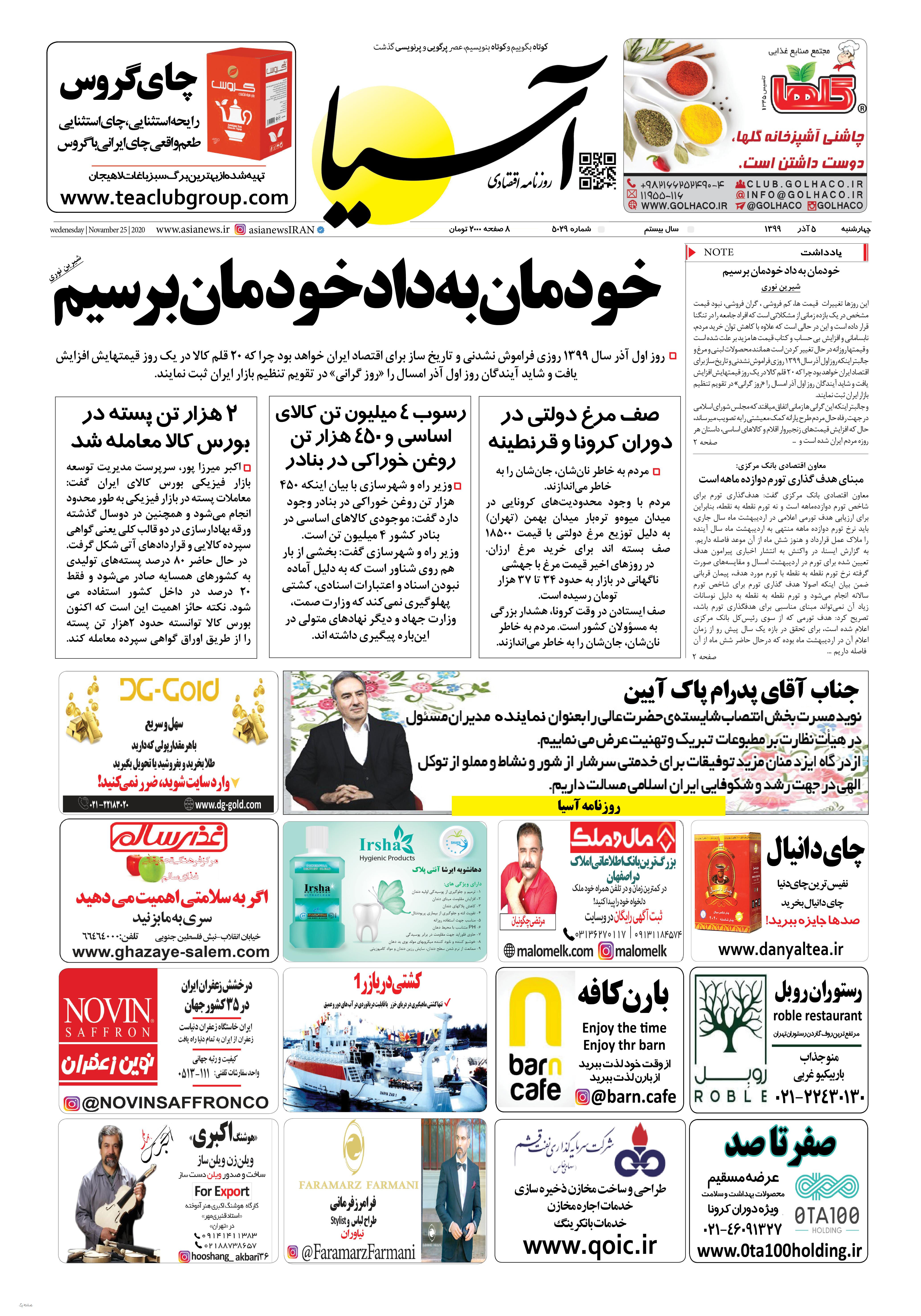 روزنامه اقتصادی آسیا- 05 آذر 1399 ۴ آذر ۱۳۹۹ https://www.asianewsiran.com/u/clt آسیانیوز ایران هیچگونه مسولیتی در قبال نظرات کاربران ندارد. میانگین امتیاز کاربران: 0.0 (0 رای) 12345 امتیاز 12345 برای امتیاز باید عدد وارد کنید ایمیل را وارد کنید ایمیل صحیح نیست ایمیل نمایش داده شود. تعداد کاراکتر باقیمانده: 1000 نظر خود را وارد کنید بازخوانی بازخوانی پس از انتشار این نظر، به من اطلاع داده شود. ارسال توجه : نظرات بیان شده در یادداشتهایی که منتشر میکنیم، بیانگر عقیده نگارنده آن است و لزوماً دیدگاه مدیران وبسایت آسیانیوز و آسیانیوز ایران نمیباشد. سردبیر