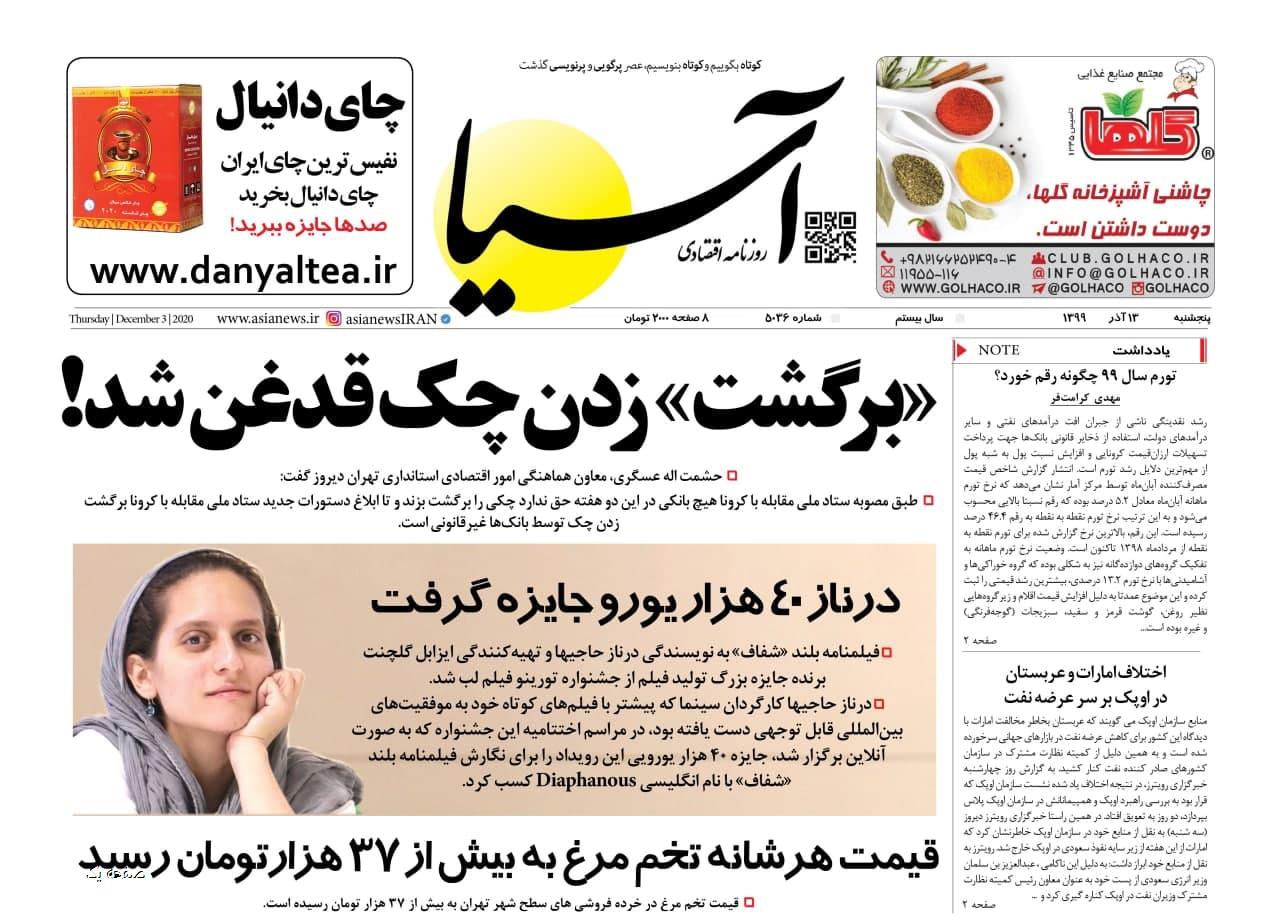روزنامه اقتصادی آسیا- 13 آذر 1399