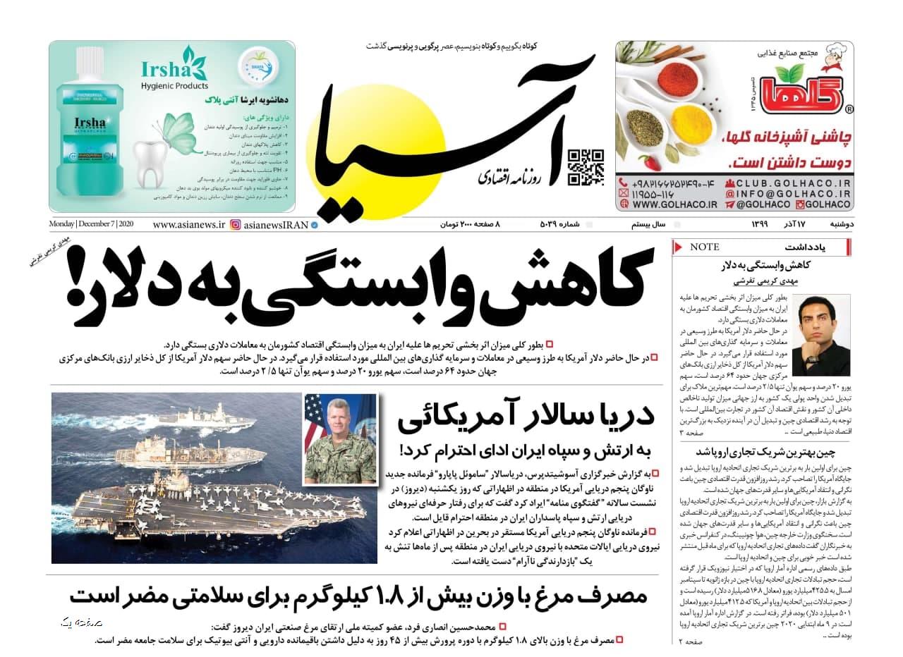 روزنامه اقتصادی آسیا- 17 آذر 1399 ۱۶ آذر ۱۳۹۹ https://www.asianewsiran.com/u/cpz آسیانیوز ایران هیچگونه مسولیتی در قبال نظرات کاربران ندارد. میانگین امتیاز کاربران: 0.0 (0 رای) 12345 امتیاز 12345 برای امتیاز باید عدد وارد کنید ایمیل را وارد کنید ایمیل صحیح نیست ایمیل نمایش داده شود. تعداد کاراکتر باقیمانده: 1000 نظر خود را وارد کنید بازخوانی بازخوانی پس از انتشار این نظر، به من اطلاع داده شود. ارسال توجه : نظرات بیان شده در یادداشتهایی که منتشر میکنیم، بیانگر عقیده نگارنده آن است و لزوماً دیدگاه مدیران وبسایت آسیانیوز و آسیانیوز ایران نمیباشد. سردبیر