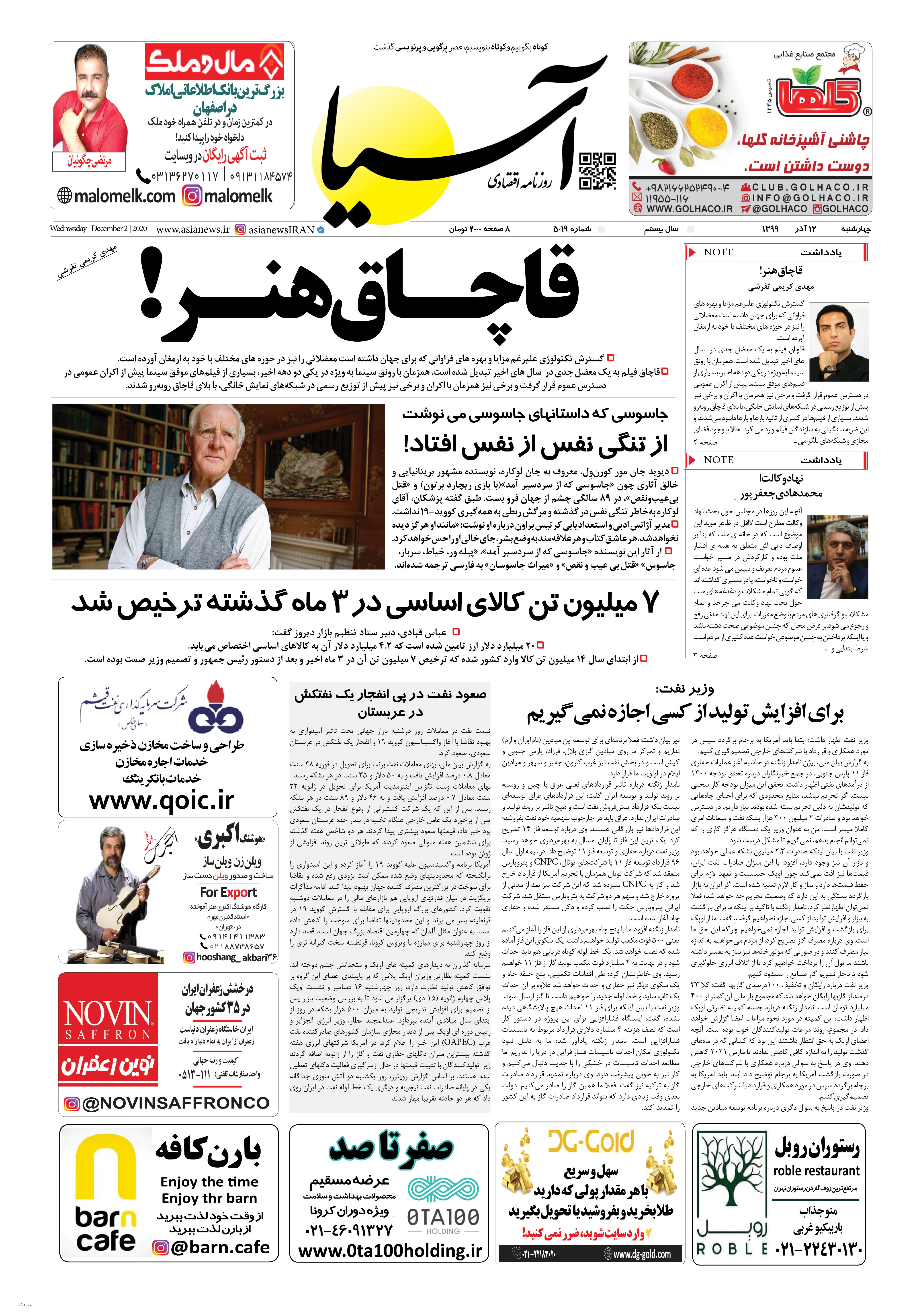 روزنامه اقتصادی آسیا- 25 آذر 1399 ۲۴ آذر ۱۳۹۹ https://www.asianewsiran.com/u/bqe آسیانیوز ایران هیچگونه مسولیتی در قبال نظرات کاربران ندارد. میانگین امتیاز کاربران: 0.0 (0 رای) 12345 امتیاز 12345 برای امتیاز باید عدد وارد کنید ایمیل را وارد کنید ایمیل صحیح نیست ایمیل نمایش داده شود. تعداد کاراکتر باقیمانده: 1000 نظر خود را وارد کنید بازخوانی بازخوانی پس از انتشار این نظر، به من اطلاع داده شود. ارسال توجه : نظرات بیان شده در یادداشتهایی که منتشر میکنیم، بیانگر عقیده نگارنده آن است و لزوماً دیدگاه مدیران وبسایت آسیانیوز و آسیانیوز ایران نمیباشد. سردبیر