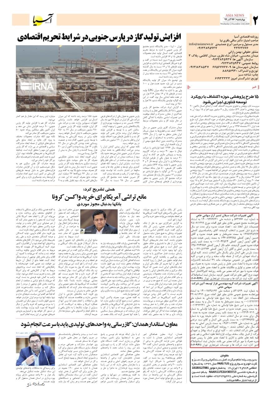 روزنامه اقتصادی آسیا- 26 آذر 1399 ۲۵ آذر ۱۳۹۹ https://www.asianewsiran.com/u/c12 آسیانیوز ایران هیچگونه مسولیتی در قبال نظرات کاربران ندارد. میانگین امتیاز کاربران: 0.0 (0 رای) 12345 امتیاز 12345 برای امتیاز باید عدد وارد کنید ایمیل را وارد کنید ایمیل صحیح نیست ایمیل نمایش داده شود. تعداد کاراکتر باقیمانده: 1000 نظر خود را وارد کنید بازخوانی بازخوانی پس از انتشار این نظر، به من اطلاع داده شود. ارسال توجه : نظرات بیان شده در یادداشتهایی که منتشر میکنیم، بیانگر عقیده نگارنده آن است و لزوماً دیدگاه مدیران وبسایت آسیانیوز و آسیانیوز ایران نمیباشد. سردبیر
