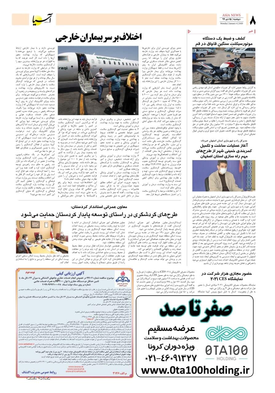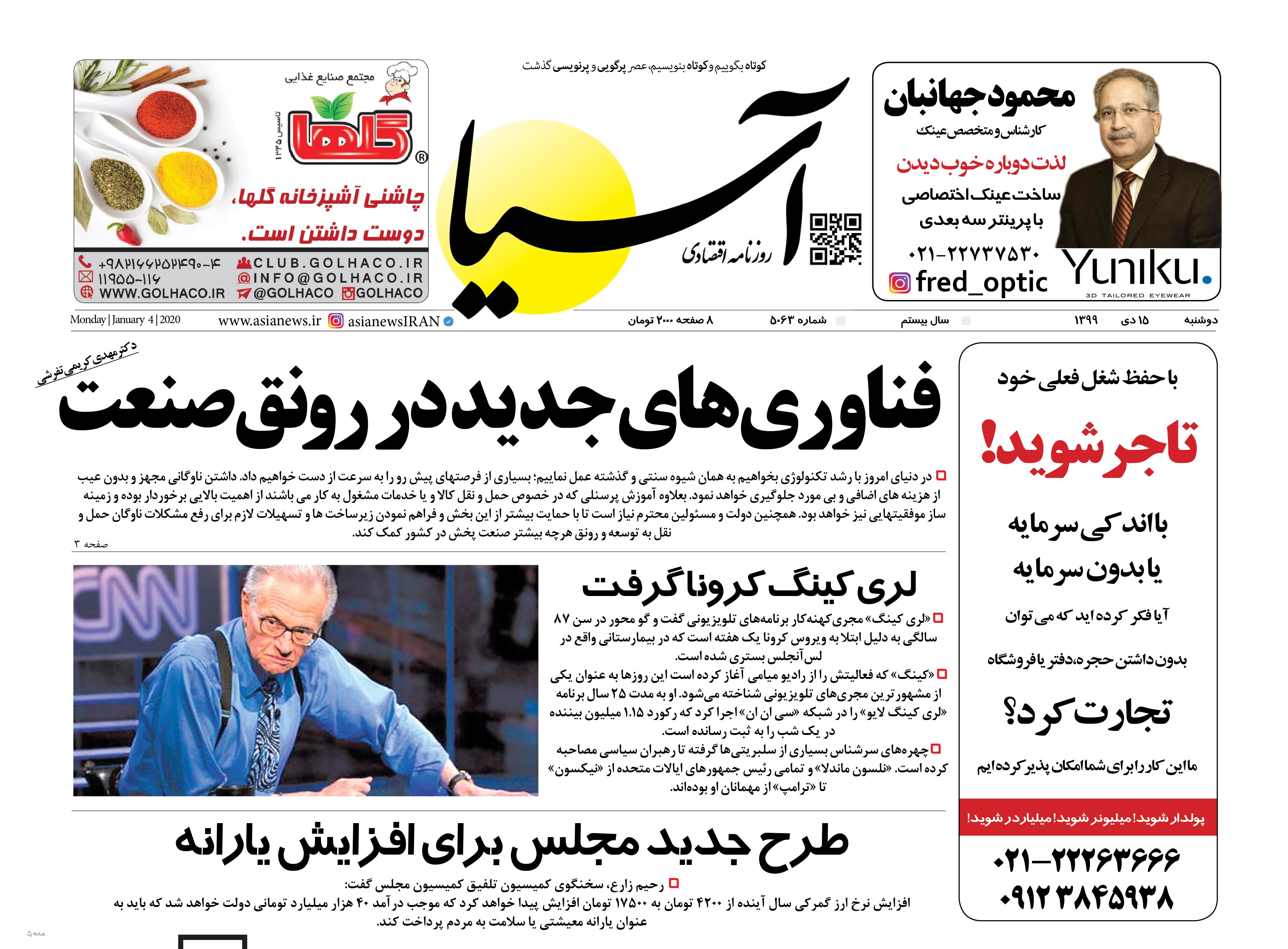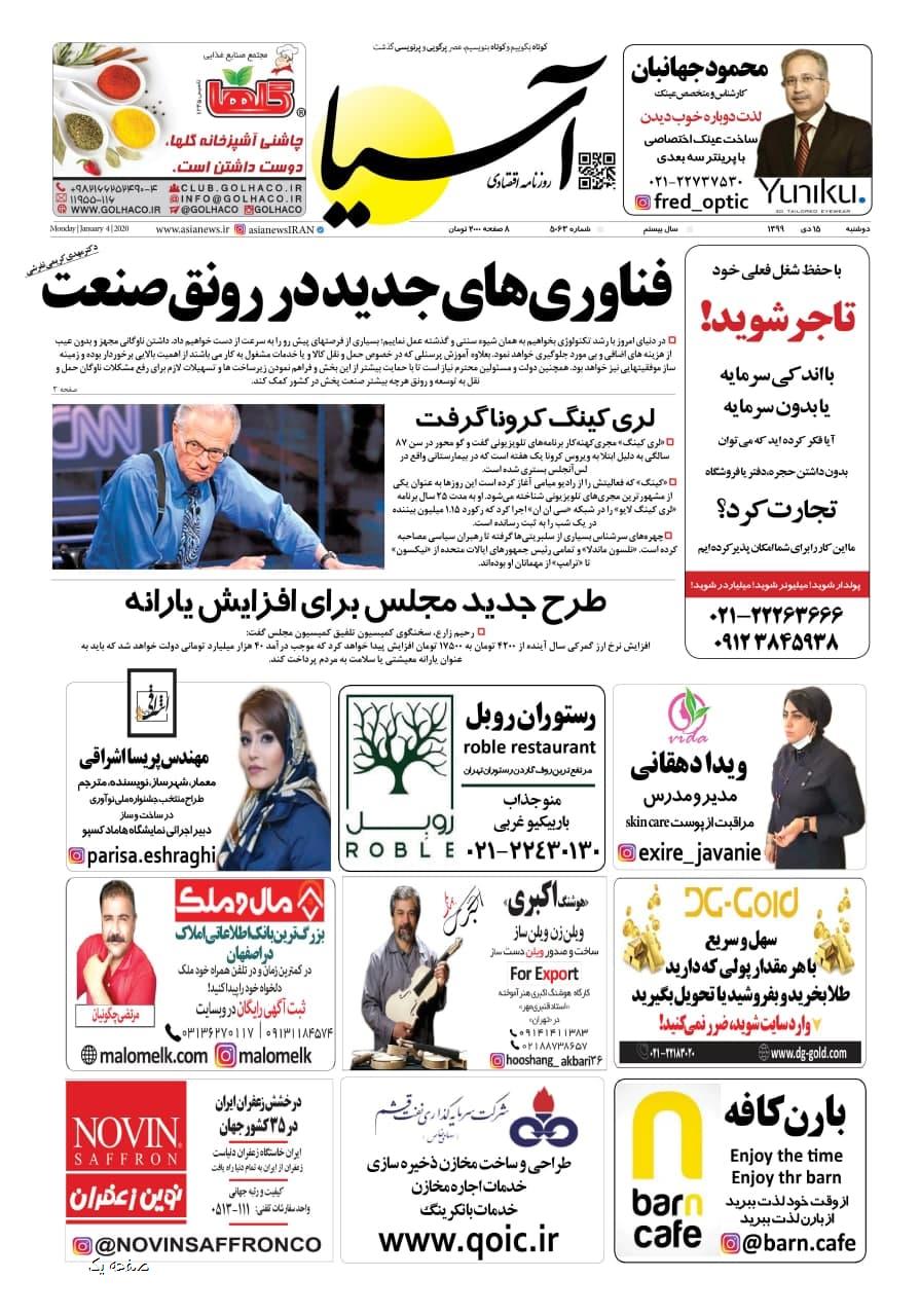 روزنامه اقتصادی آسیا- 15 دی 1399