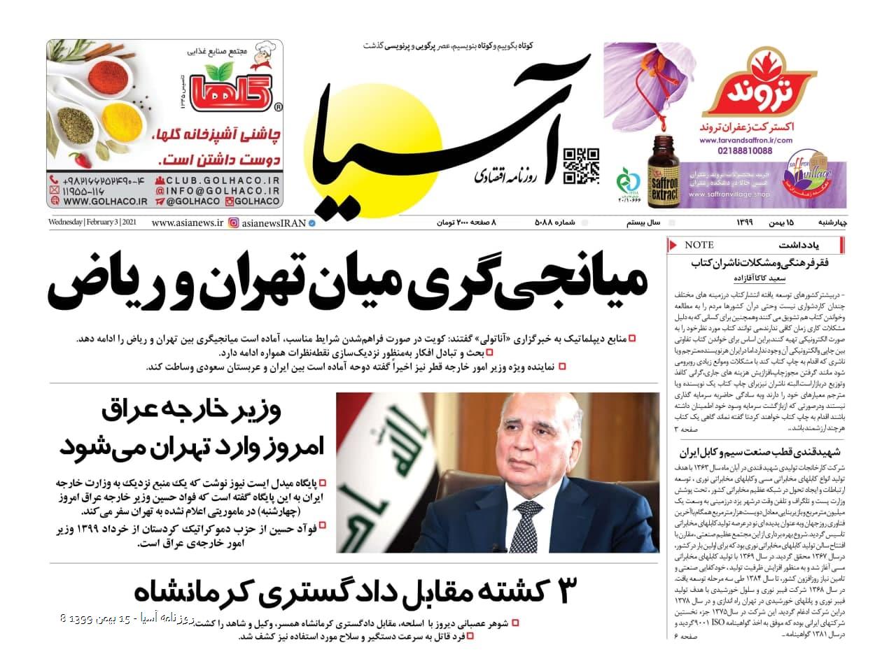 روزنامه اقتصادی آسیا - 15 بهمن 1399