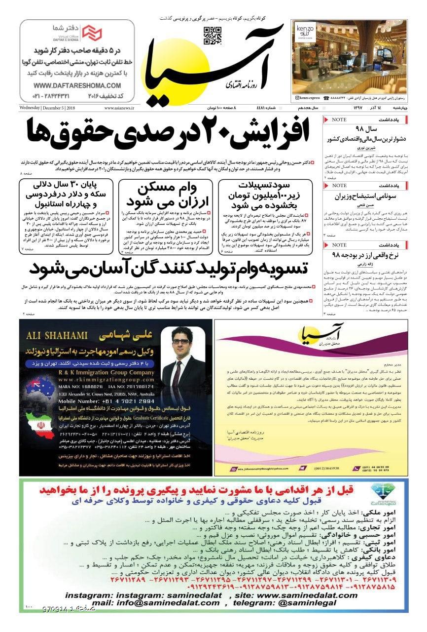 روزنامه اقتصادی آسیا - 14 آذر 1397 ۱۴ آذر ۱۳۹۷ https://www.asianewsiran.com/u/cst آسیانیوز ایران هیچگونه مسولیتی در قبال نظرات کاربران ندارد. میانگین امتیاز کاربران: 0.0 (0 رای) 12345 امتیاز 12345 برای امتیاز باید عدد وارد کنید ایمیل را وارد کنید ایمیل صحیح نیست ایمیل نمایش داده شود. تعداد کاراکتر باقیمانده: 1000 نظر خود را وارد کنید بازخوانی بازخوانی پس از انتشار این نظر، به من اطلاع داده شود. ارسال توجه : نظرات بیان شده در یادداشتهایی که منتشر میکنیم، بیانگر عقیده نگارنده آن است و لزوماً دیدگاه مدیران وبسایت آسیانیوز و آسیانیوز ایران نمیباشد. سردبیر