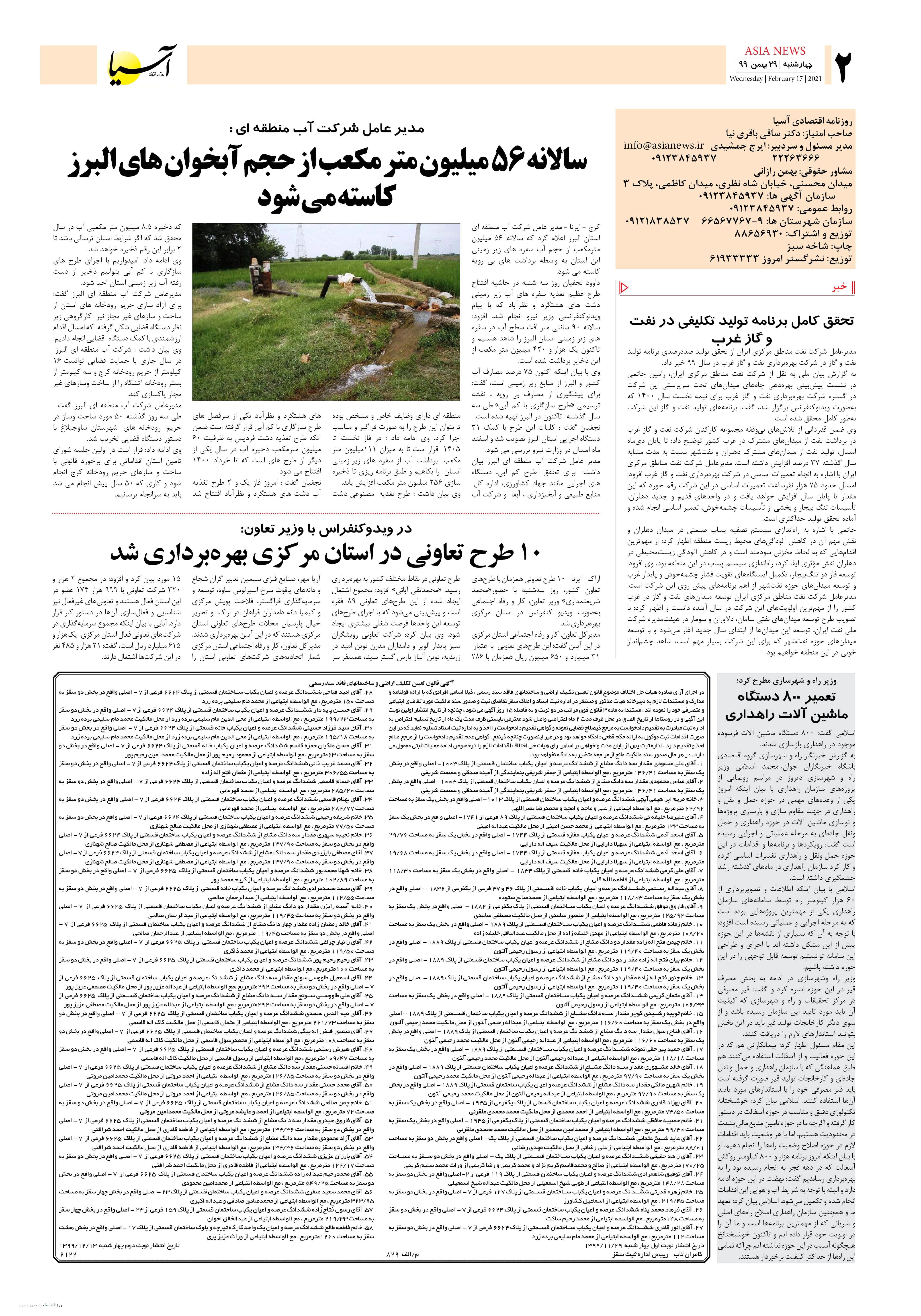 روزنامه اقتصادی آسیا - 29 بهمن 1399