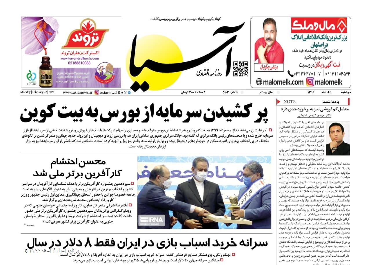 روزنامه اقتصادی آسیا - ۴ اسفند ۱۳۹۹ ۳ اسفند ۱۳۹۹ https://www.asianewsiran.com/u/bmo آسیانیوز ایران هیچگونه مسولیتی در قبال نظرات کاربران ندارد. میانگین امتیاز کاربران: 0.0 (0 رای) 12345 امتیاز 12345 برای امتیاز باید عدد وارد کنید ایمیل را وارد کنید ایمیل صحیح نیست ایمیل نمایش داده شود. تعداد کاراکتر باقیمانده: 1000 نظر خود را وارد کنید بازخوانی بازخوانی پس از انتشار این نظر، به من اطلاع داده شود. ارسال توجه : نظرات بیان شده در یادداشتهایی که منتشر میکنیم، بیانگر عقیده نگارنده آن است و لزوماً دیدگاه مدیران وبسایت آسیانیوز و آسیانیوز ایران نمیباشد. سردبیر