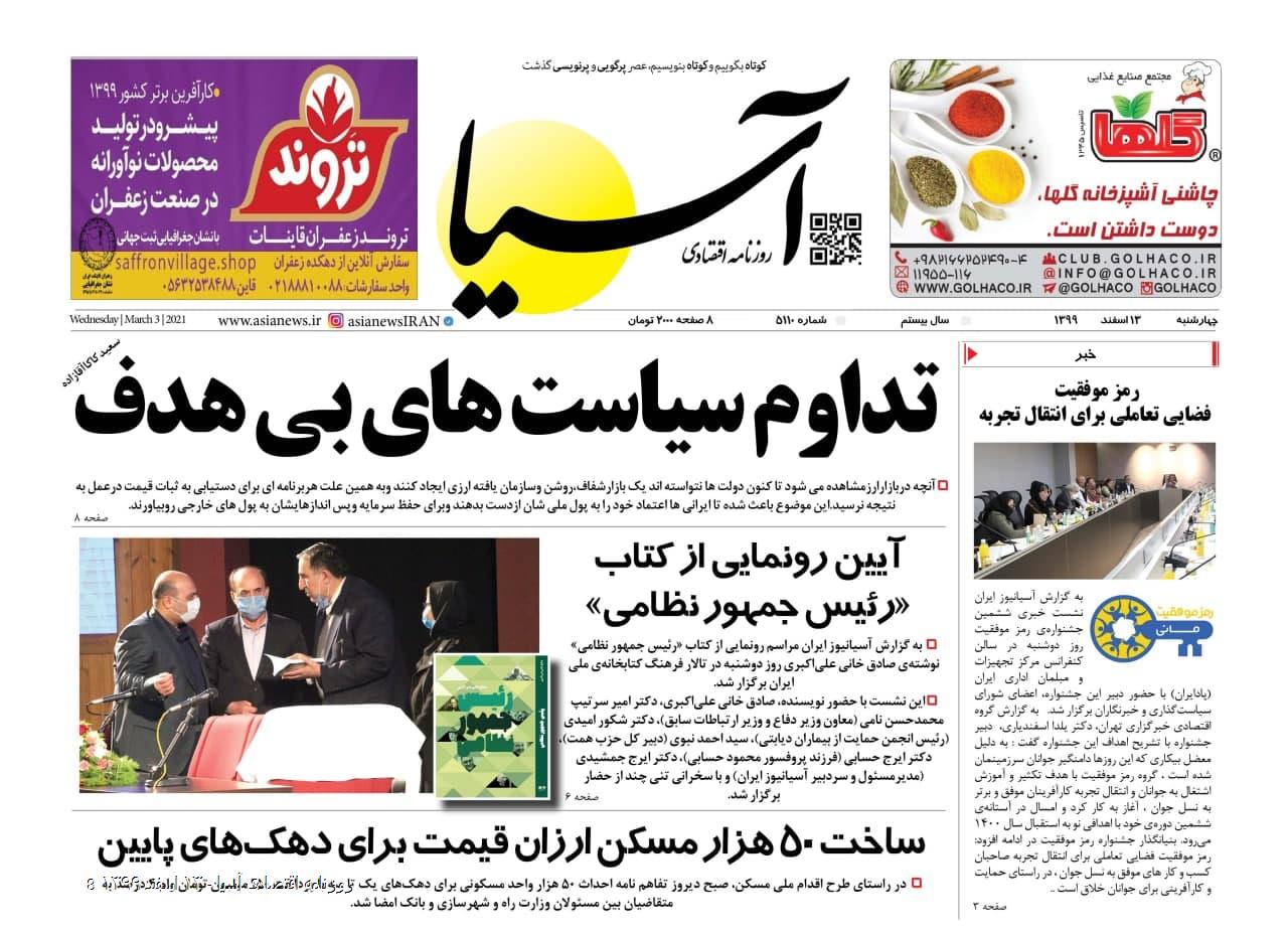 روزنامه اقتصادی آسیا - ۱۳ اسفند ۱۳۹۹ ۱۲ اسفند ۱۳۹۹ https://www.asianewsiran.com/u/blw آسیانیوز ایران هیچگونه مسولیتی در قبال نظرات کاربران ندارد. میانگین امتیاز کاربران: 0.0 (0 رای) 12345 امتیاز 12345 برای امتیاز باید عدد وارد کنید ایمیل را وارد کنید ایمیل صحیح نیست ایمیل نمایش داده شود. تعداد کاراکتر باقیمانده: 1000 نظر خود را وارد کنید بازخوانی بازخوانی پس از انتشار این نظر، به من اطلاع داده شود. ارسال توجه : نظرات بیان شده در یادداشتهایی که منتشر میکنیم، بیانگر عقیده نگارنده آن است و لزوماً دیدگاه مدیران وبسایت آسیانیوز و آسیانیوز ایران نمیباشد. سردبیر