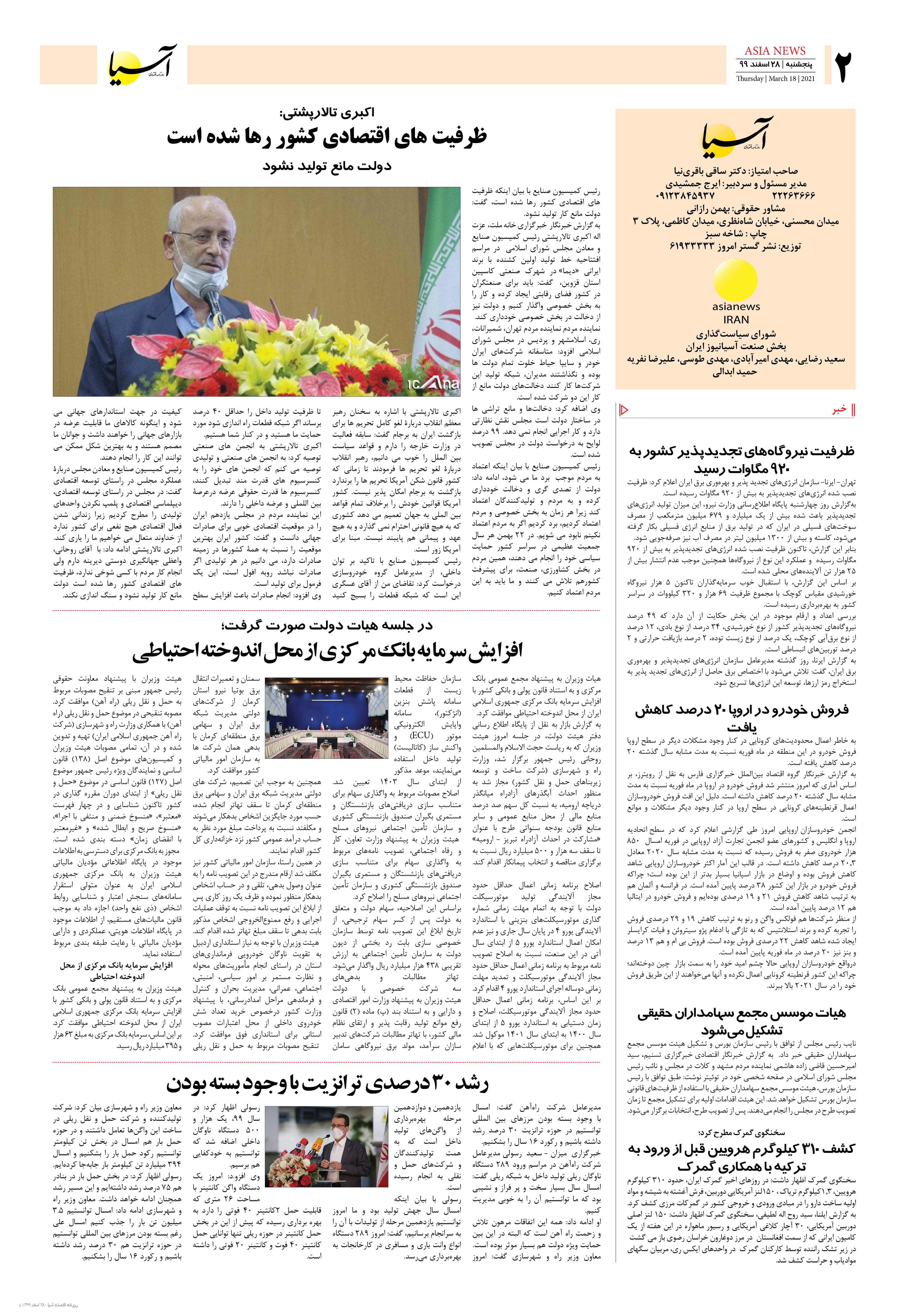 روزنامه اقتصادی آسیا - ۲۸ اسفند ۱۳۹۹ ۲۷ اسفند ۱۳۹۹ https://www.asianewsiran.com/u/bnv آسیانیوز ایران هیچگونه مسولیتی در قبال نظرات کاربران ندارد. میانگین امتیاز کاربران: 0.0 (0 رای) 12345 امتیاز 12345 برای امتیاز باید عدد وارد کنید ایمیل را وارد کنید ایمیل صحیح نیست ایمیل نمایش داده شود. تعداد کاراکتر باقیمانده: 1000 نظر خود را وارد کنید بازخوانی بازخوانی پس از انتشار این نظر، به من اطلاع داده شود. ارسال توجه : نظرات بیان شده در یادداشتهایی که منتشر میکنیم، بیانگر عقیده نگارنده آن است و لزوماً دیدگاه مدیران وبسایت آسیانیوز و آسیانیوز ایران نمیباشد. سردبیر