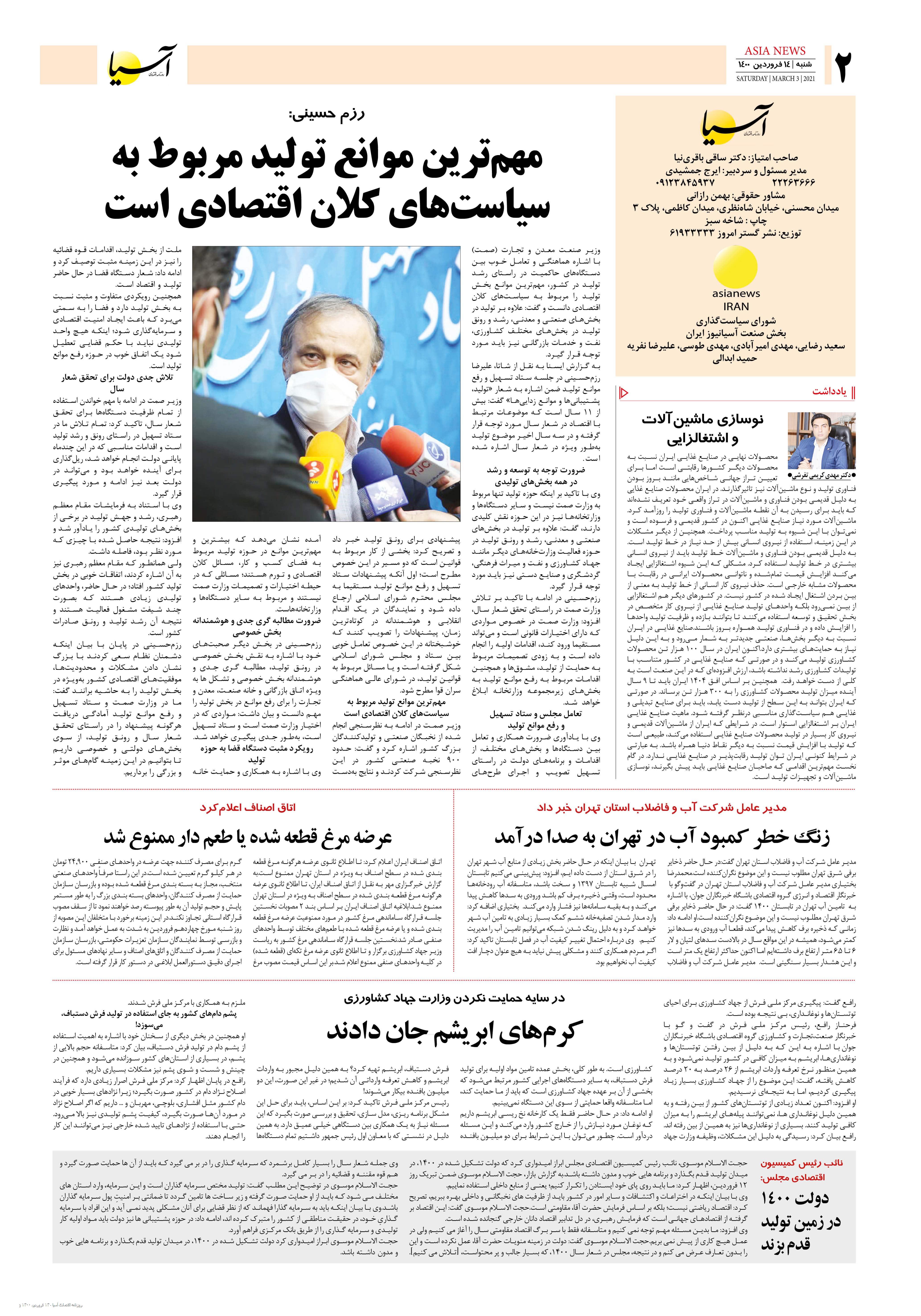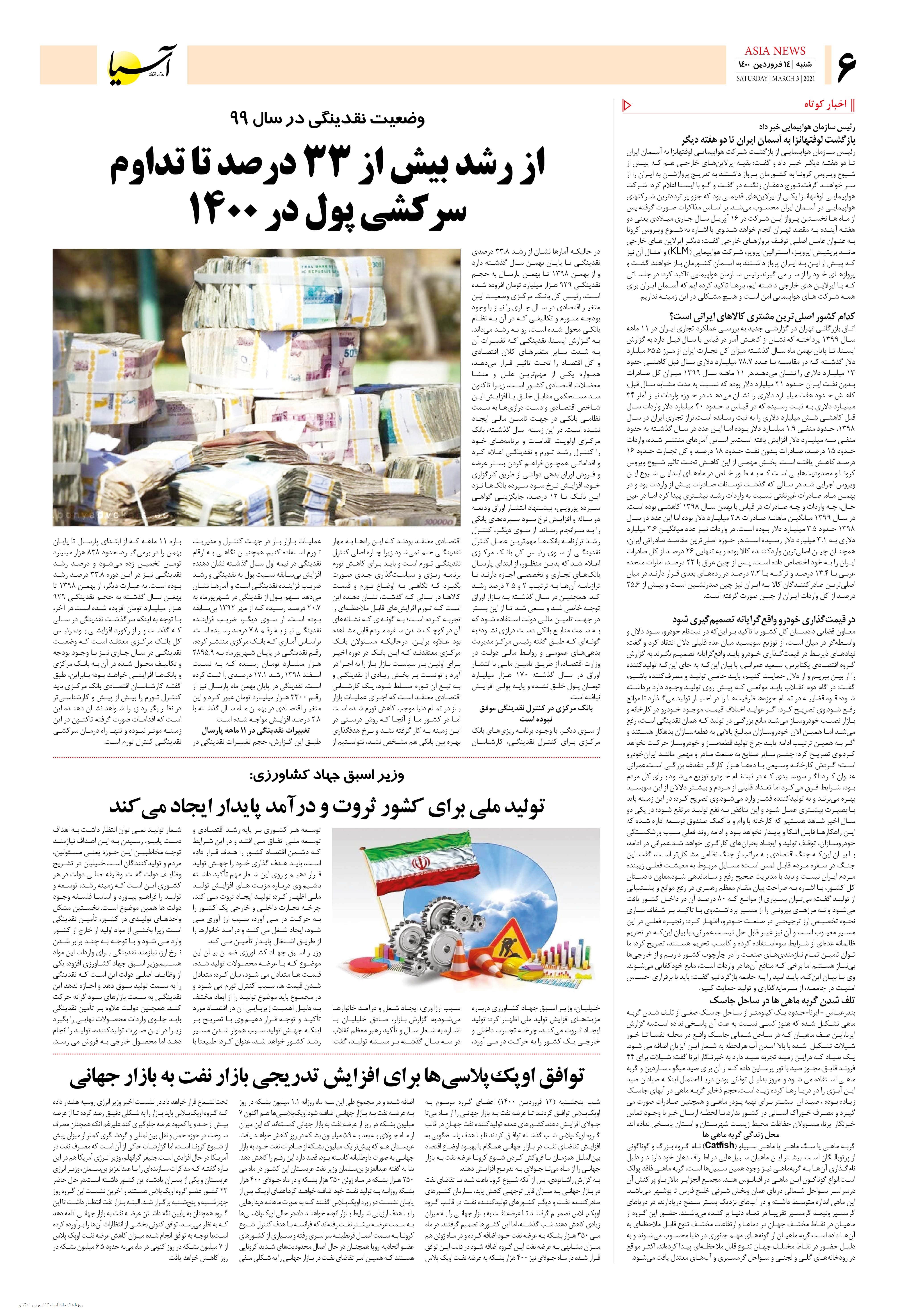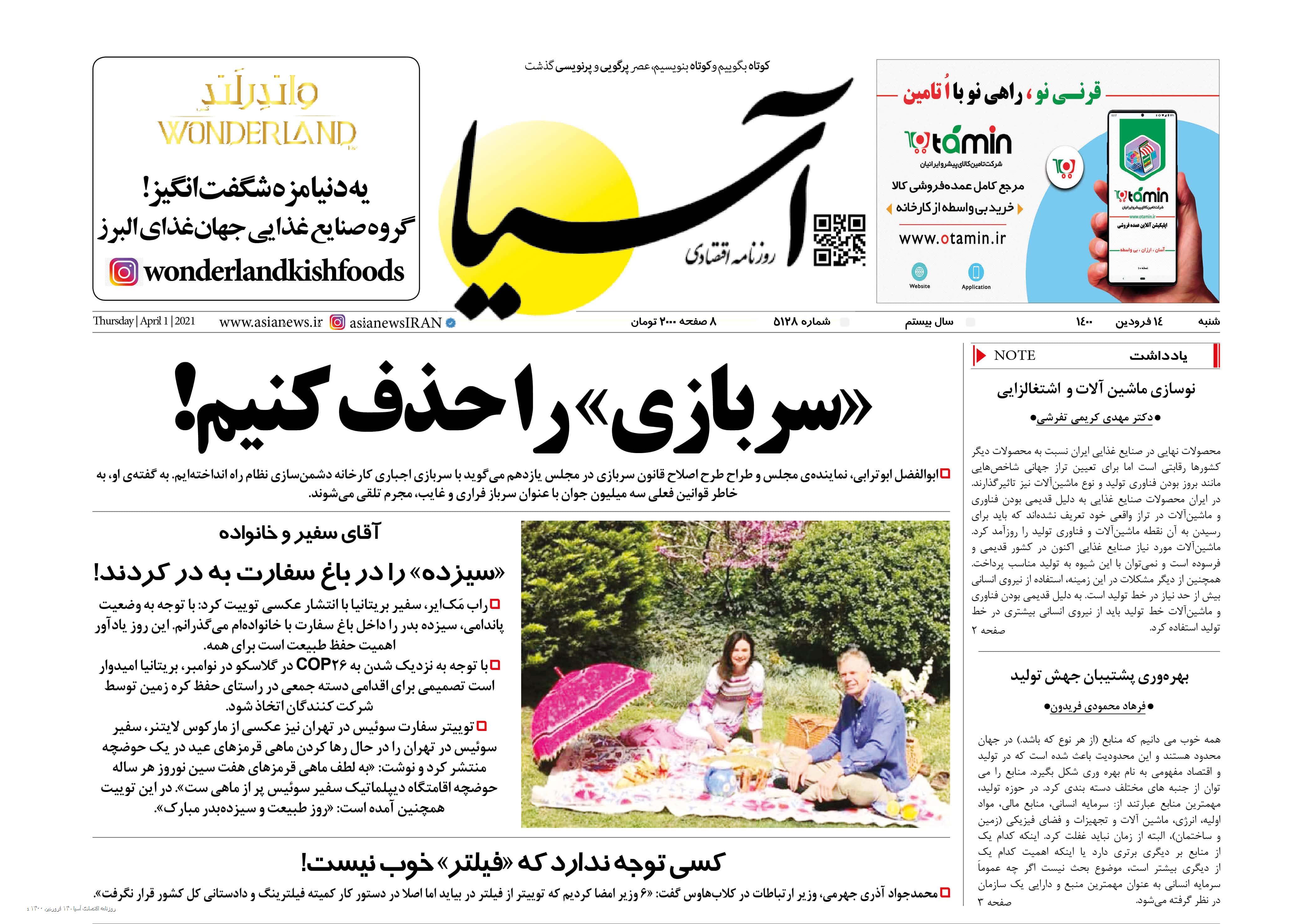 روزنامه اقتصادی آسیا - ۱۴ فروردین ۱۴۰۰