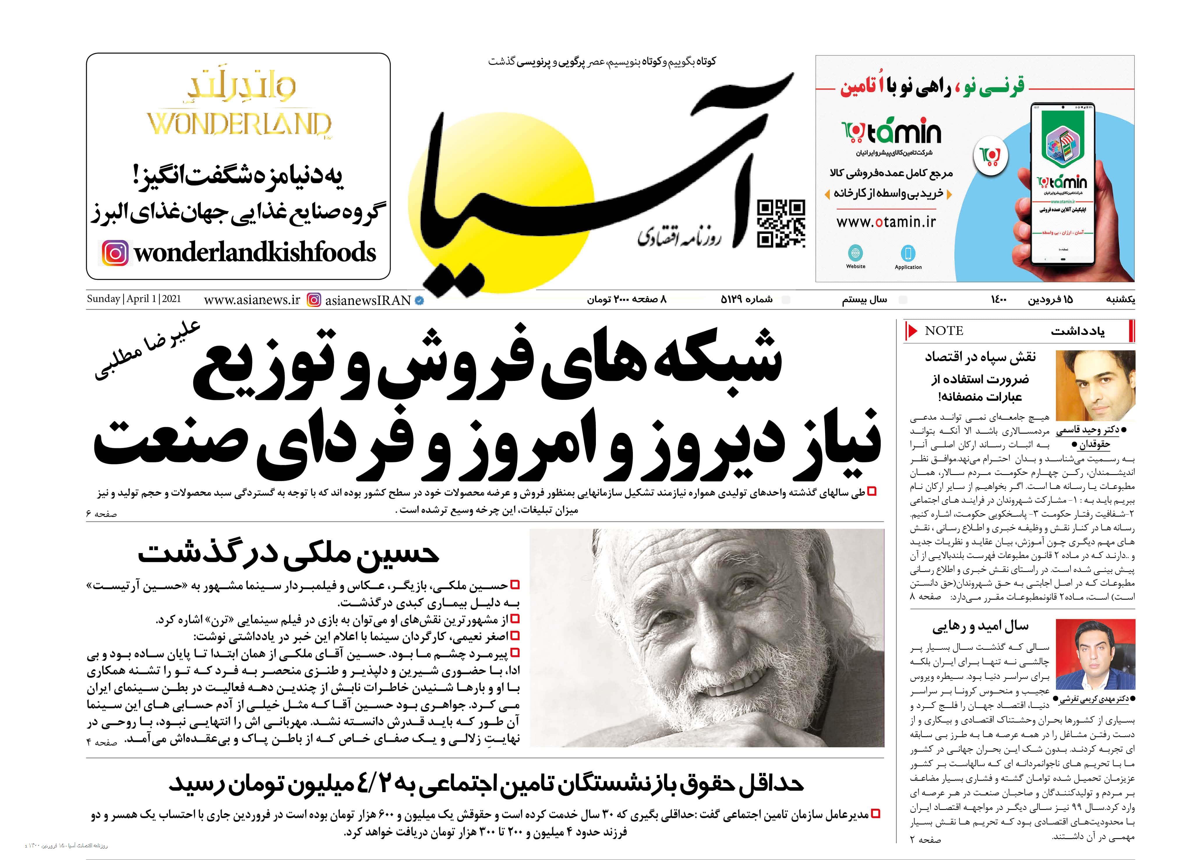 روزنامه اقتصادی آسیا - ۱۵ فروردین ۱۴۰۰ ۱۵ فروردین ۱۴۰۰ https://www.asianewsiran.com/u/bmz آسیانیوز ایران هیچگونه مسولیتی در قبال نظرات کاربران ندارد. میانگین امتیاز کاربران: 0.0 (0 رای) 12345 امتیاز 12345 برای امتیاز باید عدد وارد کنید ایمیل را وارد کنید ایمیل صحیح نیست ایمیل نمایش داده شود. تعداد کاراکتر باقیمانده: 1000 نظر خود را وارد کنید بازخوانی بازخوانی پس از انتشار این نظر، به من اطلاع داده شود. ارسال توجه : نظرات بیان شده در یادداشتهایی که منتشر میکنیم، بیانگر عقیده نگارنده آن است و لزوماً دیدگاه مدیران وبسایت آسیانیوز و آسیانیوز ایران نمیباشد. سردبیر