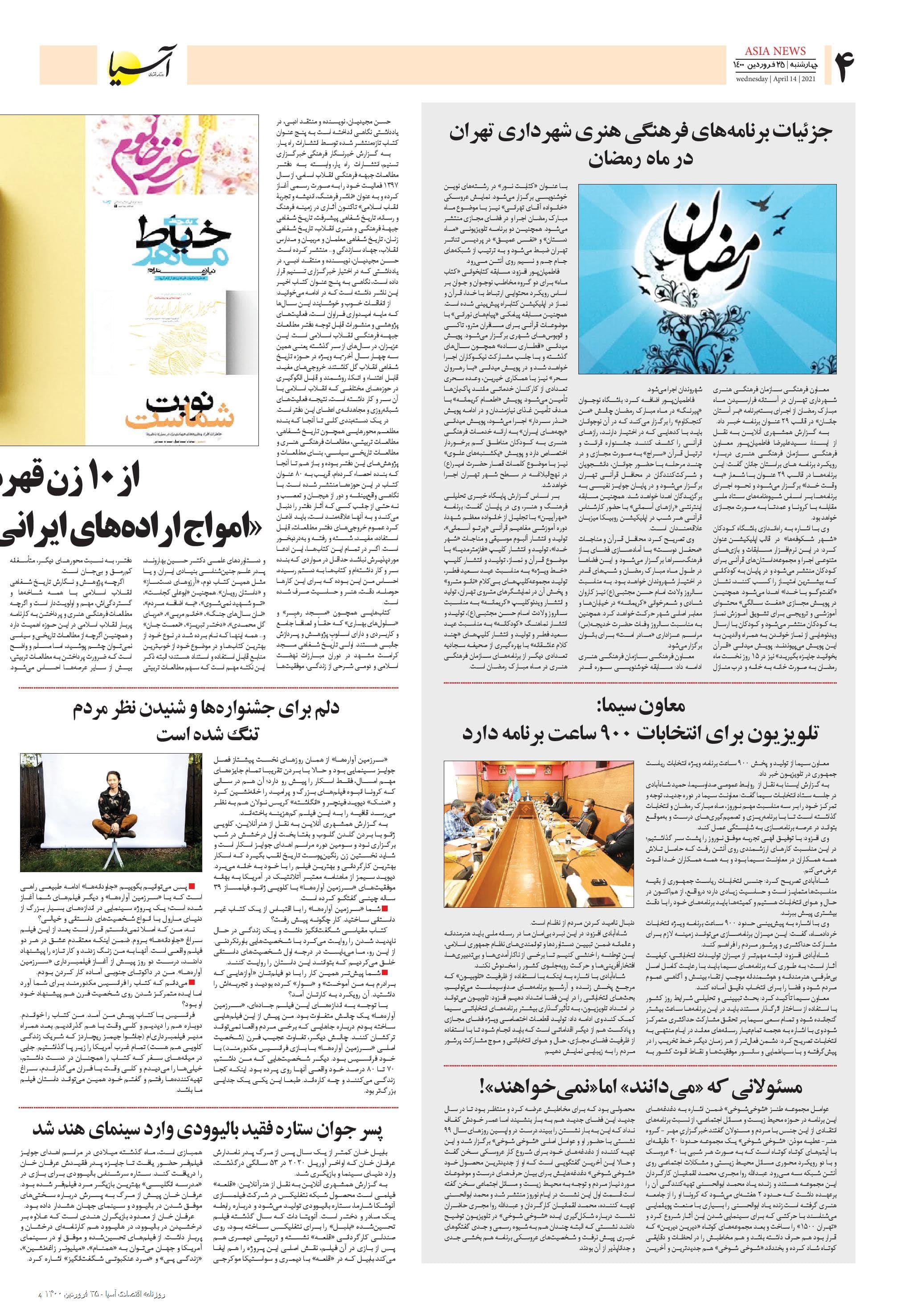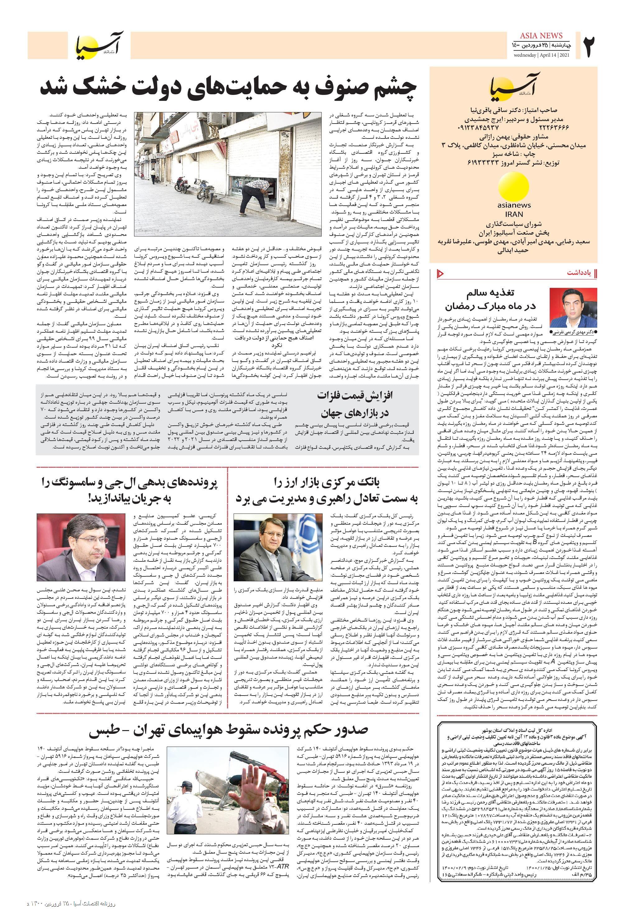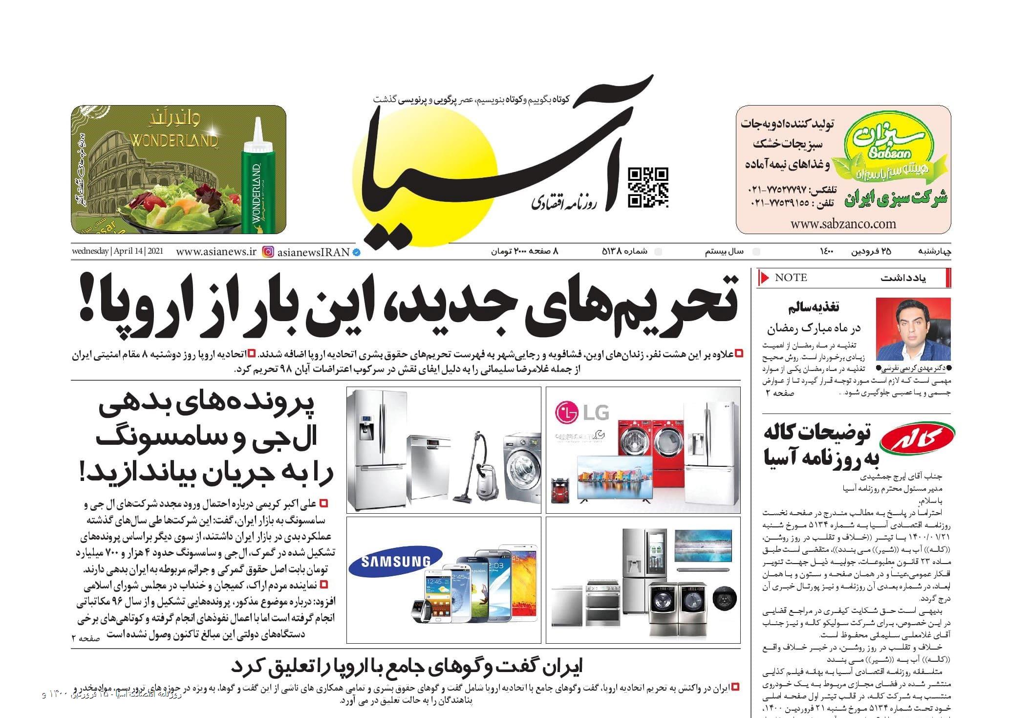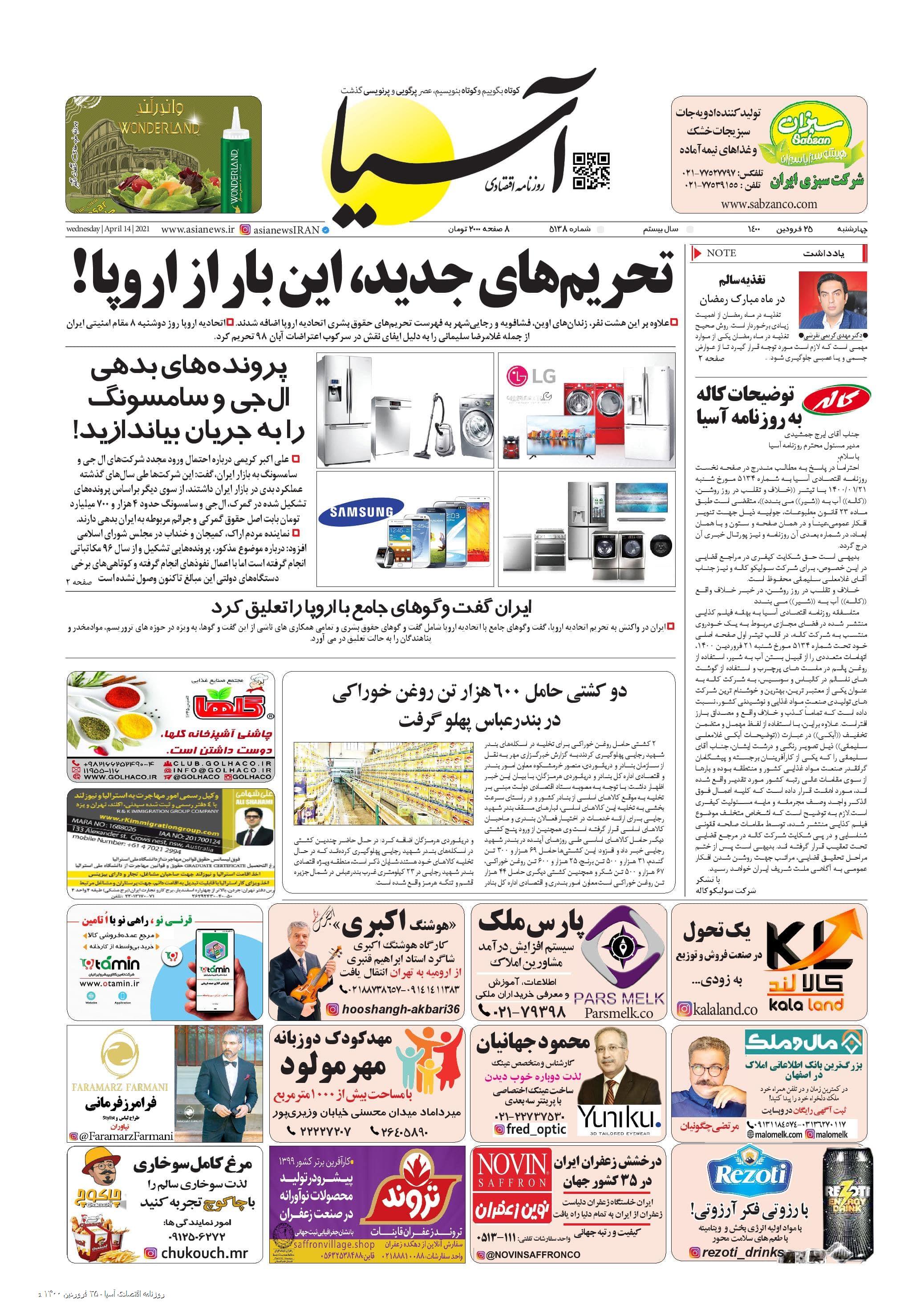 روزنامه اقتصادی آسیا - ۲۵ فروردین ۱۴۰۰ ۲۵ فروردین ۱۴۰۰ https://www.asianewsiran.com/u/blq آسیانیوز ایران هیچگونه مسولیتی در قبال نظرات کاربران ندارد. میانگین امتیاز کاربران: 0.0 (0 رای) 12345 امتیاز 12345 برای امتیاز باید عدد وارد کنید ایمیل را وارد کنید ایمیل صحیح نیست ایمیل نمایش داده شود. تعداد کاراکتر باقیمانده: 1000 نظر خود را وارد کنید بازخوانی بازخوانی پس از انتشار این نظر، به من اطلاع داده شود. ارسال توجه : نظرات بیان شده در یادداشتهایی که منتشر میکنیم، بیانگر عقیده نگارنده آن است و لزوماً دیدگاه مدیران وبسایت آسیانیوز و آسیانیوز ایران نمیباشد. سردبیر