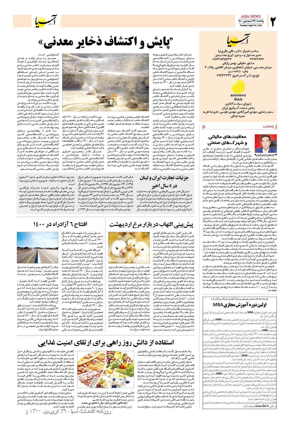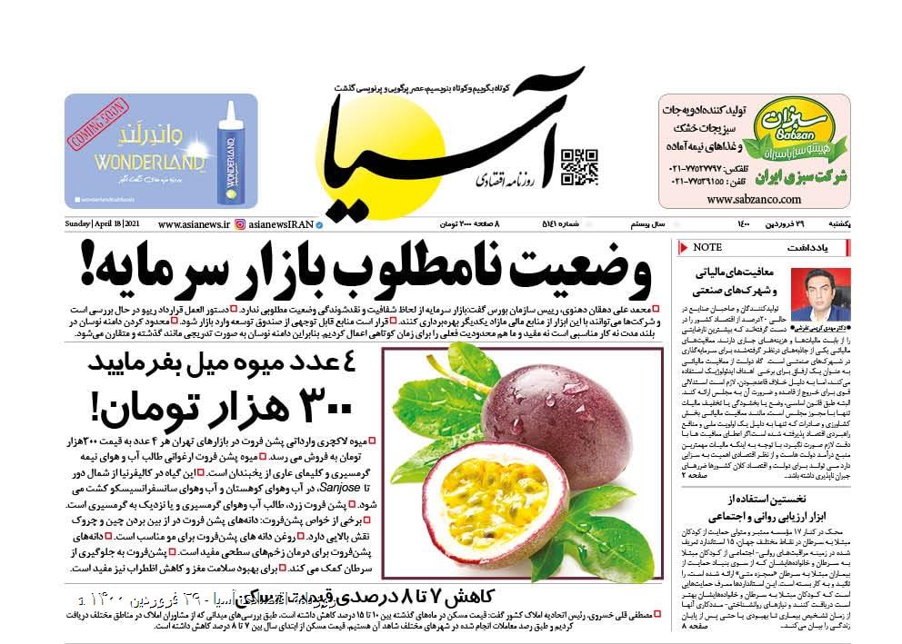 روزنامه اقتصادی آسیا - ۲۹ فروردین ۱۴۰۰ ۲۸ فروردین ۱۴۰۰ https://www.asianewsiran.com/u/bwu آسیانیوز ایران هیچگونه مسولیتی در قبال نظرات کاربران ندارد. میانگین امتیاز کاربران: 0.0 (0 رای) 12345 امتیاز 12345 برای امتیاز باید عدد وارد کنید ایمیل را وارد کنید ایمیل صحیح نیست ایمیل نمایش داده شود. تعداد کاراکتر باقیمانده: 1000 نظر خود را وارد کنید بازخوانی بازخوانی پس از انتشار این نظر، به من اطلاع داده شود. ارسال توجه : نظرات بیان شده در یادداشتهایی که منتشر میکنیم، بیانگر عقیده نگارنده آن است و لزوماً دیدگاه مدیران وبسایت آسیانیوز و آسیانیوز ایران نمیباشد. سردبیر