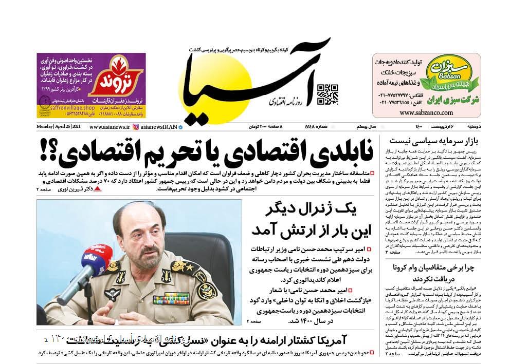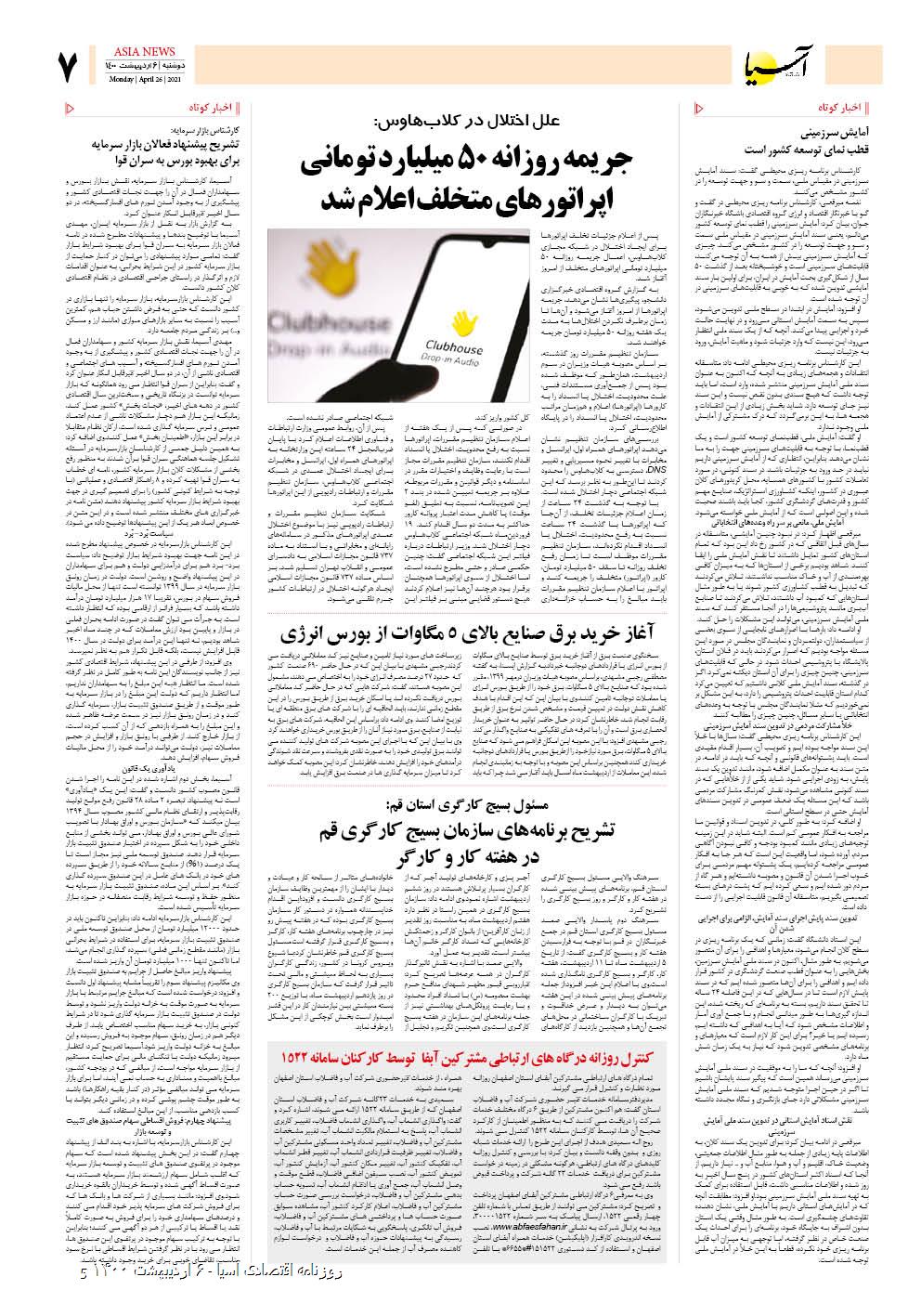 روزنامه اقتصادی آسیا - ۶ اردیبهشت ۱۴۰۰ ۵ اردیبهشت ۱۴۰۰ https://www.asianewsiran.com/u/bi1 آسیانیوز ایران هیچگونه مسولیتی در قبال نظرات کاربران ندارد. میانگین امتیاز کاربران: 0.0 (0 رای) 12345 امتیاز 12345 برای امتیاز باید عدد وارد کنید ایمیل را وارد کنید ایمیل صحیح نیست ایمیل نمایش داده شود. تعداد کاراکتر باقیمانده: 1000 نظر خود را وارد کنید بازخوانی بازخوانی پس از انتشار این نظر، به من اطلاع داده شود. ارسال توجه : نظرات بیان شده در یادداشتهایی که منتشر میکنیم، بیانگر عقیده نگارنده آن است و لزوماً دیدگاه مدیران وبسایت آسیانیوز و آسیانیوز ایران نمیباشد. سردبیر