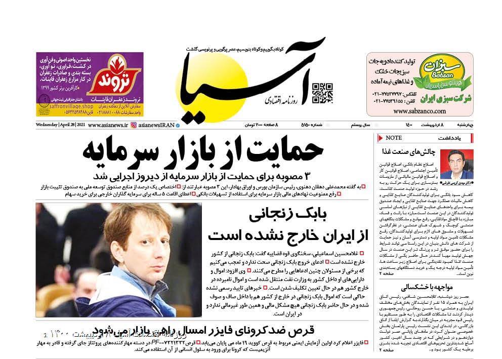 روزنامه اقتصادی آسیا - ۸ اردیبهشت ۱۴۰۰ ۷ اردیبهشت ۱۴۰۰ https://www.asianewsiran.com/u/cth آسیانیوز ایران هیچگونه مسولیتی در قبال نظرات کاربران ندارد. میانگین امتیاز کاربران: 0.0 (0 رای) 12345 امتیاز 12345 برای امتیاز باید عدد وارد کنید ایمیل را وارد کنید ایمیل صحیح نیست ایمیل نمایش داده شود. تعداد کاراکتر باقیمانده: 1000 نظر خود را وارد کنید بازخوانی بازخوانی پس از انتشار این نظر، به من اطلاع داده شود. ارسال توجه : نظرات بیان شده در یادداشتهایی که منتشر میکنیم، بیانگر عقیده نگارنده آن است و لزوماً دیدگاه مدیران وبسایت آسیانیوز و آسیانیوز ایران نمیباشد. سردبیر