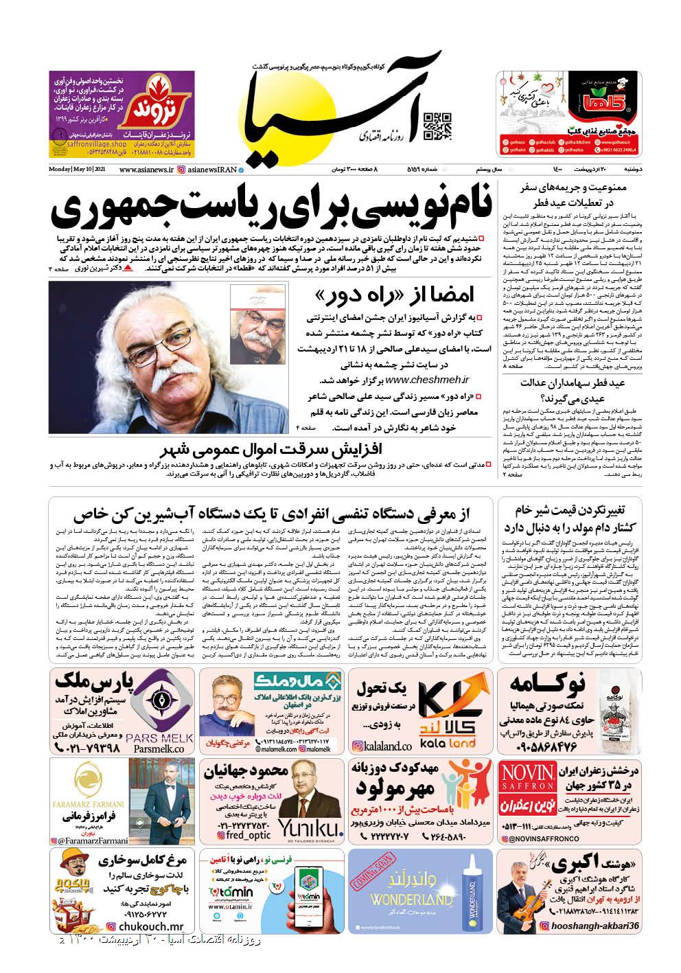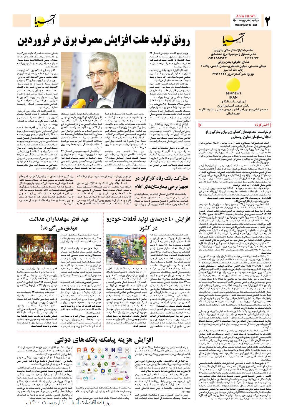 روزنامه اقتصادی آسیا - ۲۰ اردیبهشت ۱۴۰۰ ۱۹ اردیبهشت ۱۴۰۰ https://www.asianewsiran.com/u/bzr آسیانیوز ایران هیچگونه مسولیتی در قبال نظرات کاربران ندارد. میانگین امتیاز کاربران: 0.0 (0 رای) 12345 امتیاز 12345 برای امتیاز باید عدد وارد کنید ایمیل را وارد کنید ایمیل صحیح نیست ایمیل نمایش داده شود. تعداد کاراکتر باقیمانده: 1000 نظر خود را وارد کنید بازخوانی بازخوانی پس از انتشار این نظر، به من اطلاع داده شود. ارسال توجه : نظرات بیان شده در یادداشتهایی که منتشر میکنیم، بیانگر عقیده نگارنده آن است و لزوماً دیدگاه مدیران وبسایت آسیانیوز و آسیانیوز ایران نمیباشد. سردبیر
