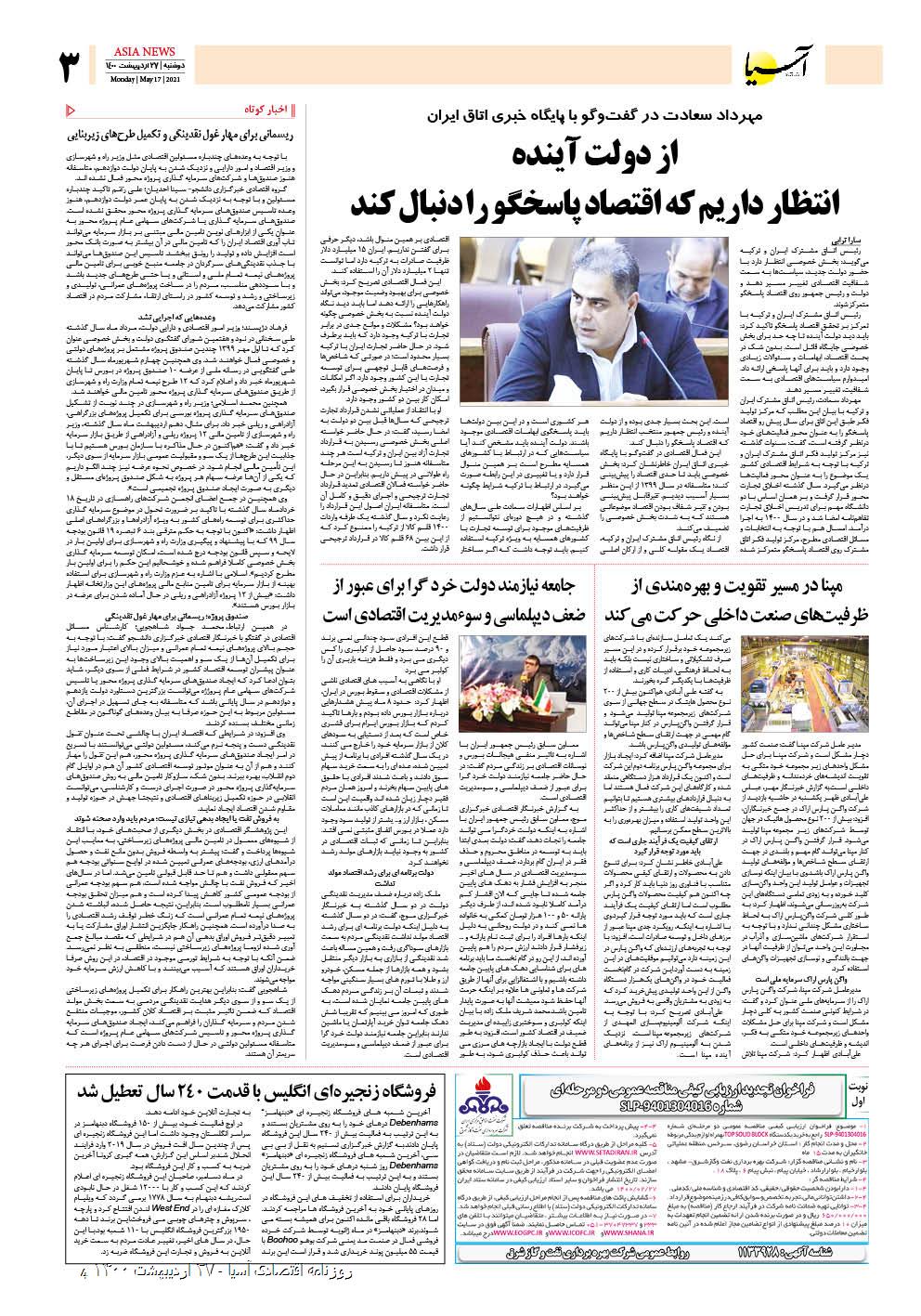 روزنامه اقتصادی آسیا - ۲۷ اردیبهشت ۱۴۰۰