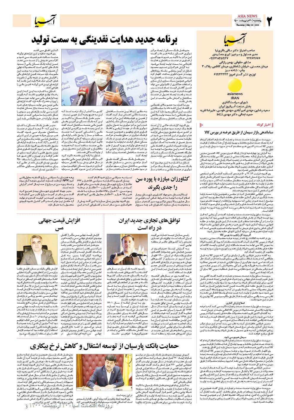روزنامه اقتصادی آسیا - ۳۰ اردیبهشت ۱۴۰۰ ۲۹ اردیبهشت ۱۴۰۰ https://www.asianewsiran.com/u/bzt آسیانیوز ایران هیچگونه مسولیتی در قبال نظرات کاربران ندارد. میانگین امتیاز کاربران: 0.0 (0 رای) 12345 امتیاز 12345 برای امتیاز باید عدد وارد کنید ایمیل را وارد کنید ایمیل صحیح نیست ایمیل نمایش داده شود. تعداد کاراکتر باقیمانده: 1000 نظر خود را وارد کنید بازخوانی بازخوانی پس از انتشار این نظر، به من اطلاع داده شود. ارسال توجه : نظرات بیان شده در یادداشتهایی که منتشر میکنیم، بیانگر عقیده نگارنده آن است و لزوماً دیدگاه مدیران وبسایت آسیانیوز و آسیانیوز ایران نمیباشد. سردبیر