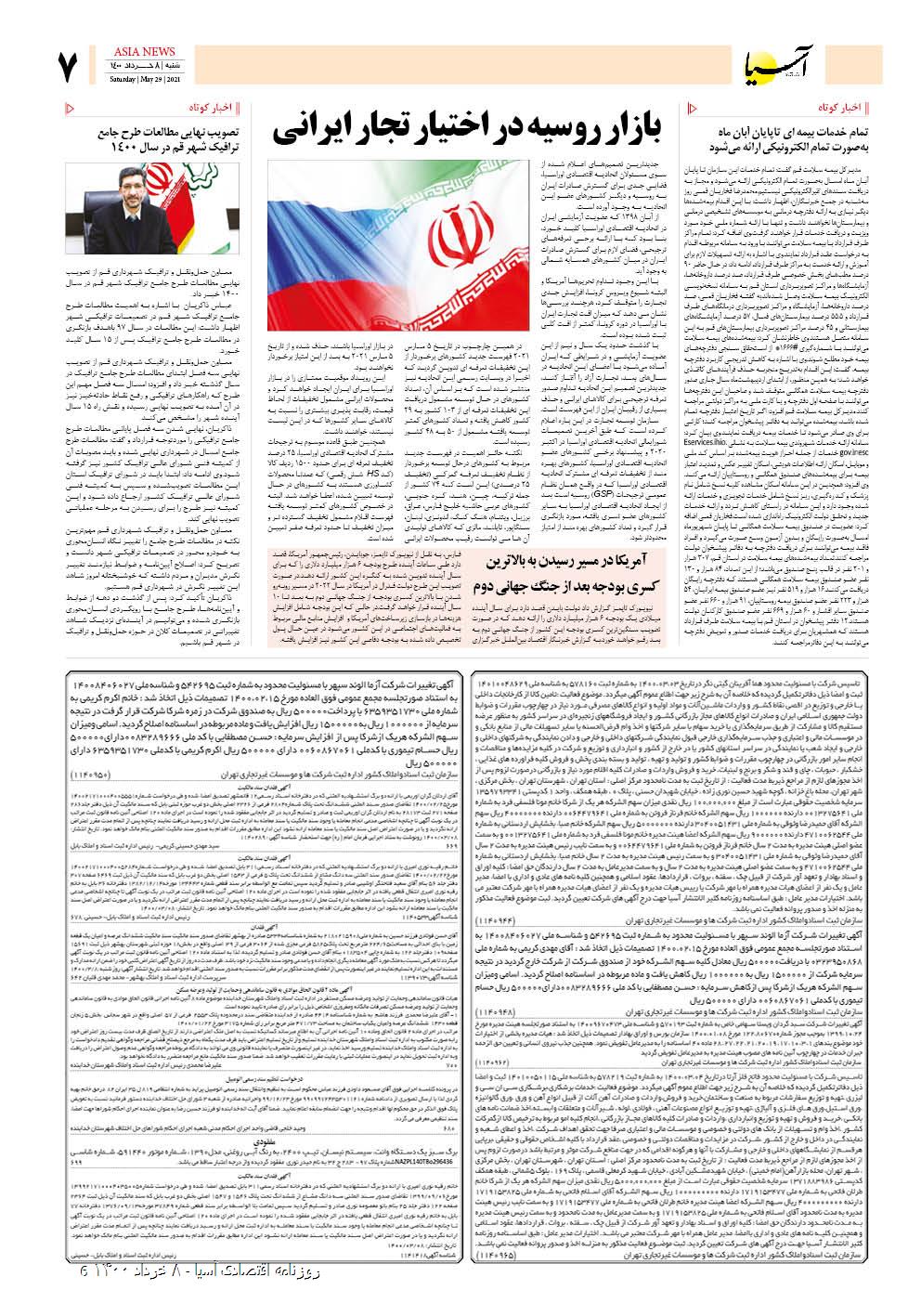 روزنامه اقتصادی آسیا - ۸ خرداد ۱۴۰۰ ۷ خرداد ۱۴۰۰ https://www.asianewsiran.com/u/c52 آسیانیوز ایران هیچگونه مسولیتی در قبال نظرات کاربران ندارد. میانگین امتیاز کاربران: 0.0 (0 رای) 12345 امتیاز 12345 برای امتیاز باید عدد وارد کنید ایمیل را وارد کنید ایمیل صحیح نیست ایمیل نمایش داده شود. تعداد کاراکتر باقیمانده: 1000 نظر خود را وارد کنید بازخوانی بازخوانی پس از انتشار این نظر، به من اطلاع داده شود. ارسال توجه : نظرات بیان شده در یادداشتهایی که منتشر میکنیم، بیانگر عقیده نگارنده آن است و لزوماً دیدگاه مدیران وبسایت آسیانیوز و آسیانیوز ایران نمیباشد. سردبیر