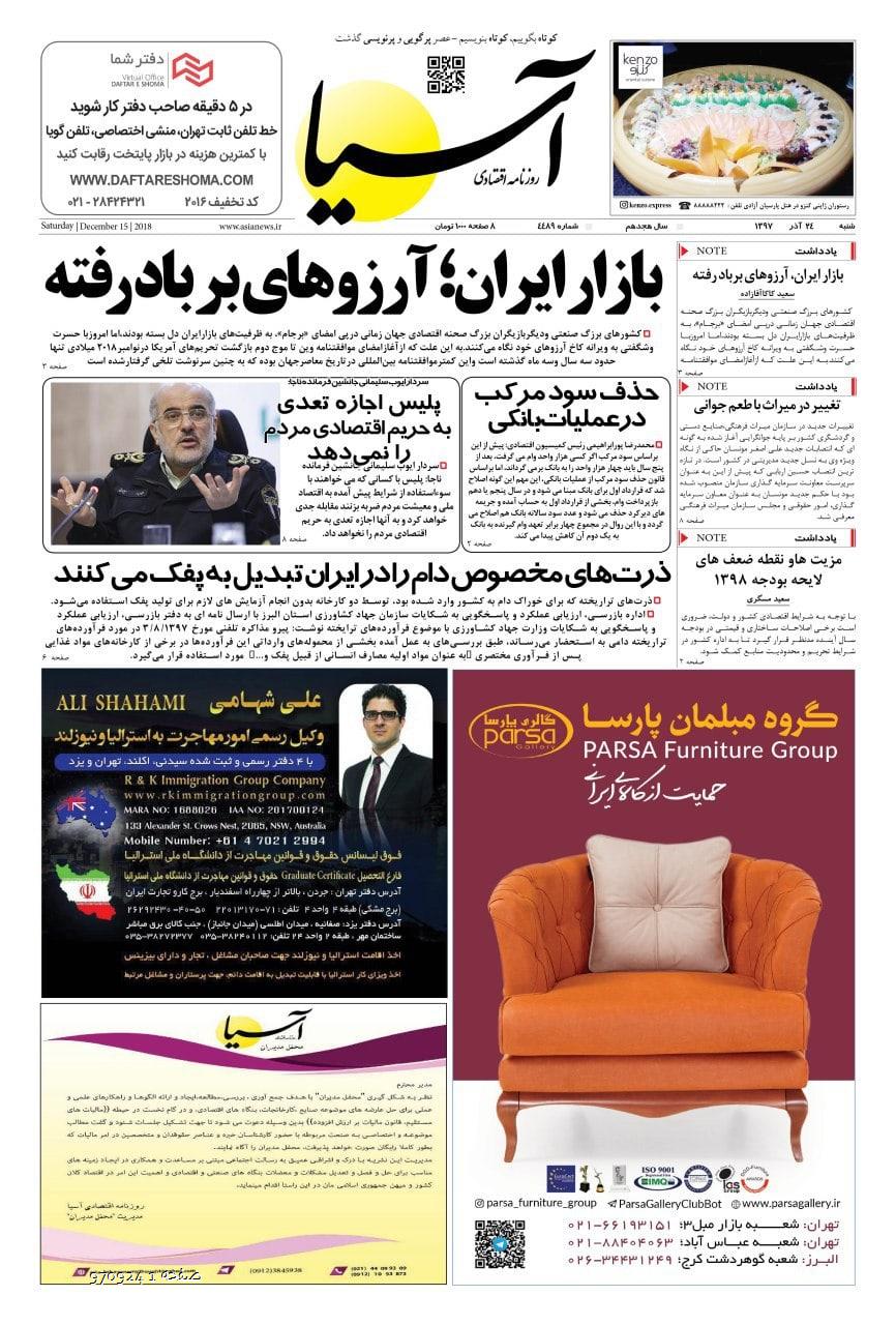 روزنامه اقتصادی آسیا - 24 آذر 1397 ۲۴ آذر ۱۳۹۷ https://www.asianewsiran.com/u/c1e آسیانیوز ایران هیچگونه مسولیتی در قبال نظرات کاربران ندارد. میانگین امتیاز کاربران: 0.0 (0 رای) 12345 امتیاز 12345 برای امتیاز باید عدد وارد کنید ایمیل را وارد کنید ایمیل صحیح نیست ایمیل نمایش داده شود. تعداد کاراکتر باقیمانده: 1000 نظر خود را وارد کنید بازخوانی بازخوانی پس از انتشار این نظر، به من اطلاع داده شود. ارسال توجه : نظرات بیان شده در یادداشتهایی که منتشر میکنیم، بیانگر عقیده نگارنده آن است و لزوماً دیدگاه مدیران وبسایت آسیانیوز و آسیانیوز ایران نمیباشد. سردبیر