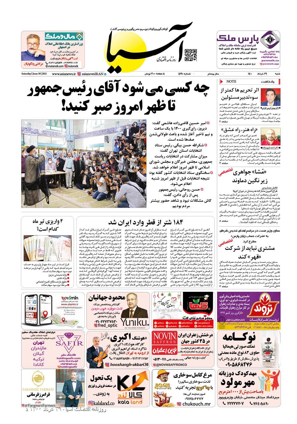 روزنامه اقتصادی آسیا - ۲۹ خرداد ۱۴۰۰ ۲۸ خرداد ۱۴۰۰ https://www.asianewsiran.com/u/ccm آسیانیوز ایران هیچگونه مسولیتی در قبال نظرات کاربران ندارد. میانگین امتیاز کاربران: 0.0 (0 رای) 12345 امتیاز 12345 برای امتیاز باید عدد وارد کنید ایمیل را وارد کنید ایمیل صحیح نیست ایمیل نمایش داده شود. تعداد کاراکتر باقیمانده: 1000 نظر خود را وارد کنید بازخوانی بازخوانی پس از انتشار این نظر، به من اطلاع داده شود. ارسال توجه : نظرات بیان شده در یادداشتهایی که منتشر میکنیم، بیانگر عقیده نگارنده آن است و لزوماً دیدگاه مدیران وبسایت آسیانیوز و آسیانیوز ایران نمیباشد. سردبیر