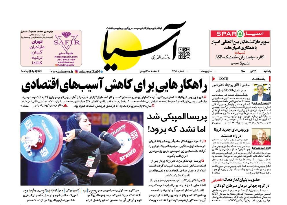 روزنامه اقتصادی آسیا - ۱۳ تیر ۱۴۰۰
