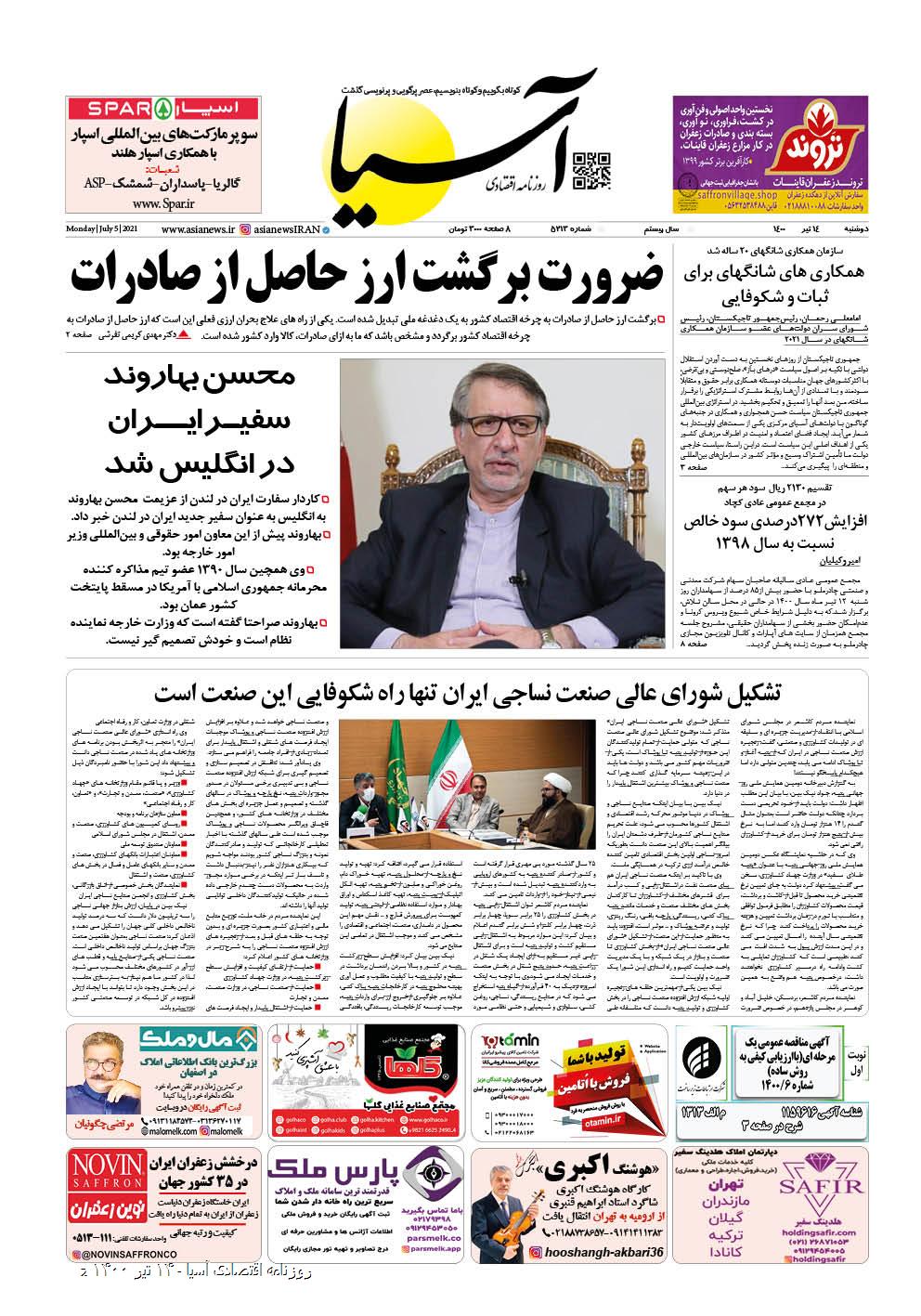 روزنامه اقتصادی آسیا - ۱۴ تیر ۱۴۰۰ ۱۳ تیر ۱۴۰۰ https://www.asianewsiran.com/u/brs آسیانیوز ایران هیچگونه مسولیتی در قبال نظرات کاربران ندارد. میانگین امتیاز کاربران: 0.0 (0 رای) 12345 امتیاز 12345 برای امتیاز باید عدد وارد کنید ایمیل را وارد کنید ایمیل صحیح نیست ایمیل نمایش داده شود. تعداد کاراکتر باقیمانده: 1000 نظر خود را وارد کنید بازخوانی بازخوانی پس از انتشار این نظر، به من اطلاع داده شود. ارسال توجه : نظرات بیان شده در یادداشتهایی که منتشر میکنیم، بیانگر عقیده نگارنده آن است و لزوماً دیدگاه مدیران وبسایت آسیانیوز و آسیانیوز ایران نمیباشد. سردبیر