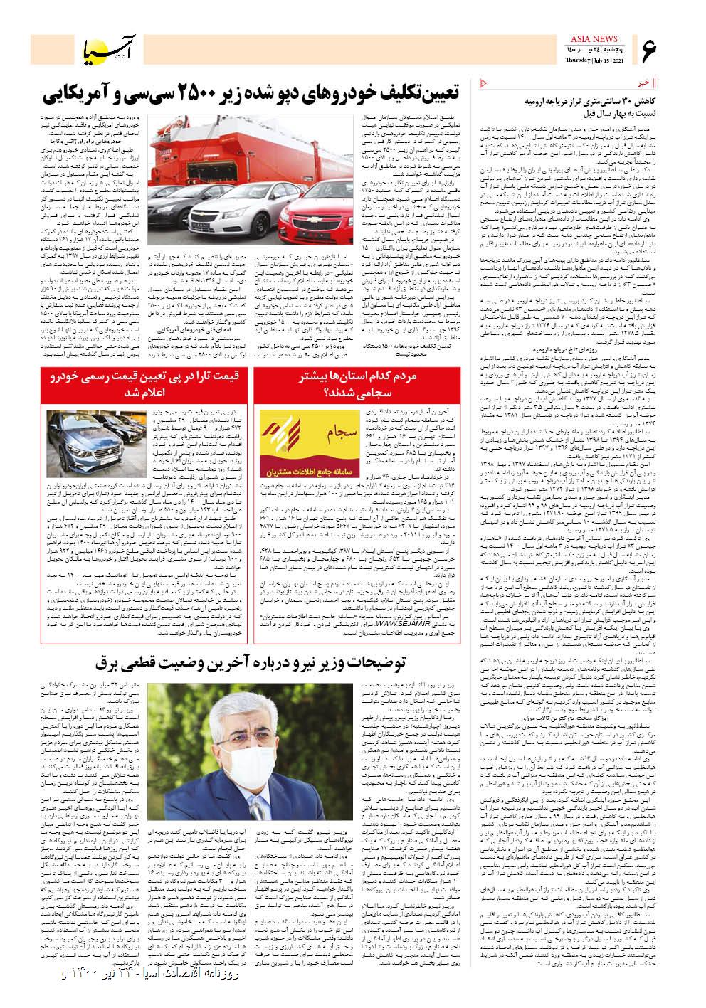 روزنامه اقتصادی آسیا - ۲۴ تیر ۱۴۰۰ ۲۴ تیر ۱۴۰۰ https://www.asianewsiran.com/u/cc1 آسیانیوز ایران هیچگونه مسولیتی در قبال نظرات کاربران ندارد. میانگین امتیاز کاربران: 0.0 (0 رای) 12345 امتیاز 12345 برای امتیاز باید عدد وارد کنید ایمیل را وارد کنید ایمیل صحیح نیست ایمیل نمایش داده شود. تعداد کاراکتر باقیمانده: 1000 نظر خود را وارد کنید بازخوانی بازخوانی پس از انتشار این نظر، به من اطلاع داده شود. ارسال توجه : نظرات بیان شده در یادداشتهایی که منتشر میکنیم، بیانگر عقیده نگارنده آن است و لزوماً دیدگاه مدیران وبسایت آسیانیوز و آسیانیوز ایران نمیباشد. سردبیر