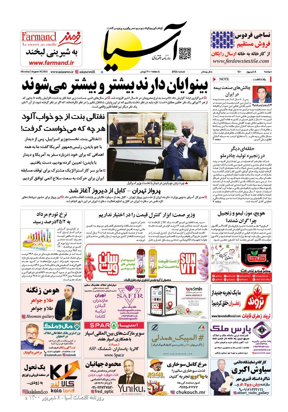روزنامه اقتصادی آسیا - ۸ شهریور ۱۴۰۰ ۷ شهریور ۱۴۰۰ https://www.asianewsiran.com/u/cck آسیانیوز ایران هیچگونه مسولیتی در قبال نظرات کاربران ندارد. میانگین امتیاز کاربران: 0.0 (0 رای) 12345 امتیاز 12345 برای امتیاز باید عدد وارد کنید ایمیل را وارد کنید ایمیل صحیح نیست ایمیل نمایش داده شود. تعداد کاراکتر باقیمانده: 1000 نظر خود را وارد کنید بازخوانی بازخوانی پس از انتشار این نظر، به من اطلاع داده شود. ارسال توجه : نظرات بیان شده در یادداشتهایی که منتشر میکنیم، بیانگر عقیده نگارنده آن است و لزوماً دیدگاه مدیران وبسایت آسیانیوز و آسیانیوز ایران نمیباشد. سردبیر