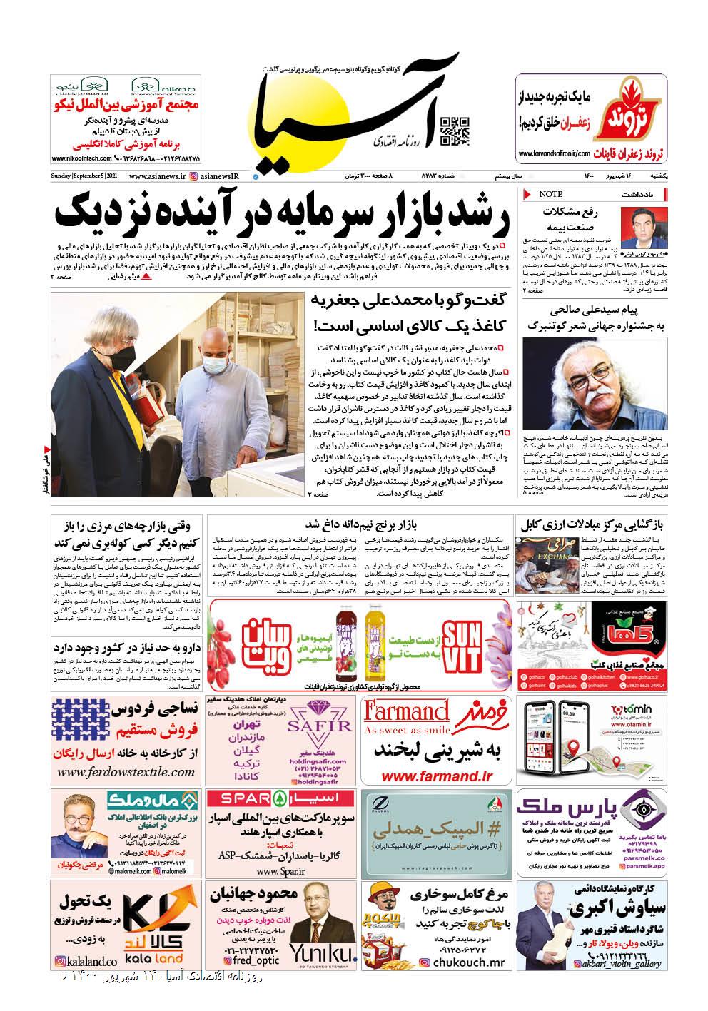 روزنامه اقتصادی آسیا - ۱۴ شهریور ۱۴۰۰ ۱۳ شهریور ۱۴۰۰ https://www.asianewsiran.com/u/bt1 آسیانیوز ایران هیچگونه مسولیتی در قبال نظرات کاربران ندارد. میانگین امتیاز کاربران: 0.0 (0 رای) 12345 امتیاز 12345 برای امتیاز باید عدد وارد کنید ایمیل را وارد کنید ایمیل صحیح نیست ایمیل نمایش داده شود. تعداد کاراکتر باقیمانده: 1000 نظر خود را وارد کنید بازخوانی بازخوانی پس از انتشار این نظر، به من اطلاع داده شود. ارسال توجه : نظرات بیان شده در یادداشتهایی که منتشر میکنیم، بیانگر عقیده نگارنده آن است و لزوماً دیدگاه مدیران وبسایت آسیانیوز و آسیانیوز ایران نمیباشد. سردبیر