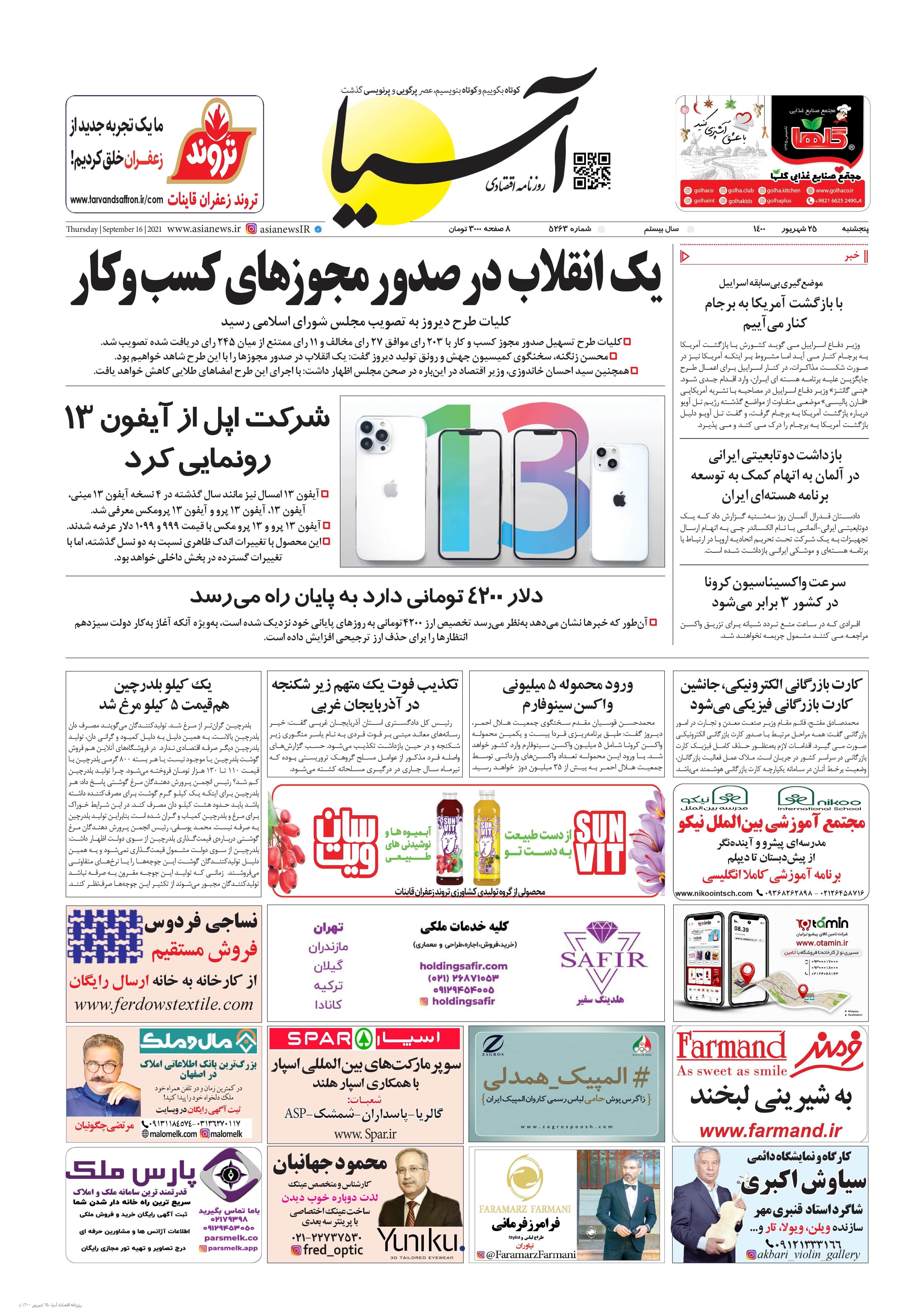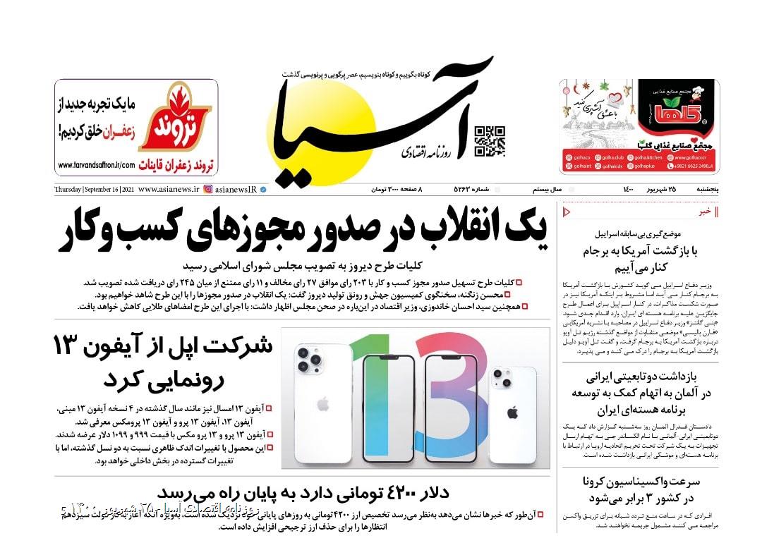 روزنامه اقتصادی آسیا - ۲۵ شهریور ۱۴۰۰ ۲۴ شهریور ۱۴۰۰ https://www.asianewsiran.com/u/bkz آسیانیوز ایران هیچگونه مسولیتی در قبال نظرات کاربران ندارد. میانگین امتیاز کاربران: 0.0 (0 رای) 12345 امتیاز 12345 برای امتیاز باید عدد وارد کنید ایمیل را وارد کنید ایمیل صحیح نیست ایمیل نمایش داده شود. تعداد کاراکتر باقیمانده: 1000 نظر خود را وارد کنید بازخوانی بازخوانی پس از انتشار این نظر، به من اطلاع داده شود. ارسال توجه : نظرات بیان شده در یادداشتهایی که منتشر میکنیم، بیانگر عقیده نگارنده آن است و لزوماً دیدگاه مدیران وبسایت آسیانیوز و آسیانیوز ایران نمیباشد. سردبیر