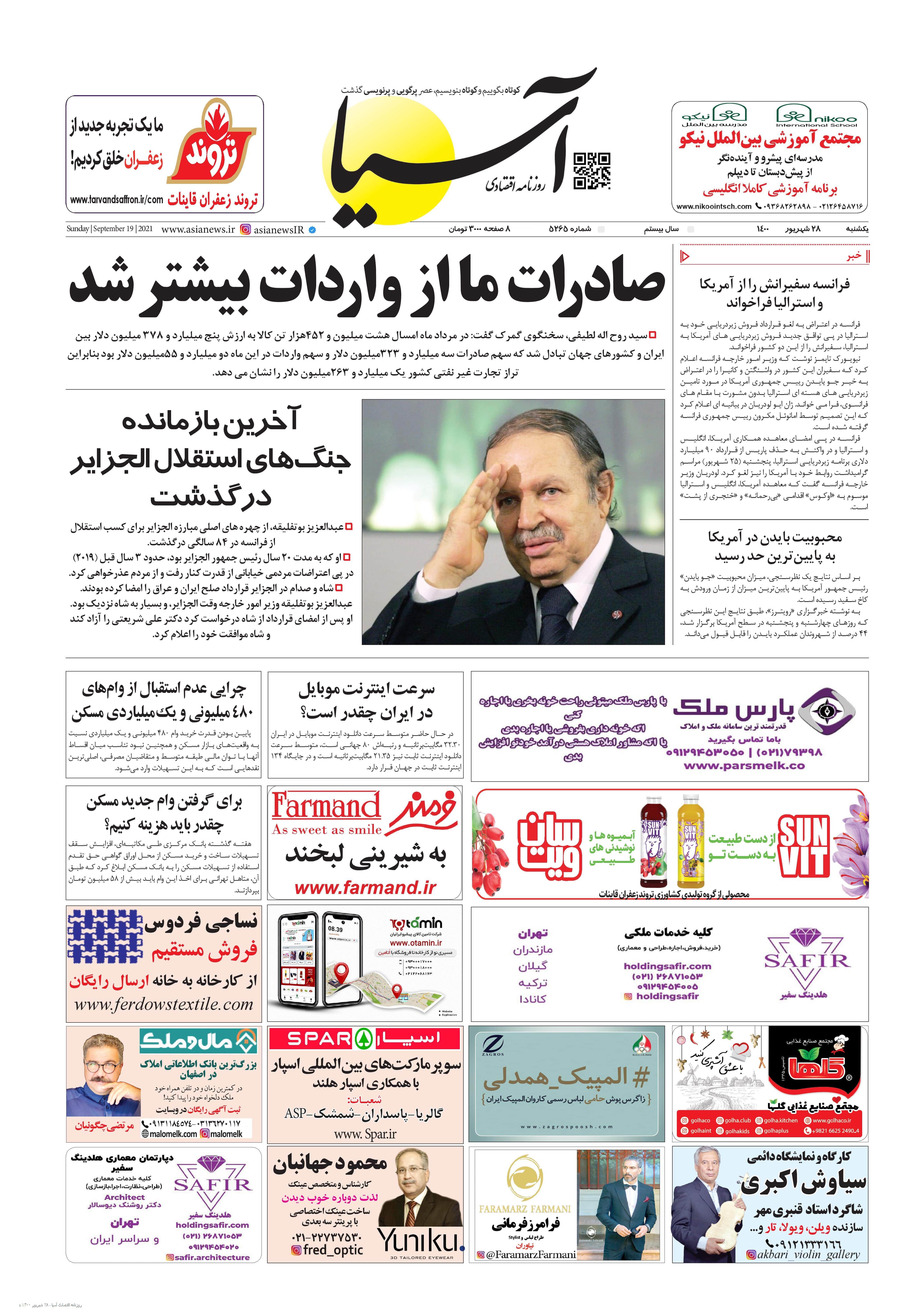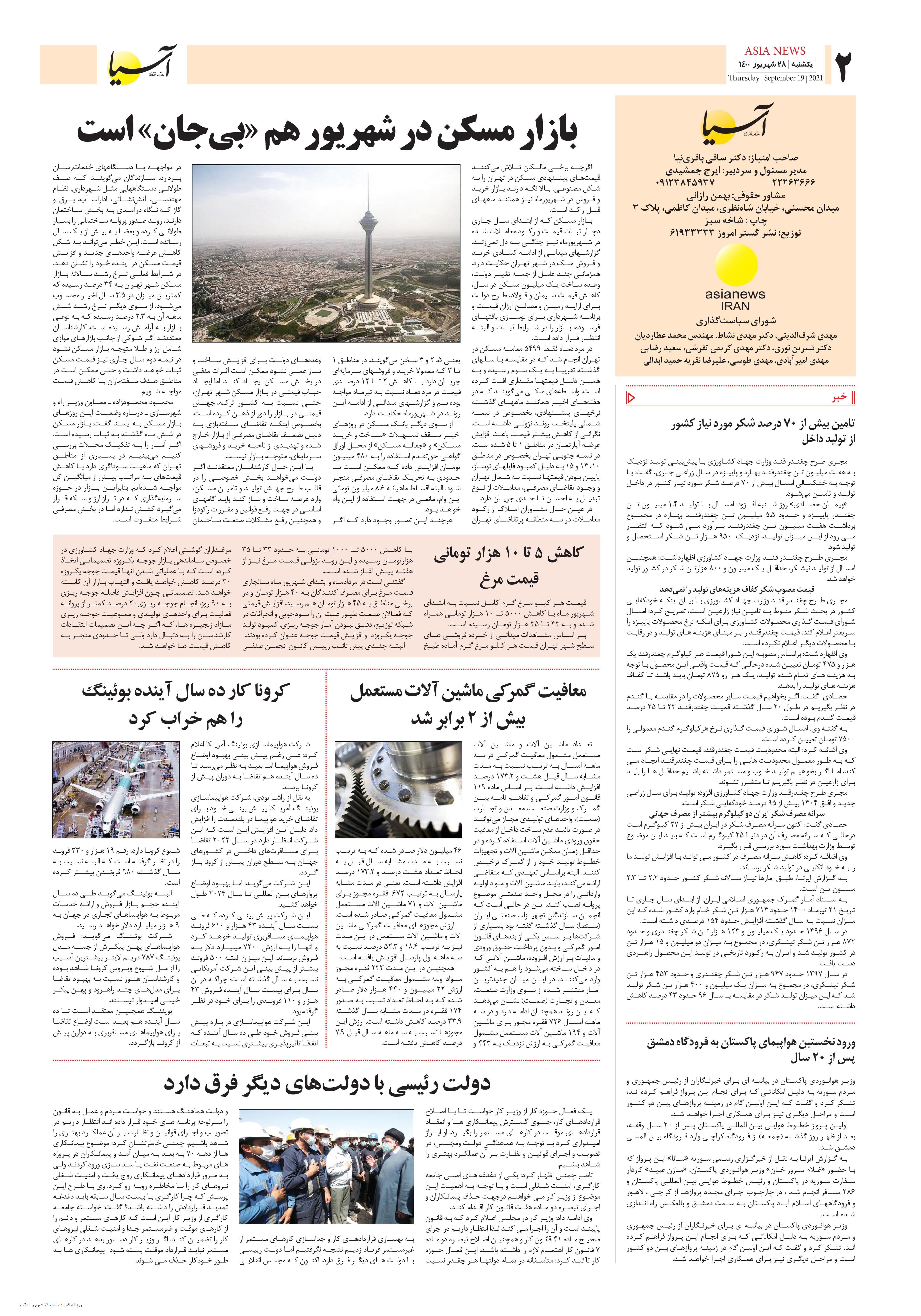 روزنامه اقتصادی آسیا - ۲۸ شهریور ۱۴۰۰ ۲۷ شهریور ۱۴۰۰ https://www.asianewsiran.com/u/ctw آسیانیوز ایران هیچگونه مسولیتی در قبال نظرات کاربران ندارد. میانگین امتیاز کاربران: 0.0 (0 رای) 12345 امتیاز 12345 برای امتیاز باید عدد وارد کنید ایمیل را وارد کنید ایمیل صحیح نیست ایمیل نمایش داده شود. تعداد کاراکتر باقیمانده: 1000 نظر خود را وارد کنید بازخوانی بازخوانی پس از انتشار این نظر، به من اطلاع داده شود. ارسال توجه : نظرات بیان شده در یادداشتهایی که منتشر میکنیم، بیانگر عقیده نگارنده آن است و لزوماً دیدگاه مدیران وبسایت آسیانیوز و آسیانیوز ایران نمیباشد. سردبیر