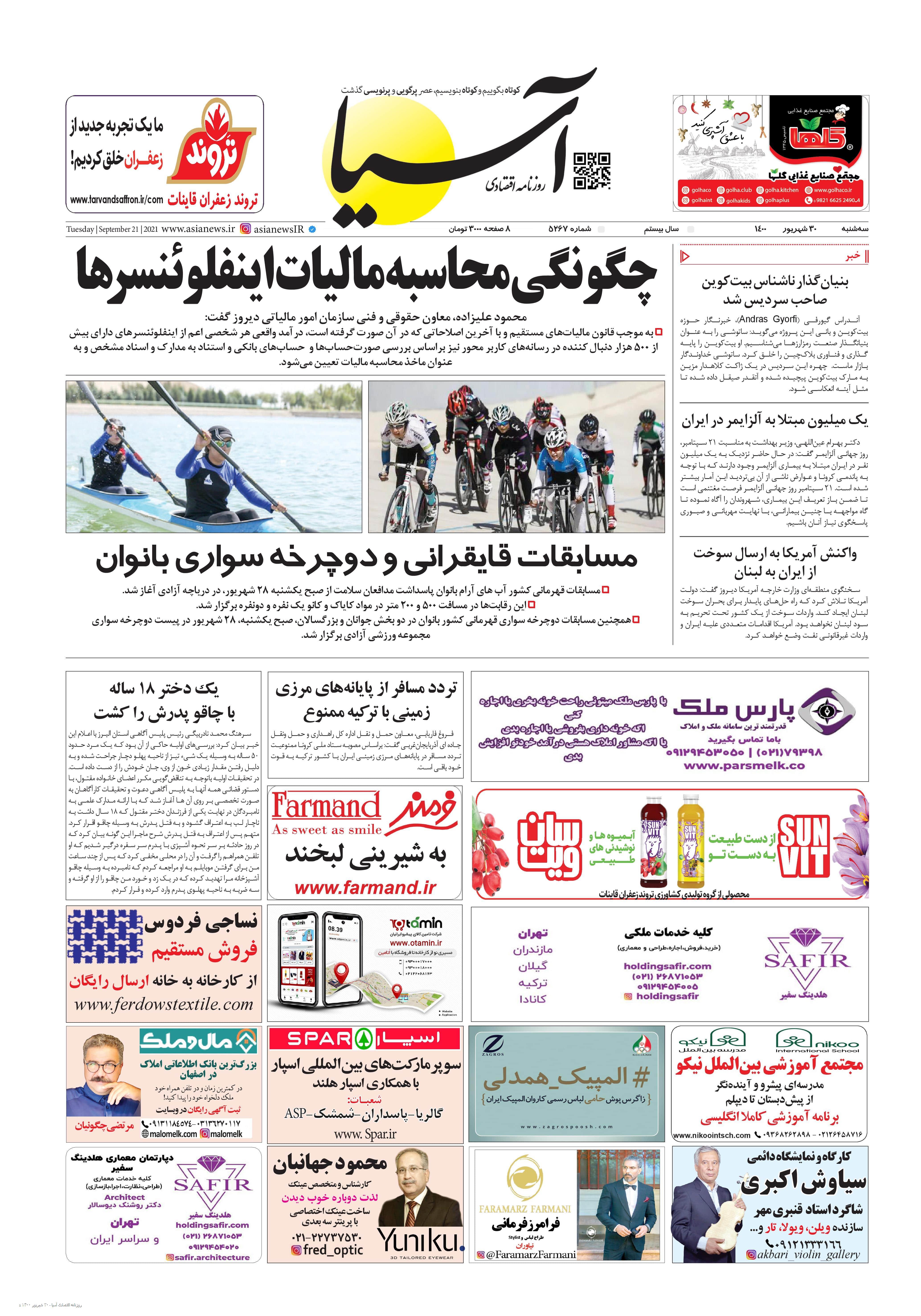 روزنامه اقتصادی آسیا - ۳۰ شهریور ۱۴۰۰ ۲۹ شهریور ۱۴۰۰ https://www.asianewsiran.com/u/bnh آسیانیوز ایران هیچگونه مسولیتی در قبال نظرات کاربران ندارد. میانگین امتیاز کاربران: 0.0 (0 رای) 12345 امتیاز 12345 برای امتیاز باید عدد وارد کنید ایمیل را وارد کنید ایمیل صحیح نیست ایمیل نمایش داده شود. تعداد کاراکتر باقیمانده: 1000 نظر خود را وارد کنید بازخوانی بازخوانی پس از انتشار این نظر، به من اطلاع داده شود. ارسال توجه : نظرات بیان شده در یادداشتهایی که منتشر میکنیم، بیانگر عقیده نگارنده آن است و لزوماً دیدگاه مدیران وبسایت آسیانیوز و آسیانیوز ایران نمیباشد. سردبیر
