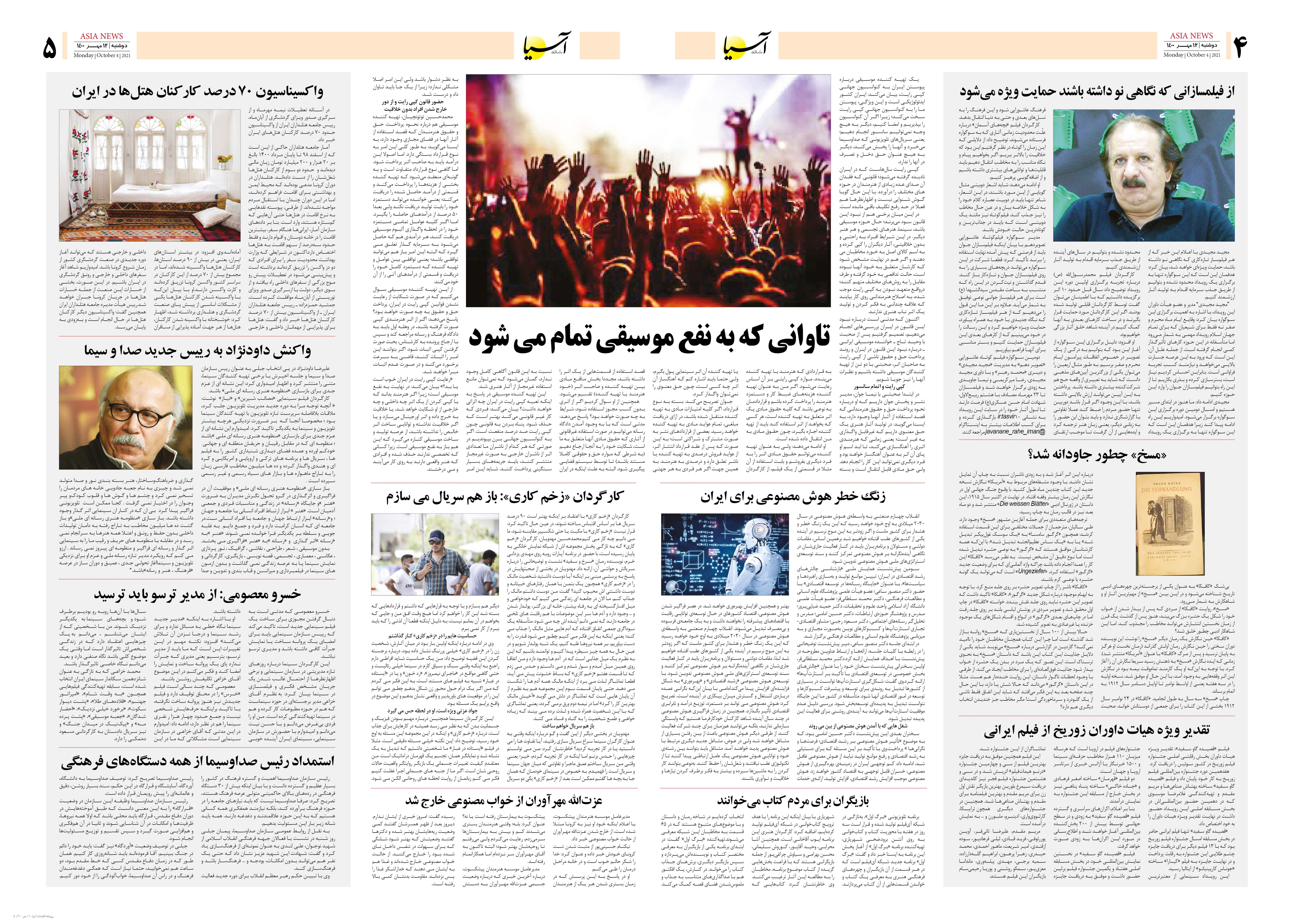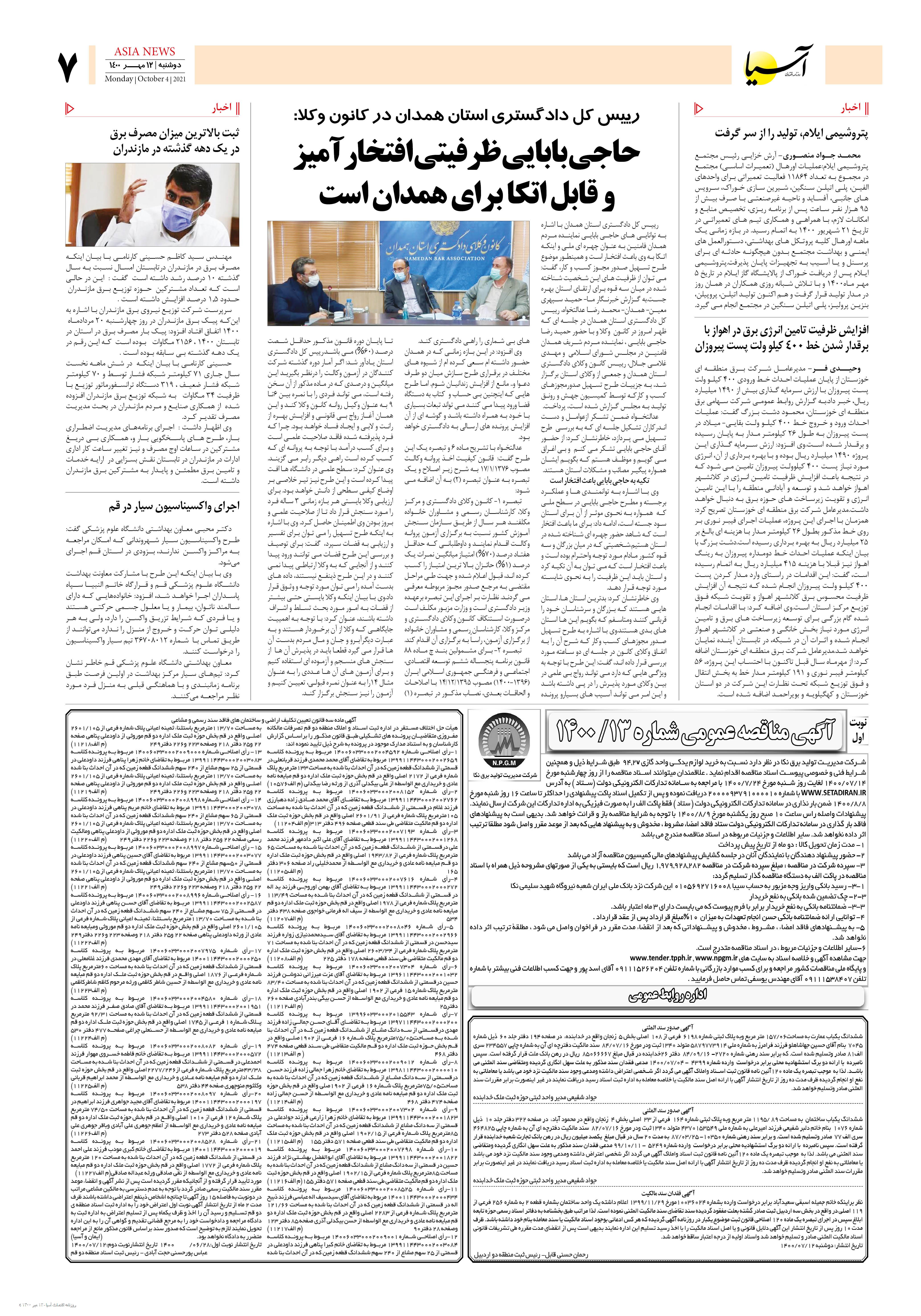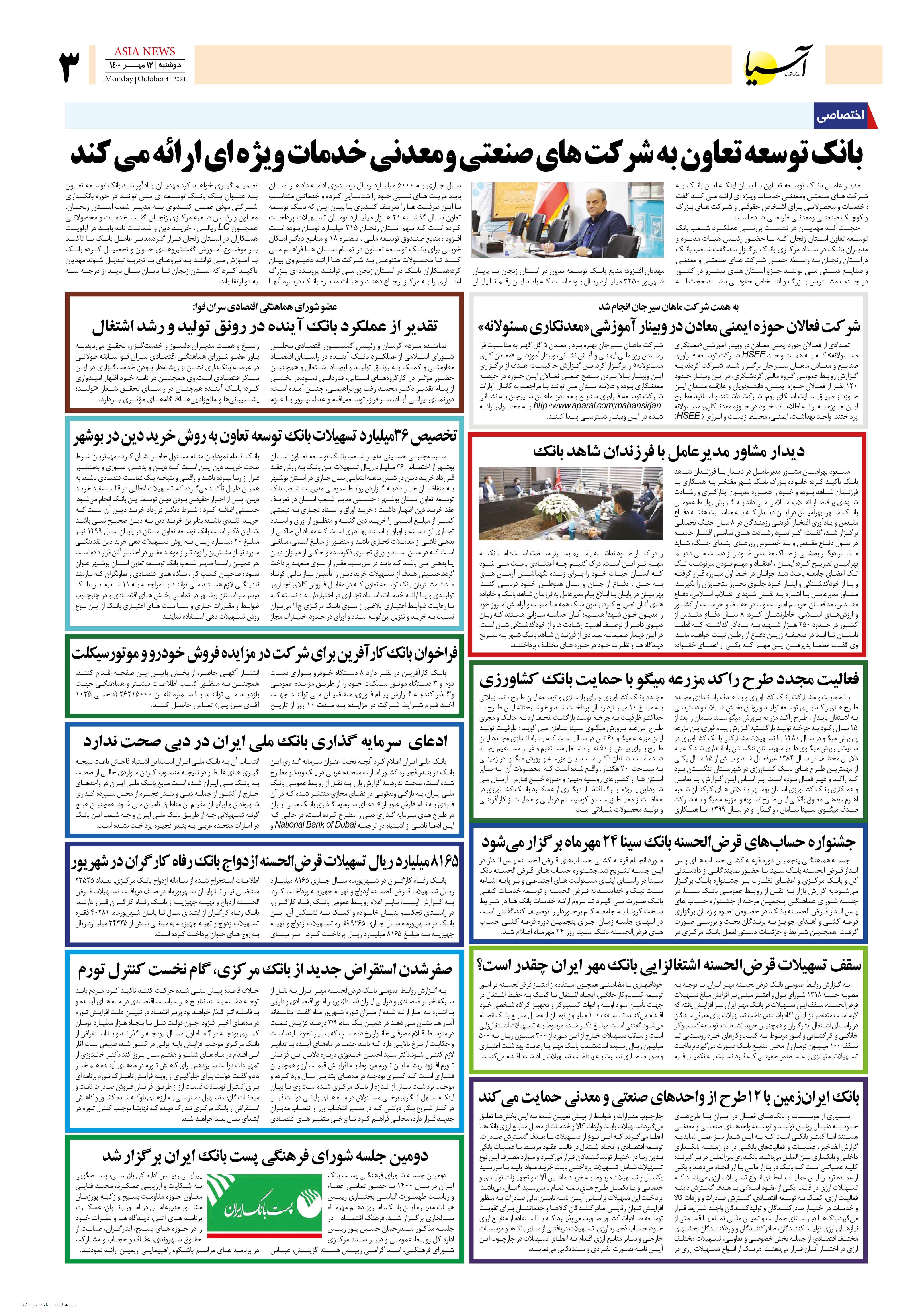 روزنامه اقتصادی آسیا - ۱۲ مهر ۱۴۰۰