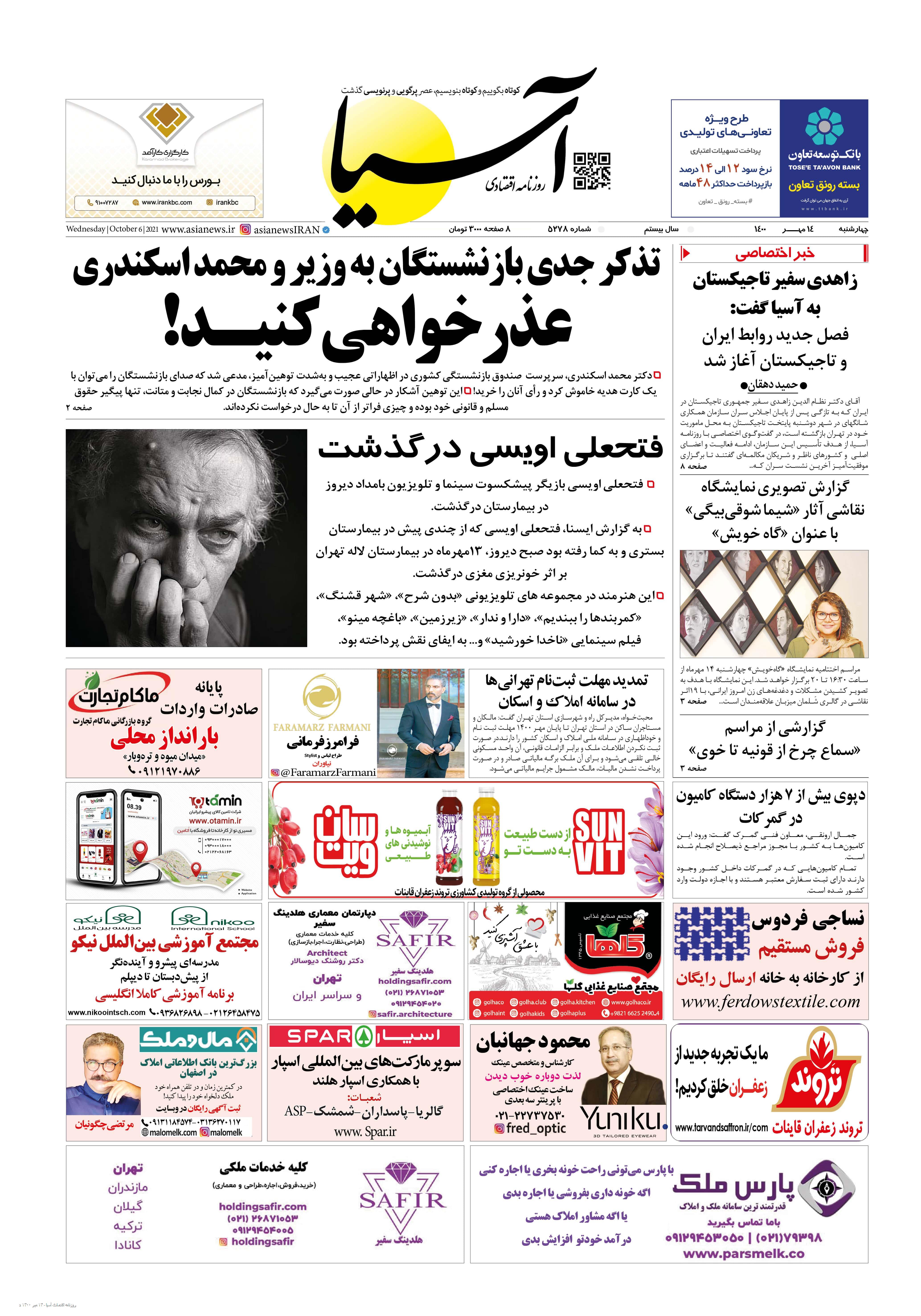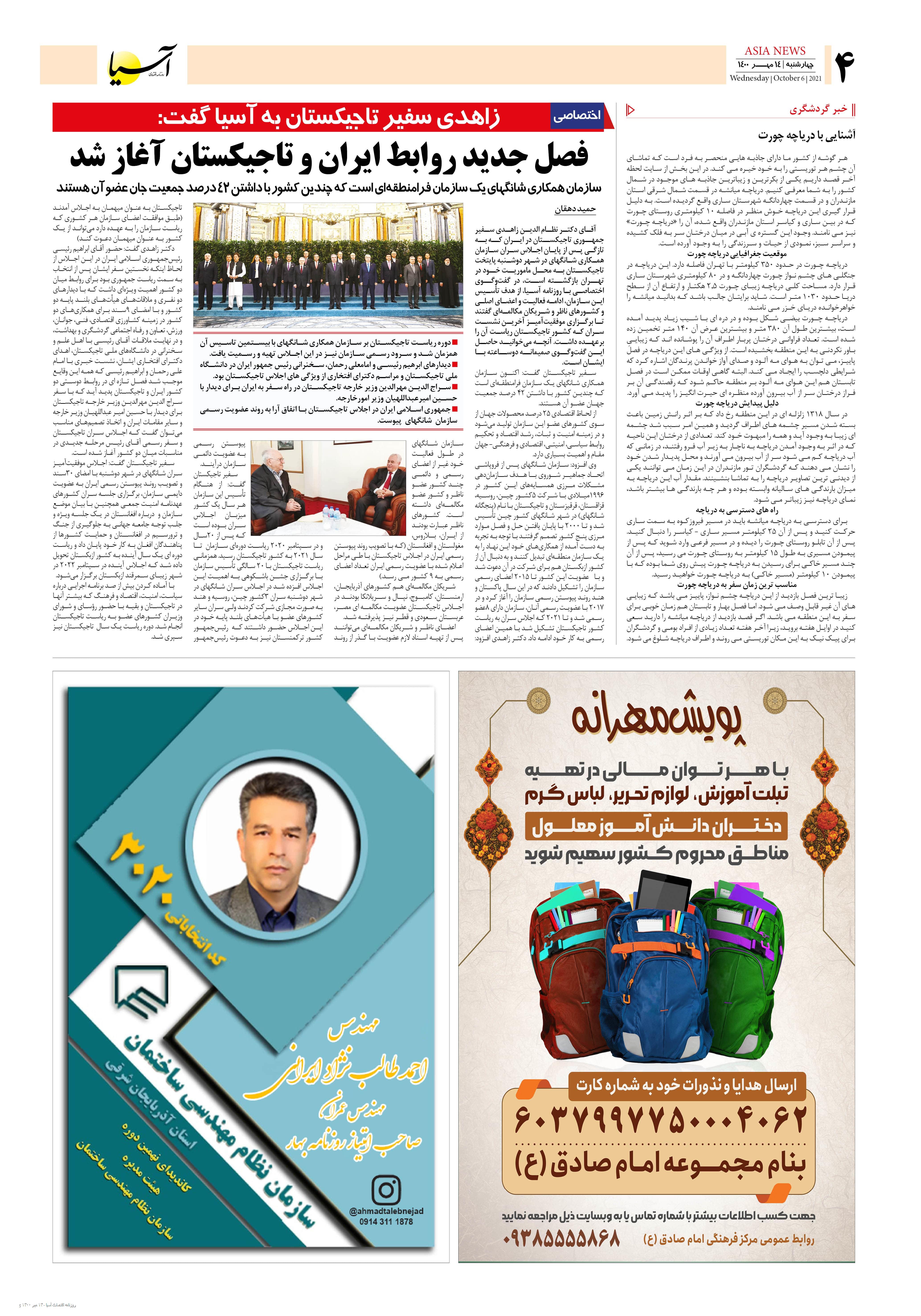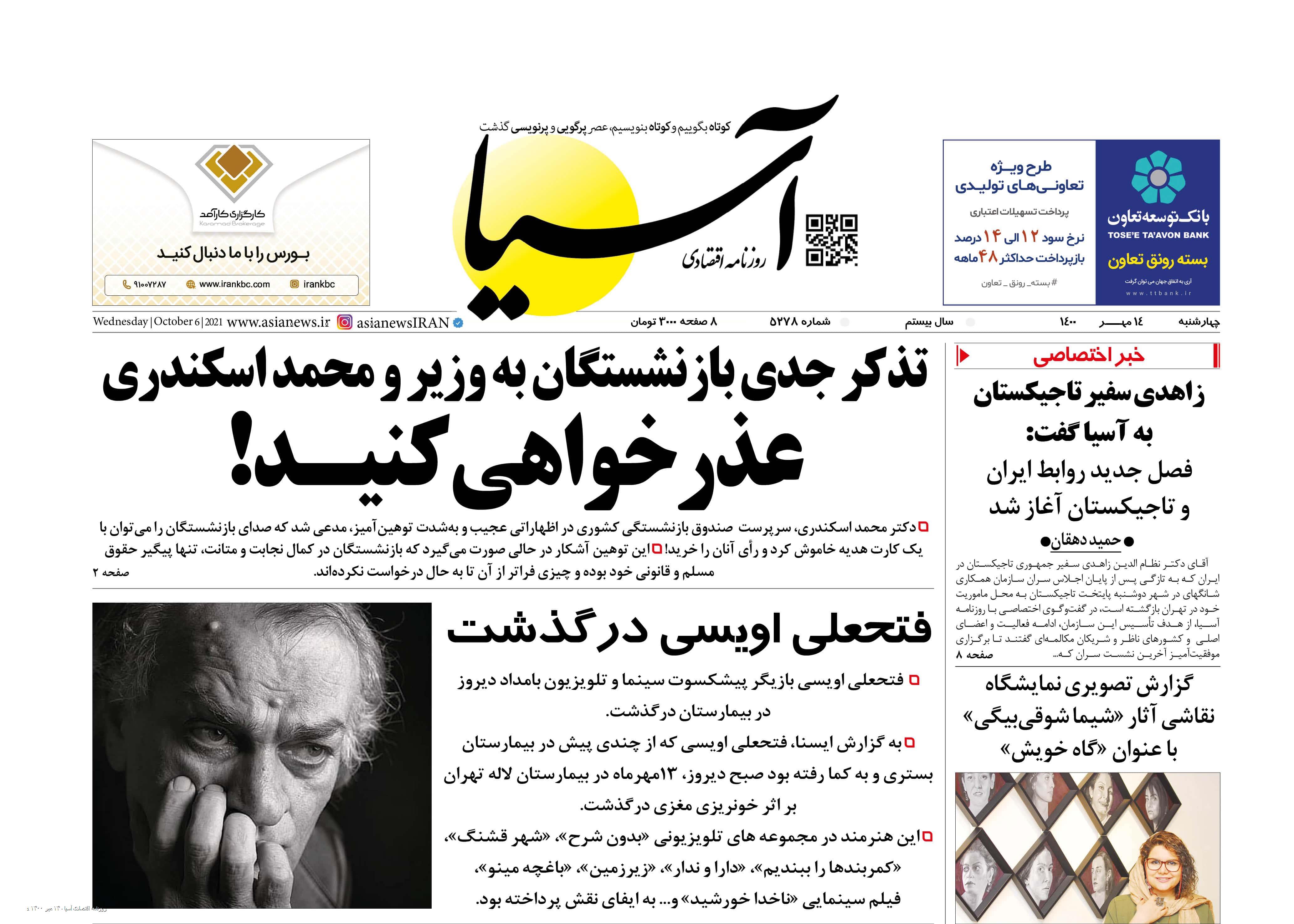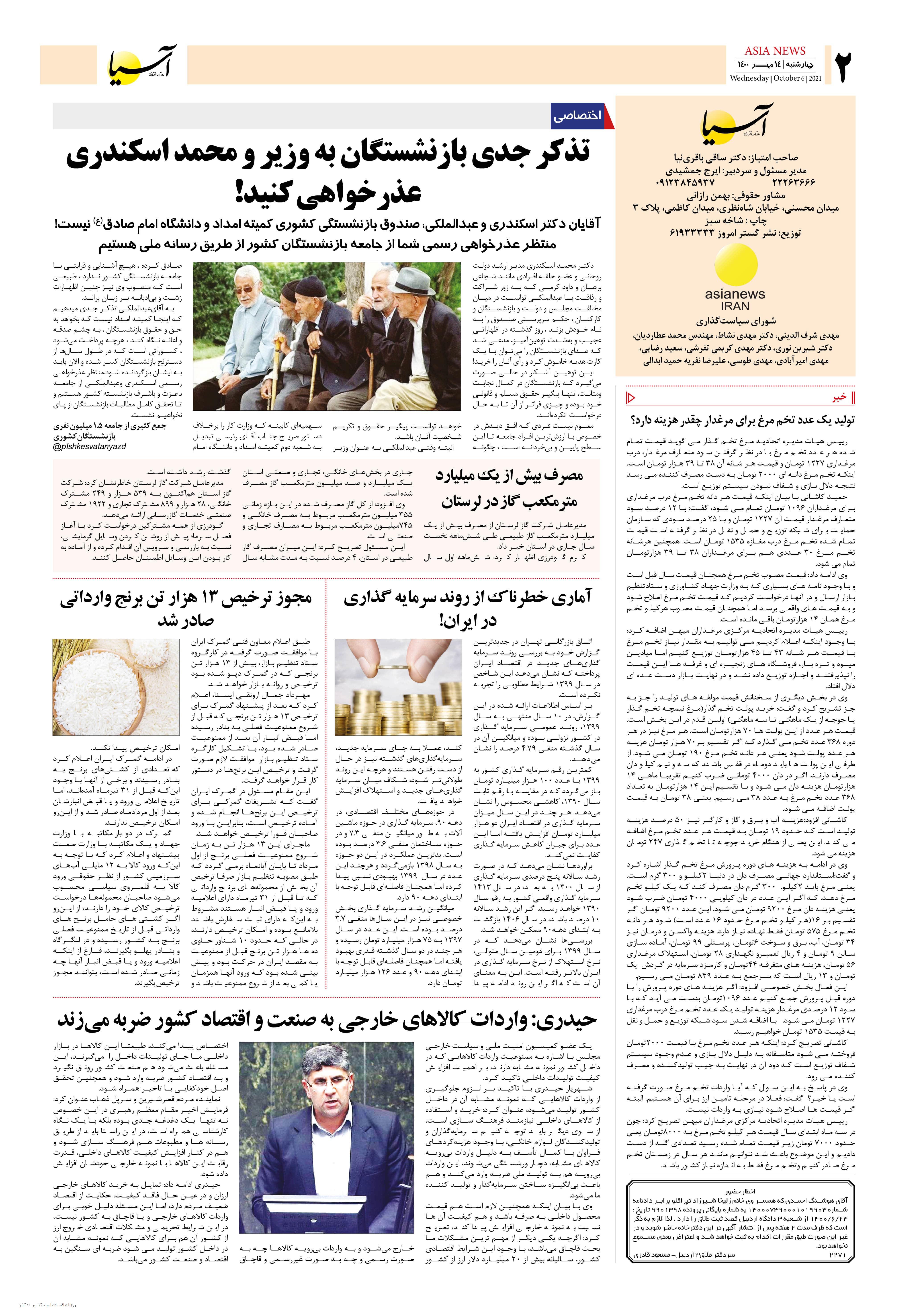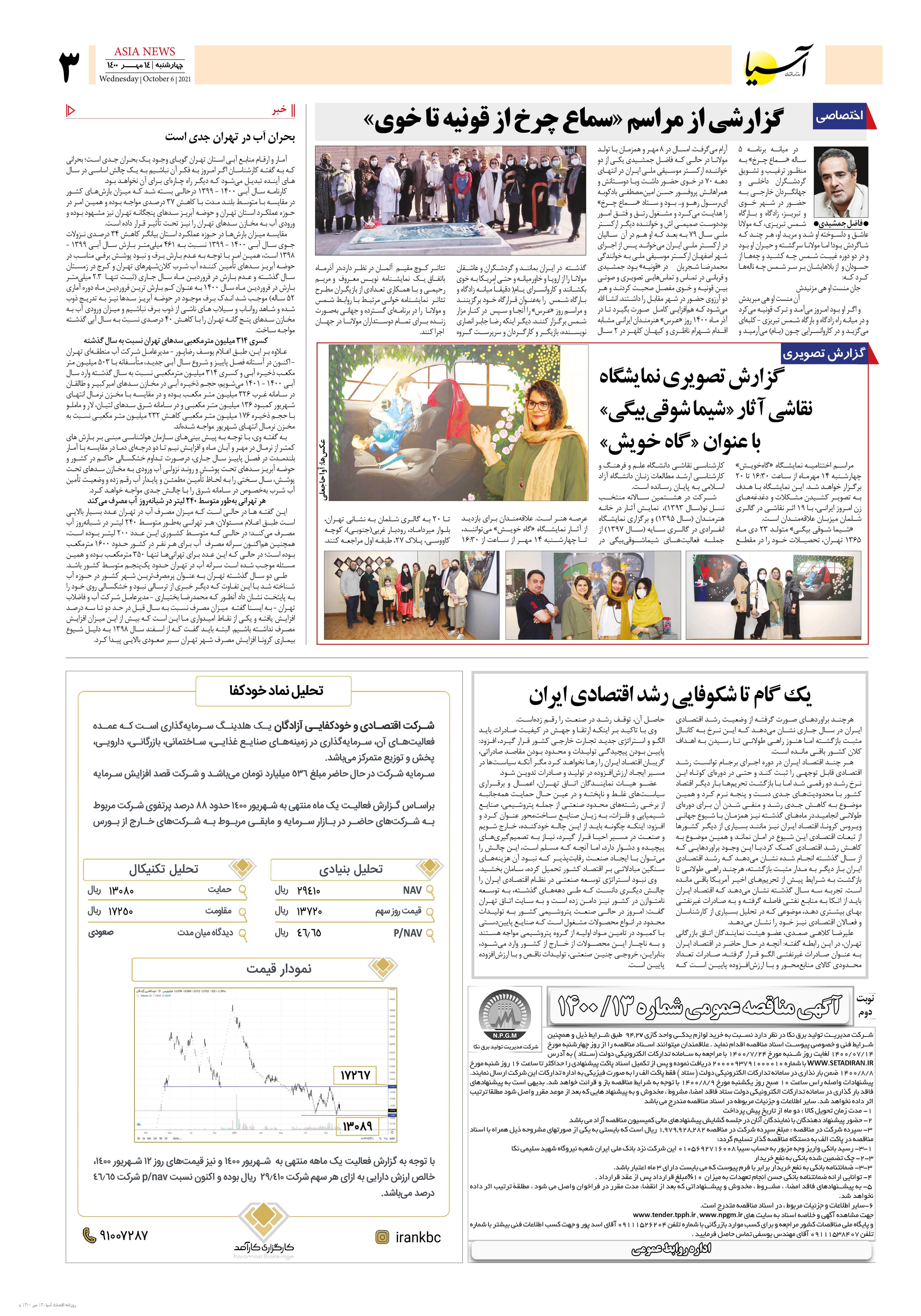 روزنامه اقتصادی آسیا - ۱۴ مهر ۱۴۰۰ ۱۳ مهر ۱۴۰۰ https://www.asianewsiran.com/u/cf2 آسیانیوز ایران هیچگونه مسولیتی در قبال نظرات کاربران ندارد. میانگین امتیاز کاربران: 0.0 (0 رای) 12345 امتیاز 12345 برای امتیاز باید عدد وارد کنید ایمیل را وارد کنید ایمیل صحیح نیست ایمیل نمایش داده شود. تعداد کاراکتر باقیمانده: 1000 نظر خود را وارد کنید بازخوانی بازخوانی پس از انتشار این نظر، به من اطلاع داده شود. ارسال توجه : نظرات بیان شده در یادداشتهایی که منتشر میکنیم، بیانگر عقیده نگارنده آن است و لزوماً دیدگاه مدیران وبسایت آسیانیوز و آسیانیوز ایران نمیباشد. سردبیر