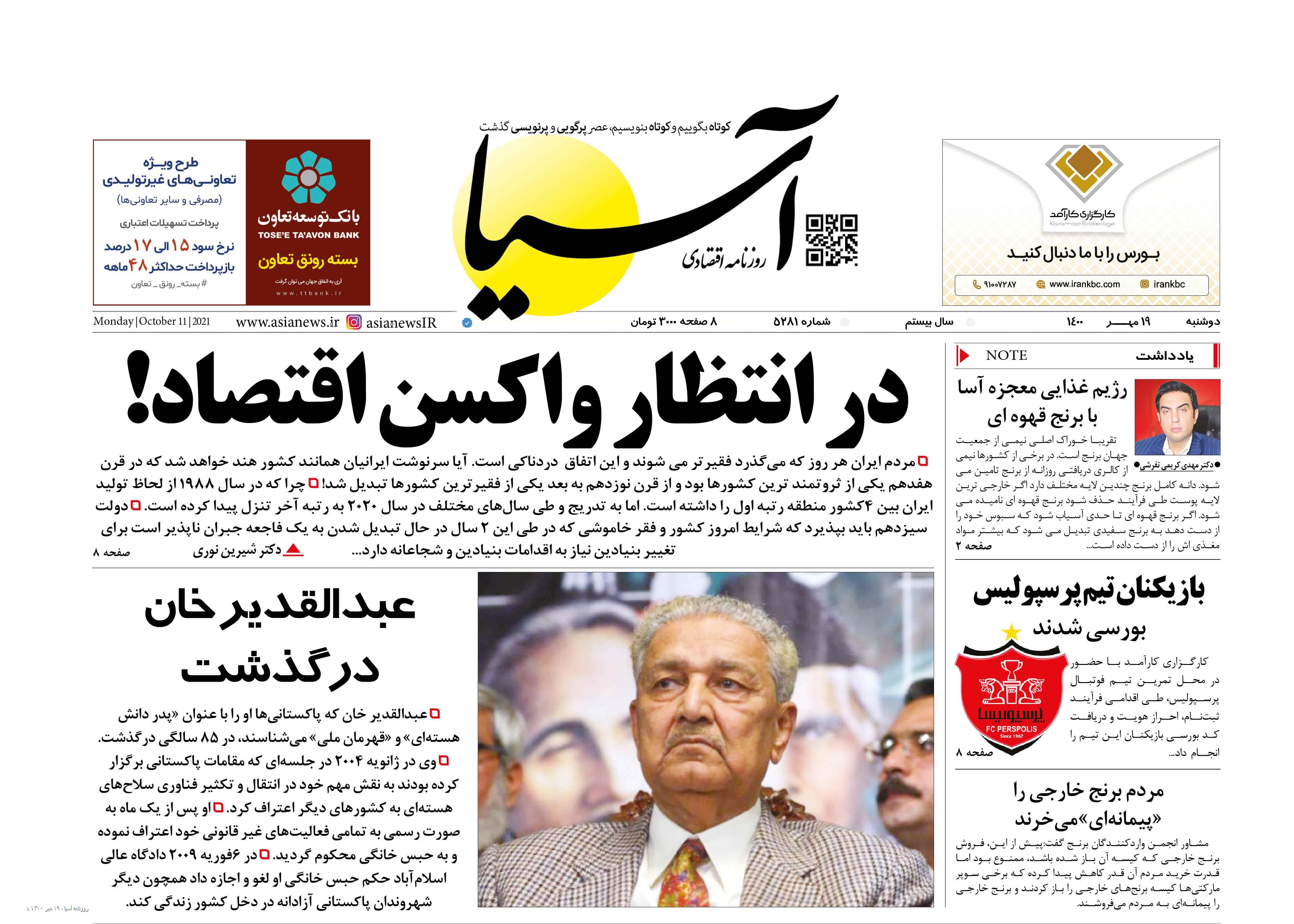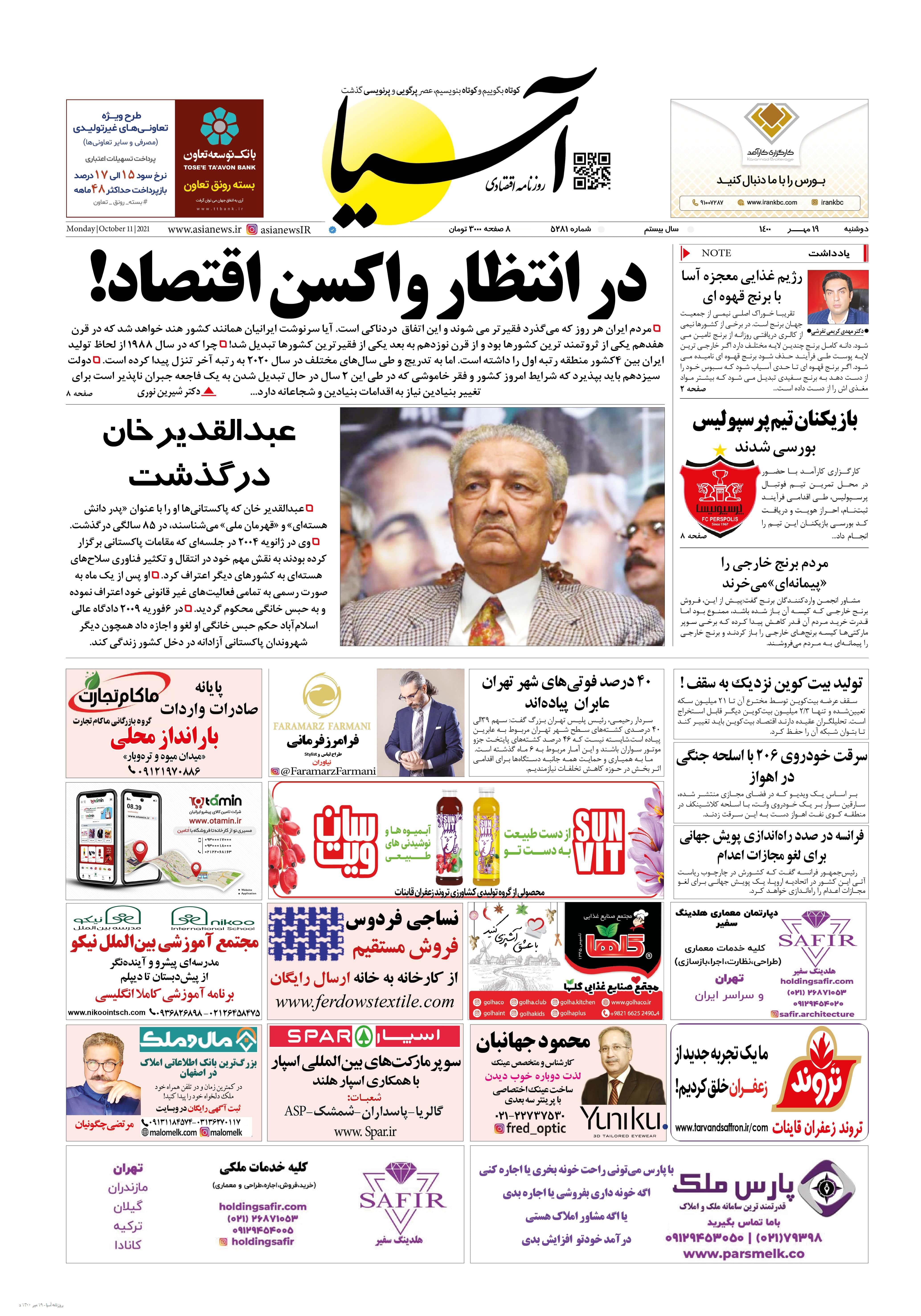 روزنامه اقتصادی آسیا - ۱۹ مهر ۱۴۰۰ ۱۸ مهر ۱۴۰۰ https://www.asianewsiran.com/u/cmy آسیانیوز ایران هیچگونه مسولیتی در قبال نظرات کاربران ندارد. میانگین امتیاز کاربران: 0.0 (0 رای) 12345 امتیاز 12345 برای امتیاز باید عدد وارد کنید ایمیل را وارد کنید ایمیل صحیح نیست ایمیل نمایش داده شود. تعداد کاراکتر باقیمانده: 1000 نظر خود را وارد کنید بازخوانی بازخوانی پس از انتشار این نظر، به من اطلاع داده شود. ارسال توجه : نظرات بیان شده در یادداشتهایی که منتشر میکنیم، بیانگر عقیده نگارنده آن است و لزوماً دیدگاه مدیران وبسایت آسیانیوز و آسیانیوز ایران نمیباشد. سردبیر