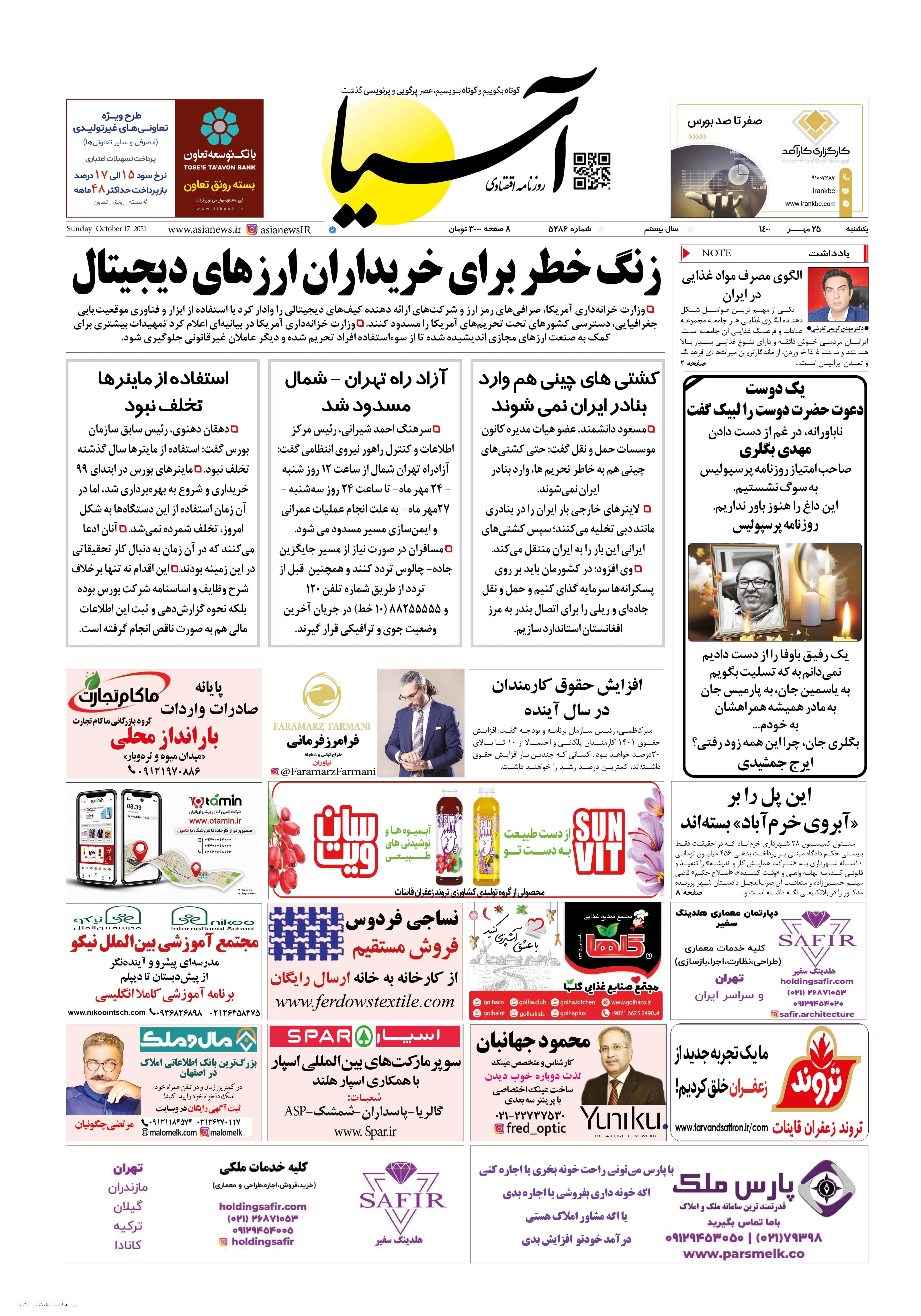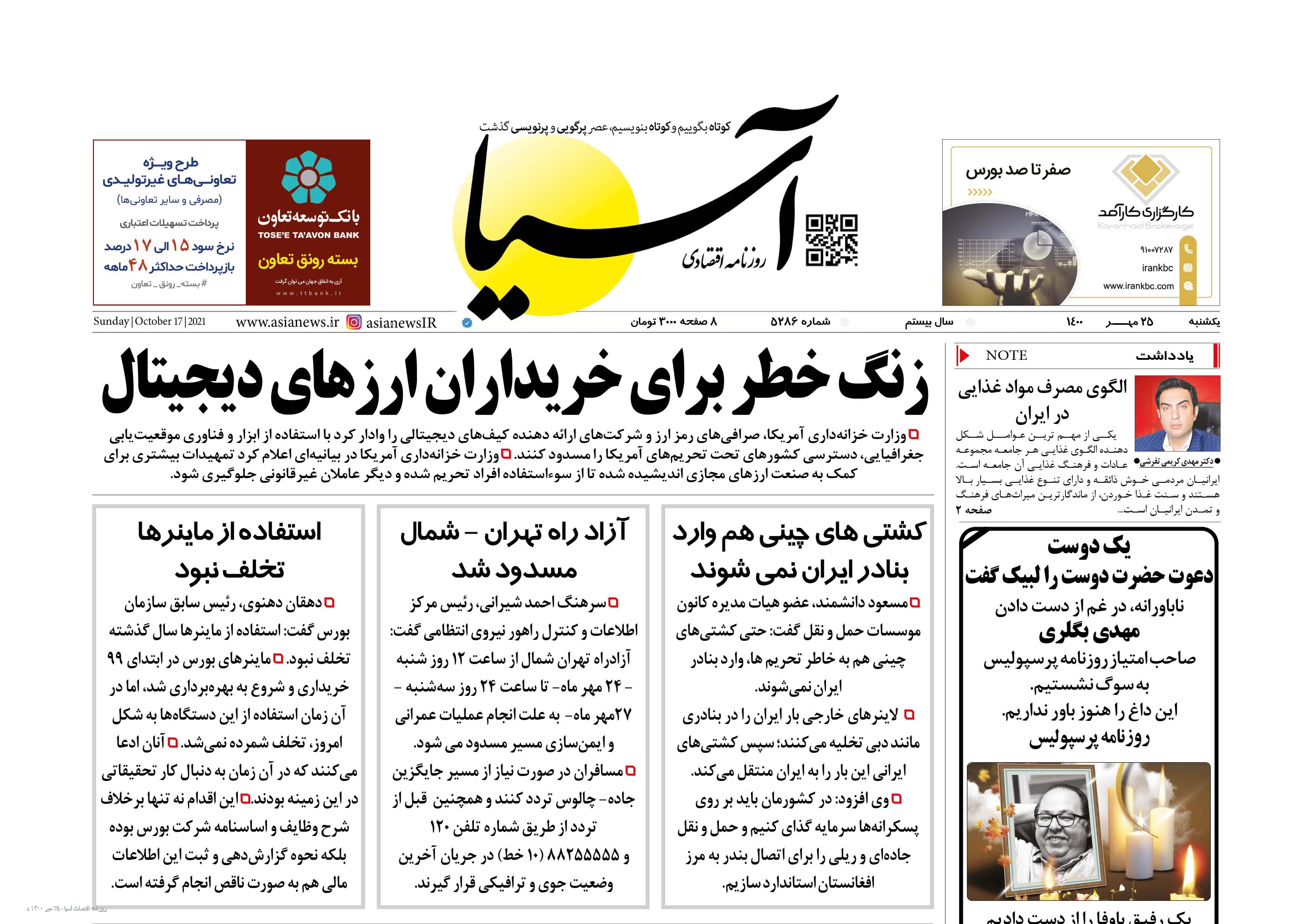 روزنامه اقتصادی آسیا - ۲۵ مهر ۱۴۰۰ ۲۶ مهر ۱۴۰۰ https://www.asianewsiran.com/u/brf آسیانیوز ایران هیچگونه مسولیتی در قبال نظرات کاربران ندارد. میانگین امتیاز کاربران: 0.0 (0 رای) 12345 امتیاز 12345 برای امتیاز باید عدد وارد کنید ایمیل را وارد کنید ایمیل صحیح نیست ایمیل نمایش داده شود. تعداد کاراکتر باقیمانده: 1000 نظر خود را وارد کنید بازخوانی بازخوانی پس از انتشار این نظر، به من اطلاع داده شود. ارسال توجه : نظرات بیان شده در یادداشتهایی که منتشر میکنیم، بیانگر عقیده نگارنده آن است و لزوماً دیدگاه مدیران وبسایت آسیانیوز و آسیانیوز ایران نمیباشد. سردبیر