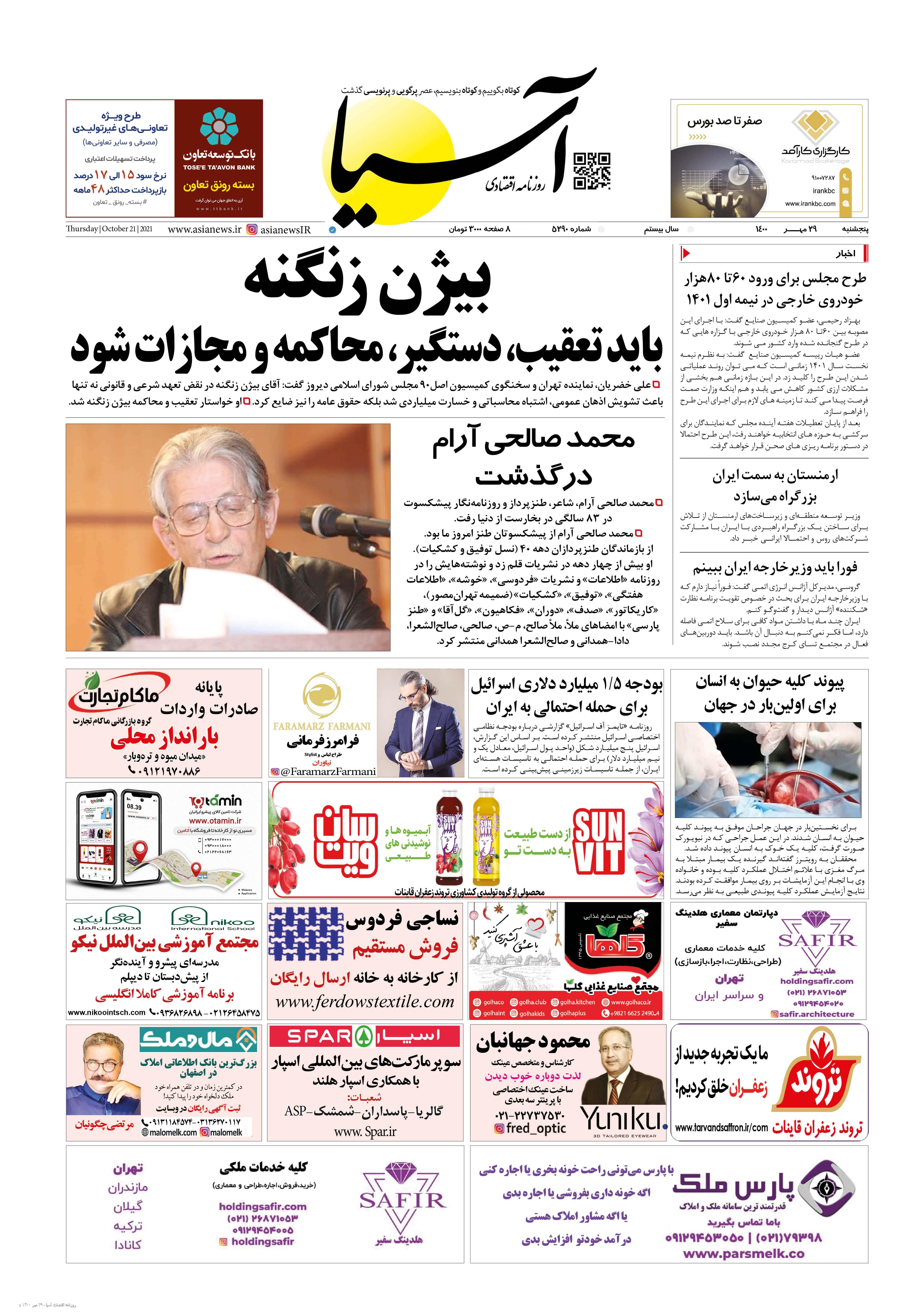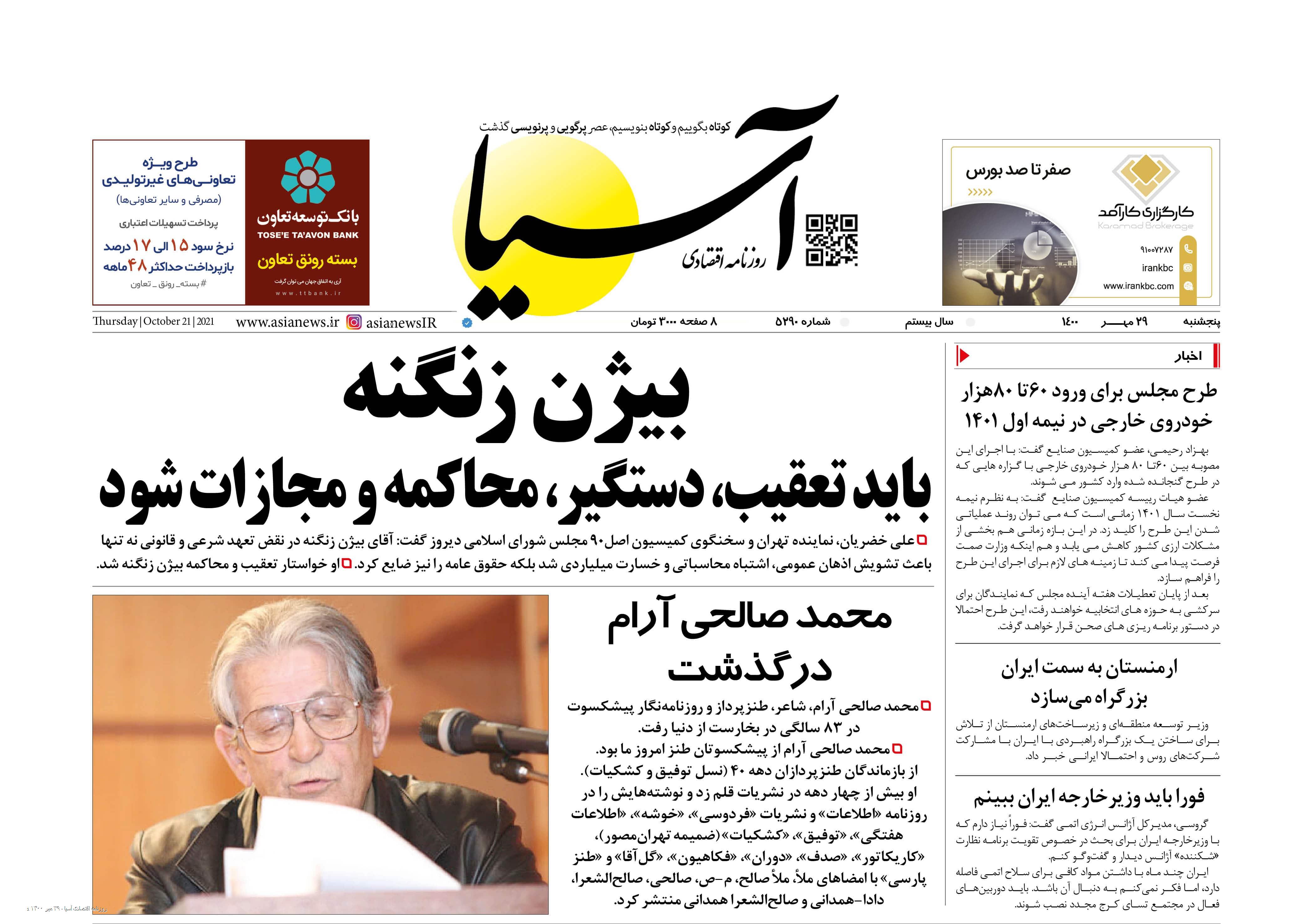 روزنامه اقتصادی آسیا - ۲۹ مهر ۱۴۰۰ ۲۸ مهر ۱۴۰۰ https://www.asianewsiran.com/u/cpu آسیانیوز ایران هیچگونه مسولیتی در قبال نظرات کاربران ندارد. میانگین امتیاز کاربران: 0.0 (0 رای) 12345 امتیاز 12345 برای امتیاز باید عدد وارد کنید ایمیل را وارد کنید ایمیل صحیح نیست ایمیل نمایش داده شود. تعداد کاراکتر باقیمانده: 1000 نظر خود را وارد کنید بازخوانی بازخوانی پس از انتشار این نظر، به من اطلاع داده شود. ارسال توجه : نظرات بیان شده در یادداشتهایی که منتشر میکنیم، بیانگر عقیده نگارنده آن است و لزوماً دیدگاه مدیران وبسایت آسیانیوز و آسیانیوز ایران نمیباشد. سردبیر