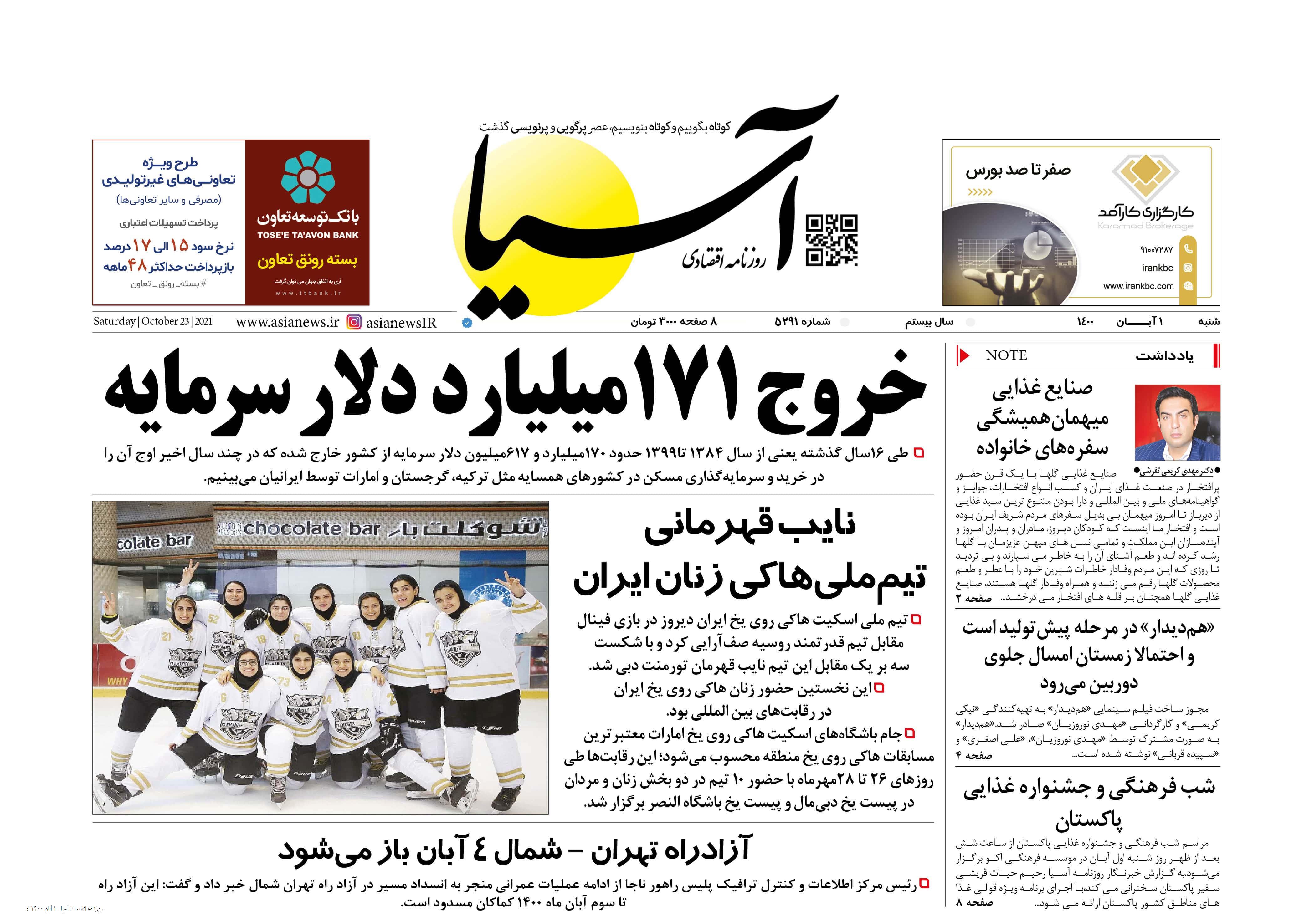 روزنامه اقتصادی آسیا - ۱ آبان ۱۴۰۰ ۳۰ مهر ۱۴۰۰ https://www.asianewsiran.com/u/bwq آسیانیوز ایران هیچگونه مسولیتی در قبال نظرات کاربران ندارد. میانگین امتیاز کاربران: 0.0 (0 رای) 12345 امتیاز 12345 برای امتیاز باید عدد وارد کنید ایمیل را وارد کنید ایمیل صحیح نیست ایمیل نمایش داده شود. تعداد کاراکتر باقیمانده: 1000 نظر خود را وارد کنید بازخوانی بازخوانی پس از انتشار این نظر، به من اطلاع داده شود. ارسال توجه : نظرات بیان شده در یادداشتهایی که منتشر میکنیم، بیانگر عقیده نگارنده آن است و لزوماً دیدگاه مدیران وبسایت آسیانیوز و آسیانیوز ایران نمیباشد. سردبیر