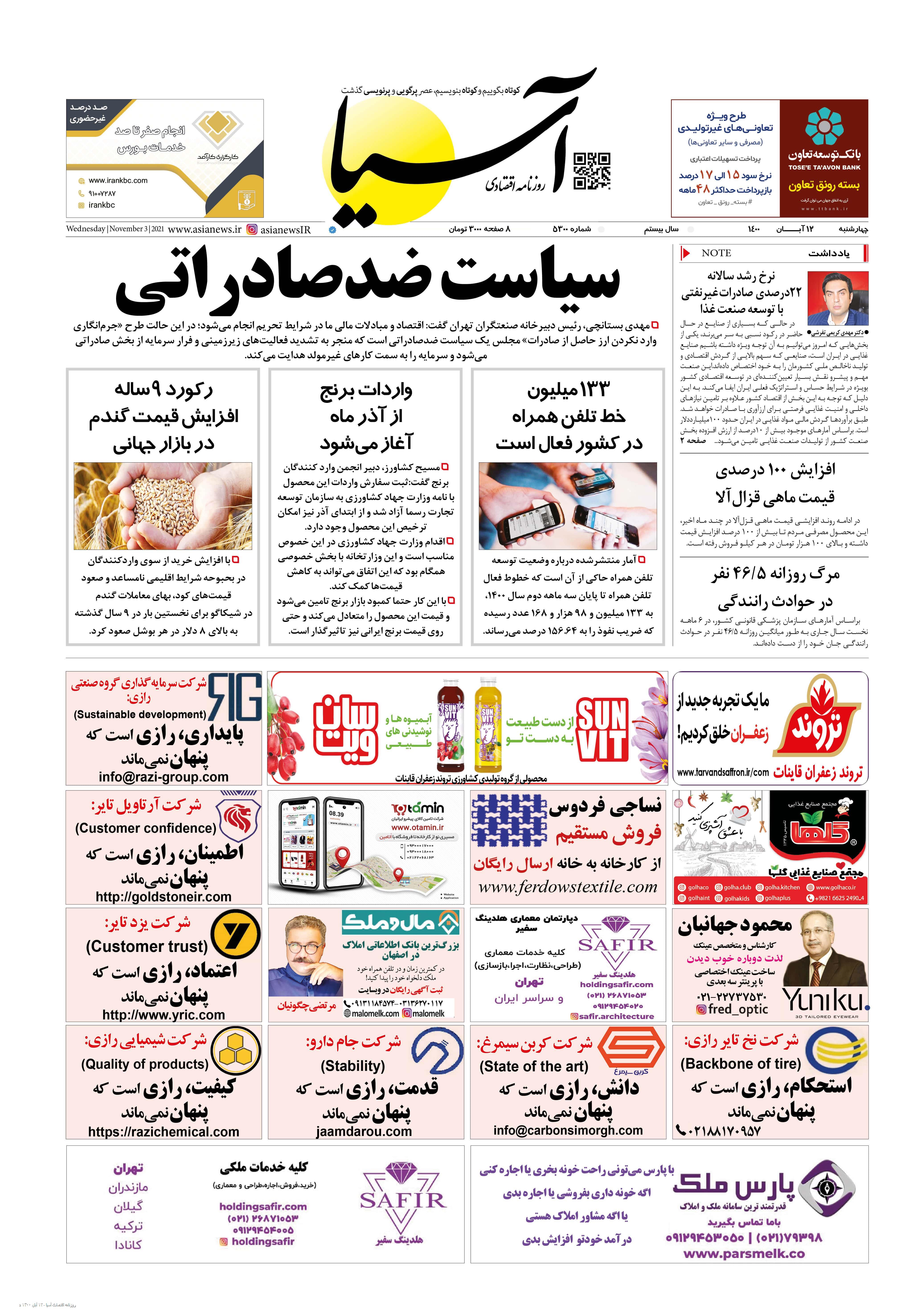 روزنامه اقتصادی آسیا - ۱۲ آبان ۱۴۰۰ ۱۱ آبان ۱۴۰۰ https://www.asianewsiran.com/u/caf آسیانیوز ایران هیچگونه مسولیتی در قبال نظرات کاربران ندارد. میانگین امتیاز کاربران: 0.0 (0 رای) 12345 امتیاز 12345 برای امتیاز باید عدد وارد کنید ایمیل را وارد کنید ایمیل صحیح نیست ایمیل نمایش داده شود. تعداد کاراکتر باقیمانده: 1000 نظر خود را وارد کنید بازخوانی بازخوانی پس از انتشار این نظر، به من اطلاع داده شود. ارسال توجه : نظرات بیان شده در یادداشتهایی که منتشر میکنیم، بیانگر عقیده نگارنده آن است و لزوماً دیدگاه مدیران وبسایت آسیانیوز و آسیانیوز ایران نمیباشد. سردبیر